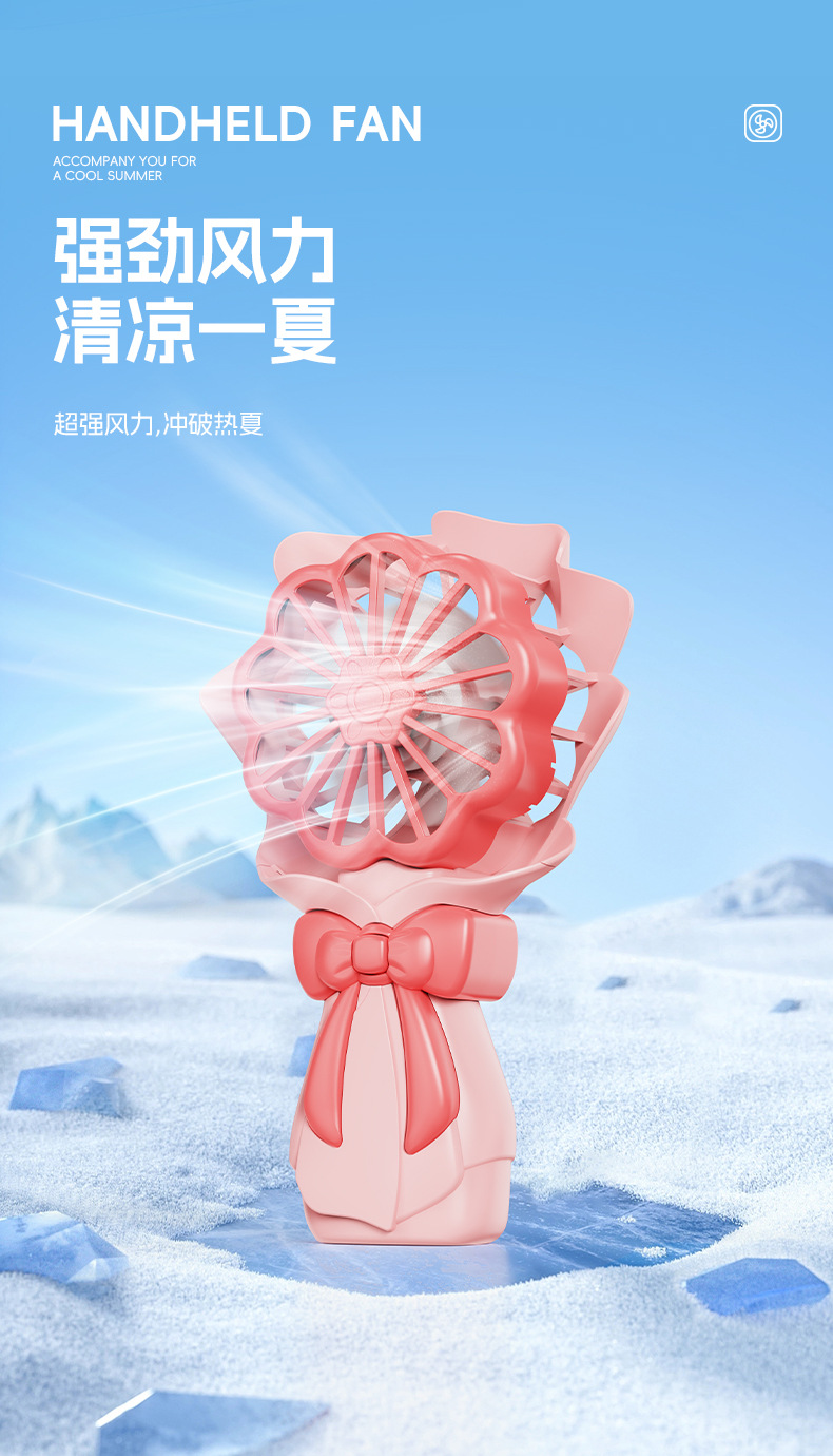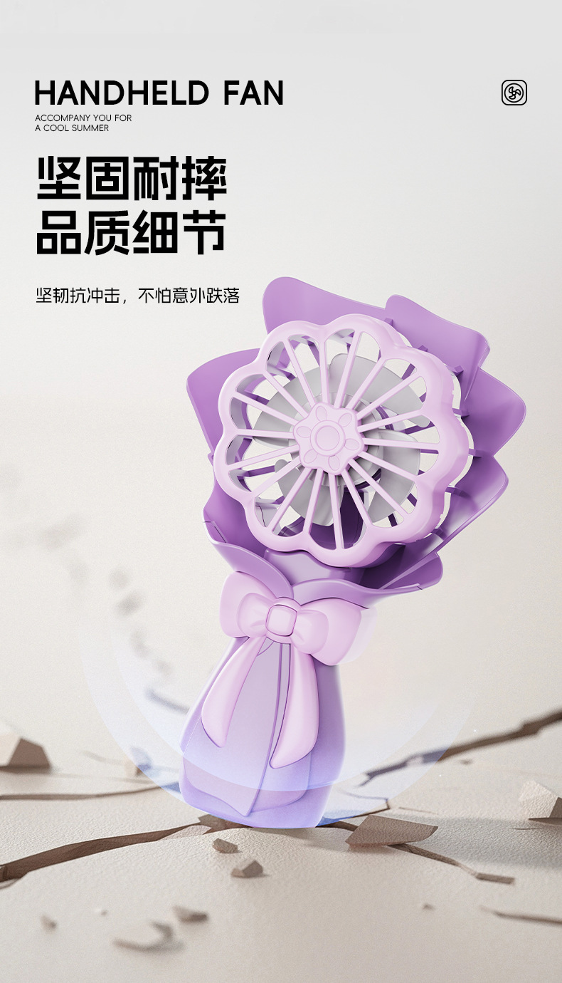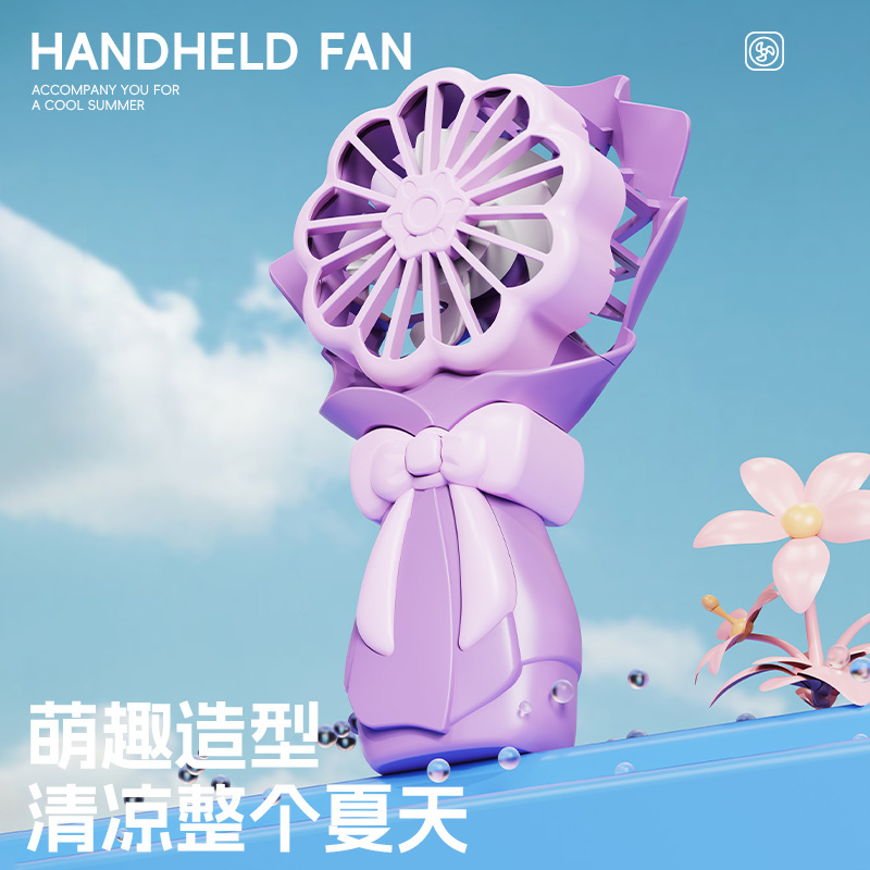 跨境夏季桌面创意花束小风扇礼品usb充电户外便携式迷你手持风扇