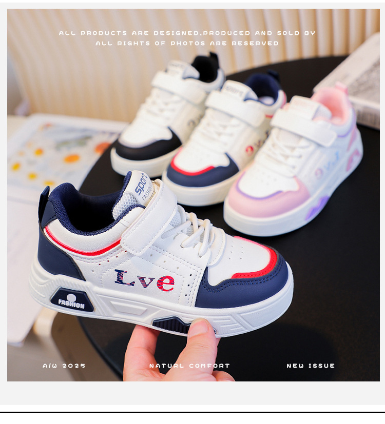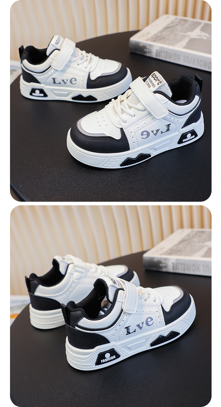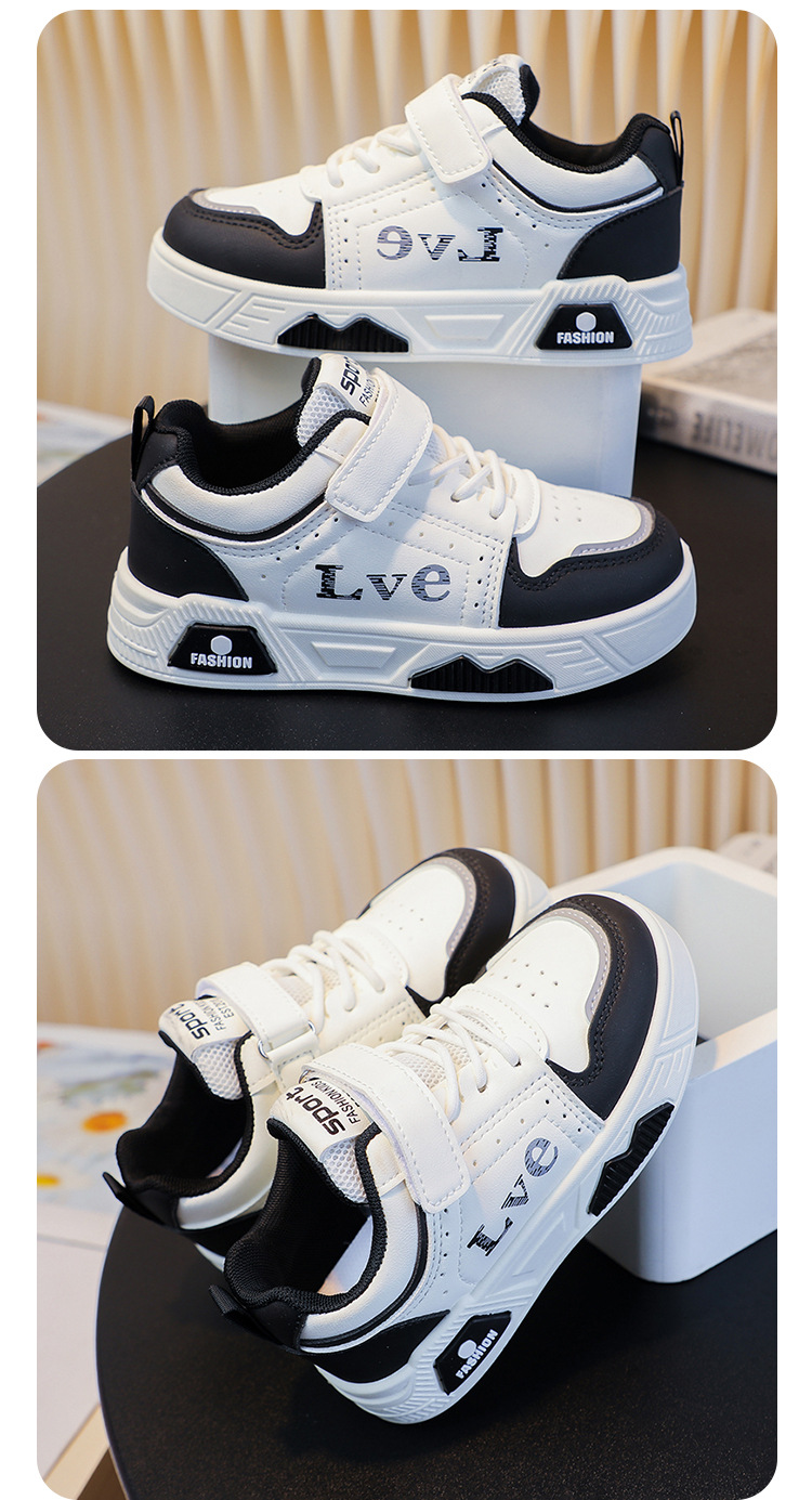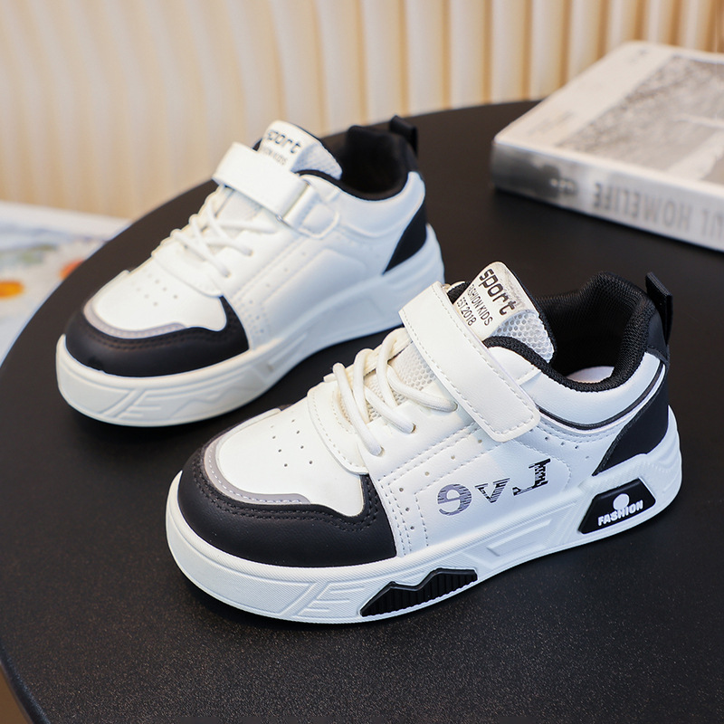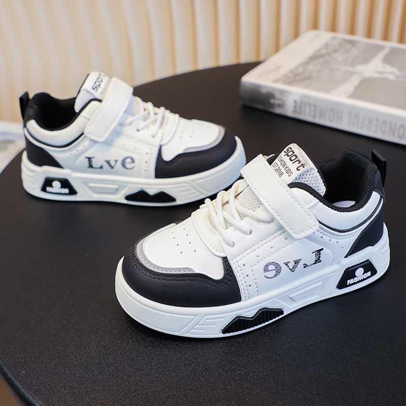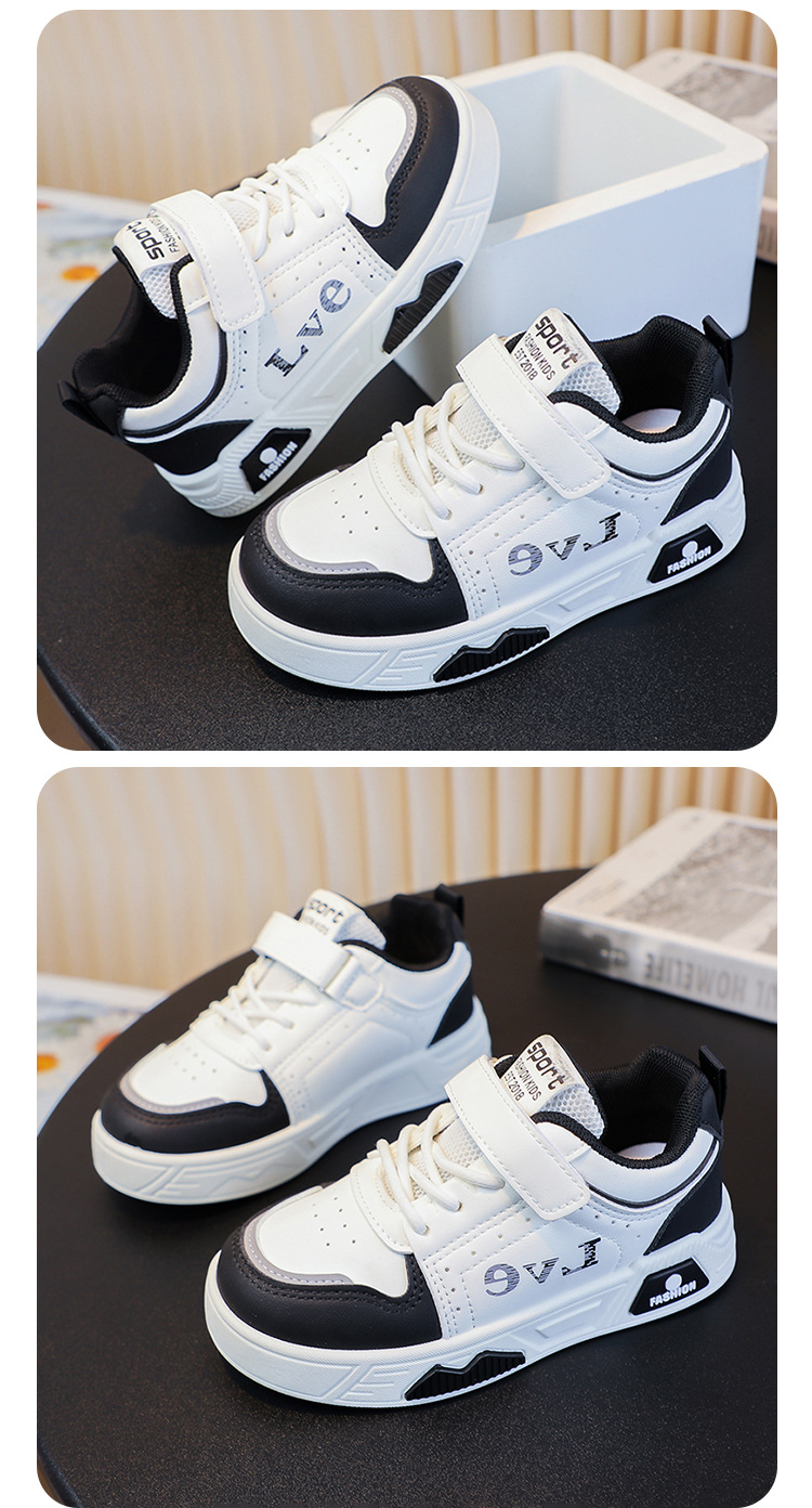 儿童板鞋2025春秋新款青少年厚底潮流个性皮面拼色学生运动鞋