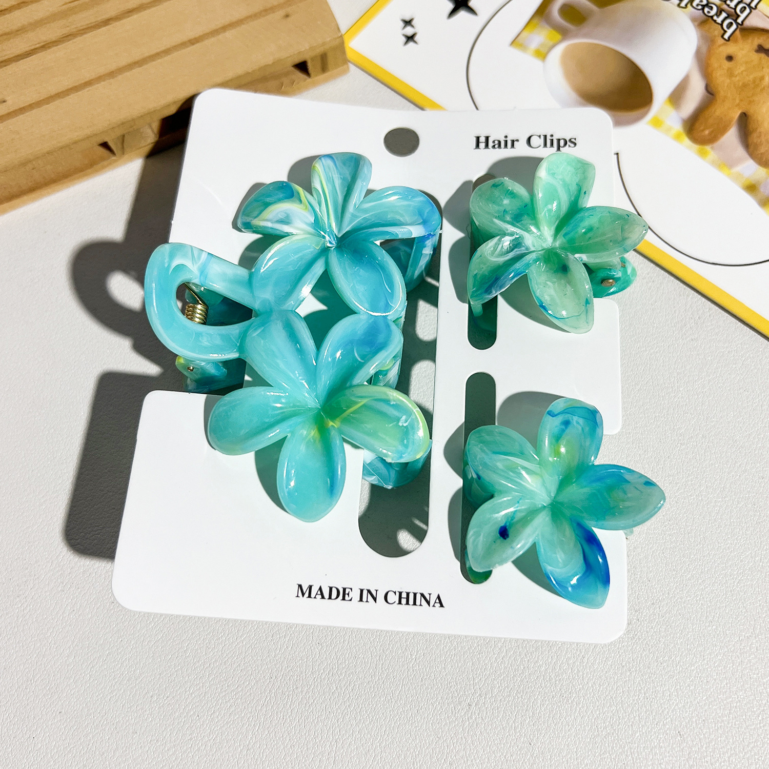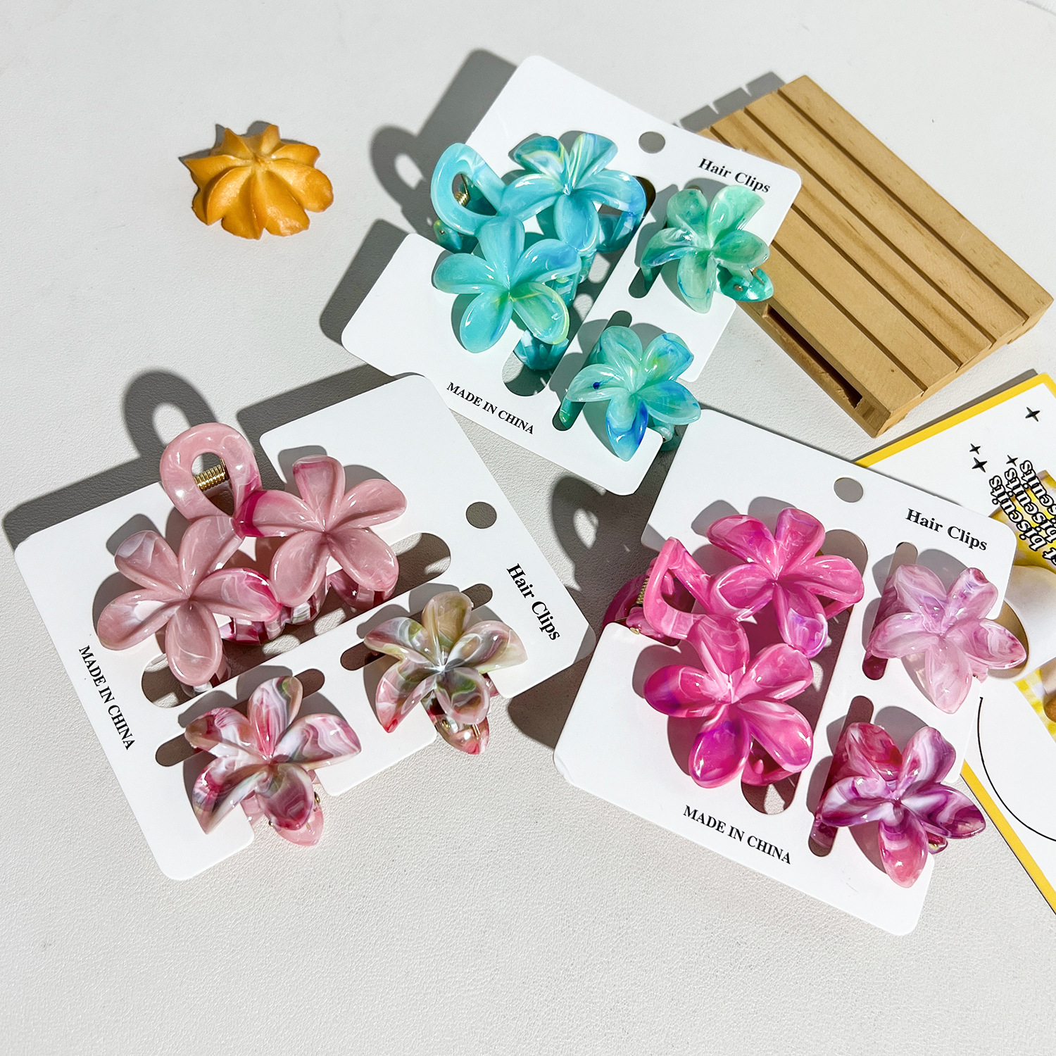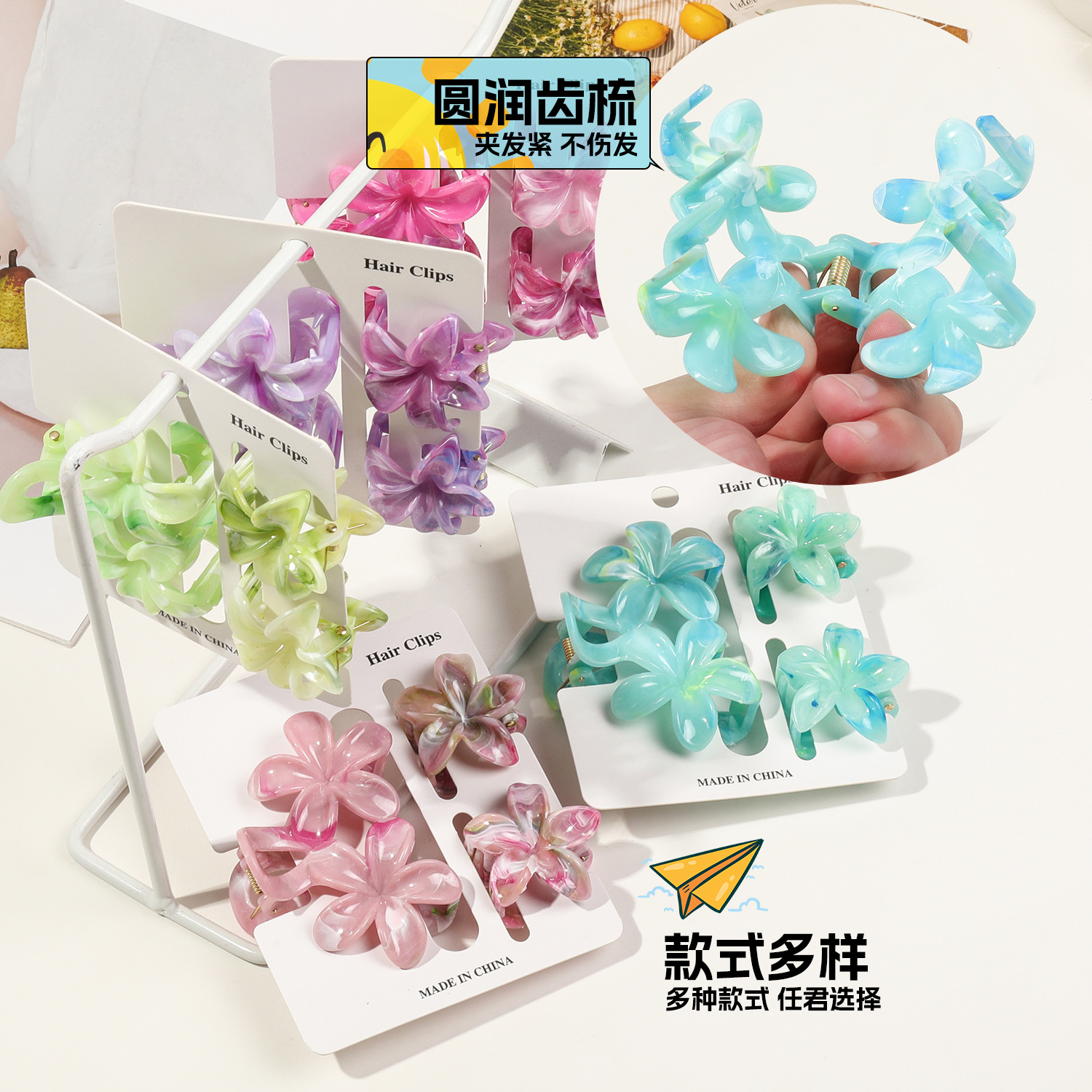 跨境亚马逊热销花朵发夹女时尚气质双花朵组合抓夹盘发鲨鱼夹发饰