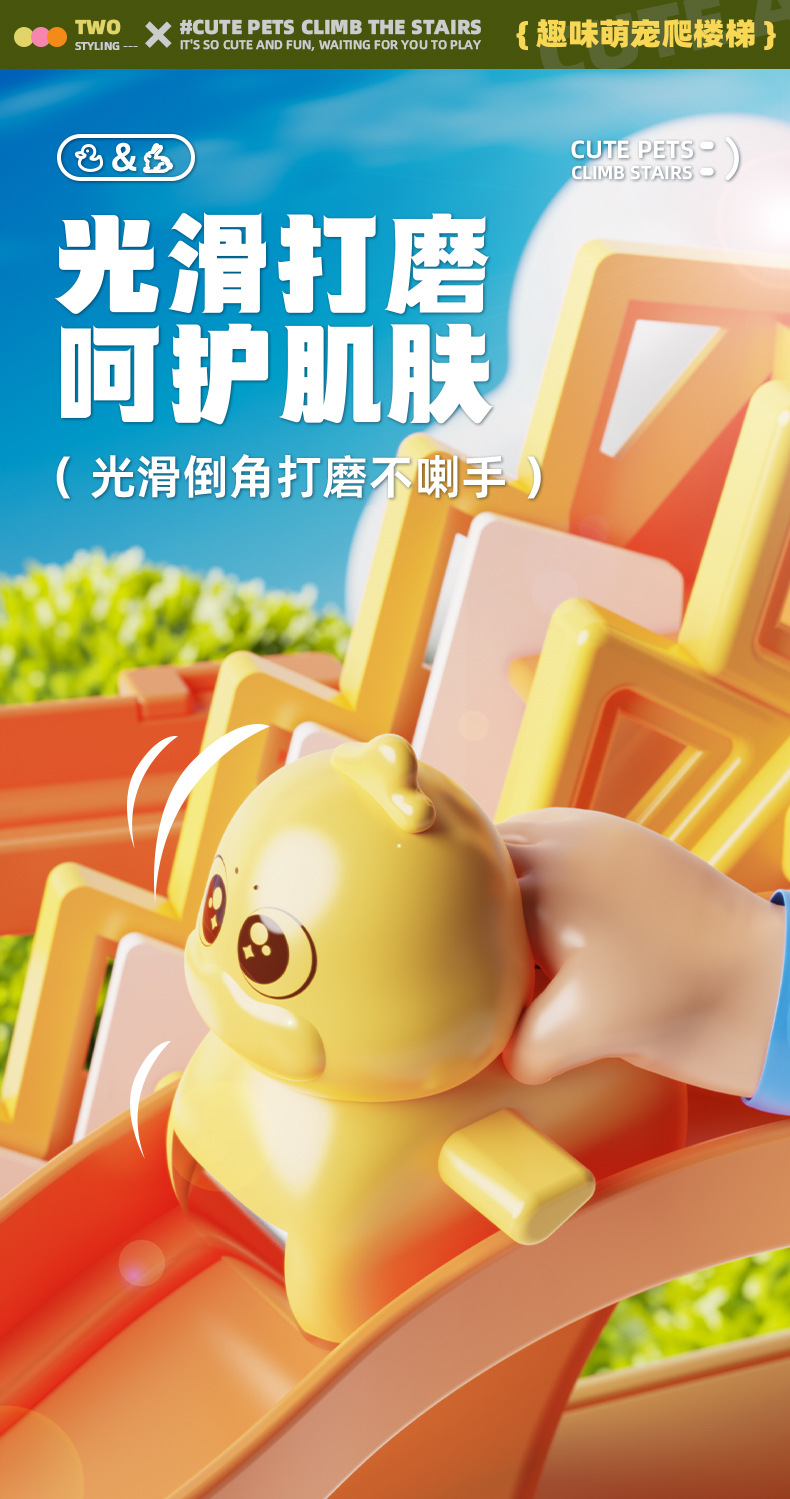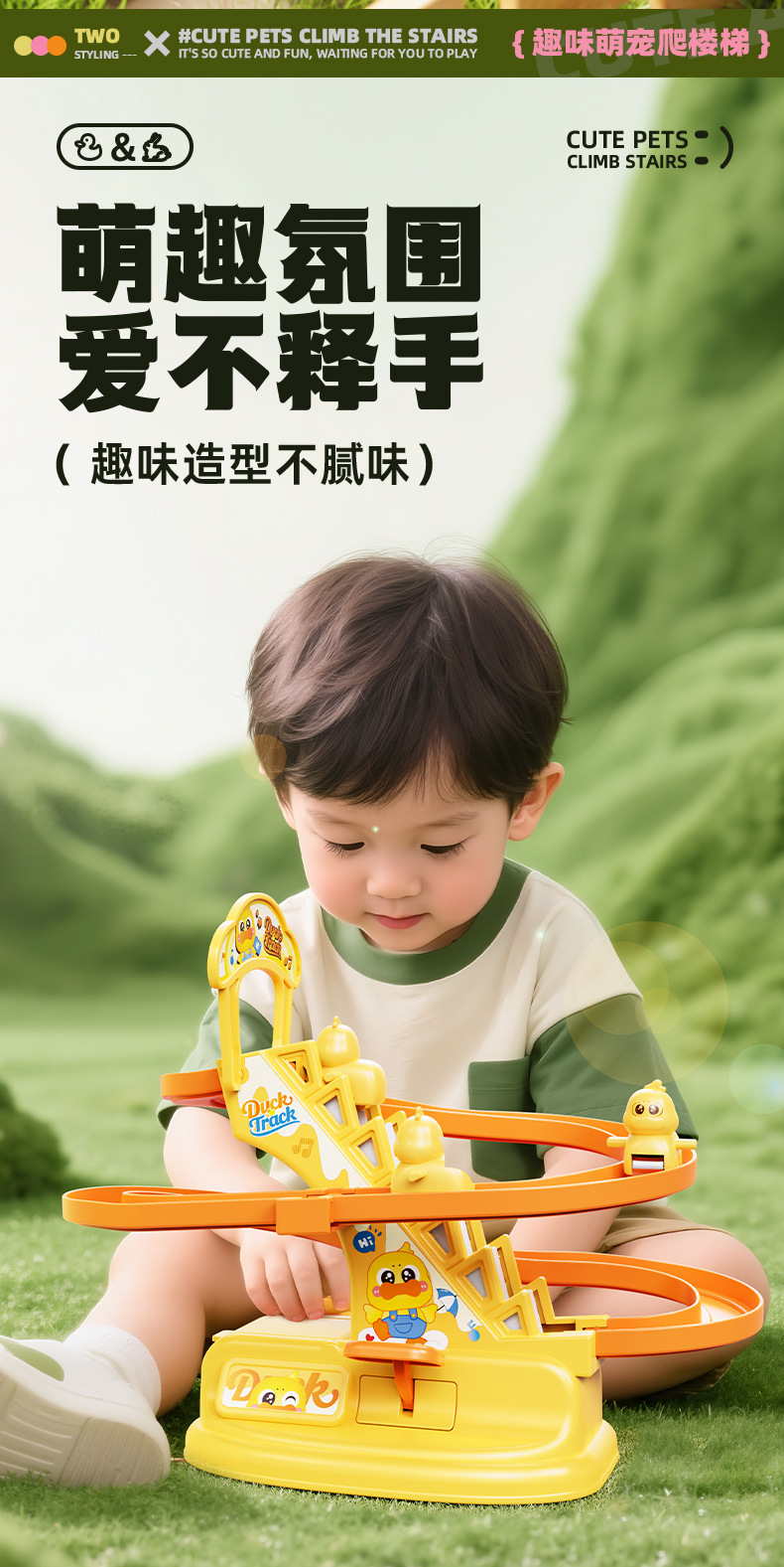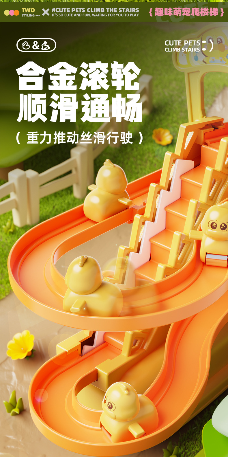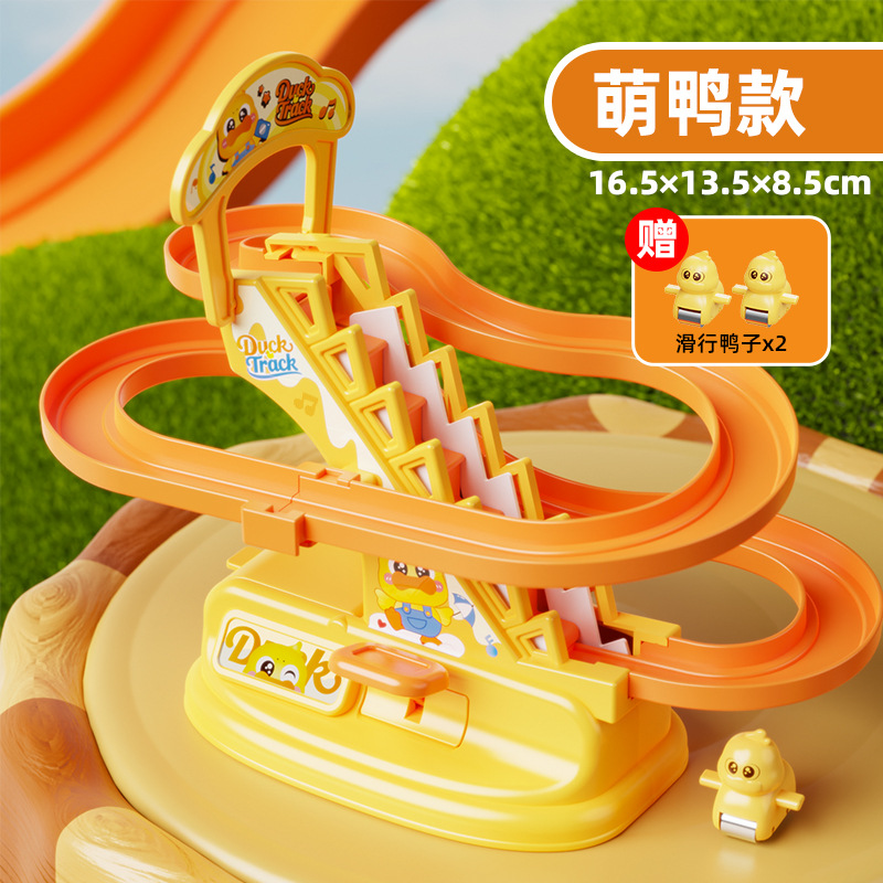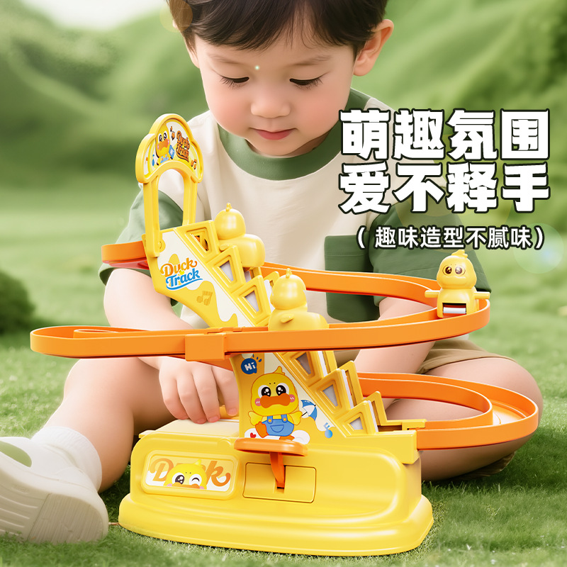 小黄鸭子爬楼梯滑行轨道玩具上滑梯抬头训练儿童玩具男女孩跨境