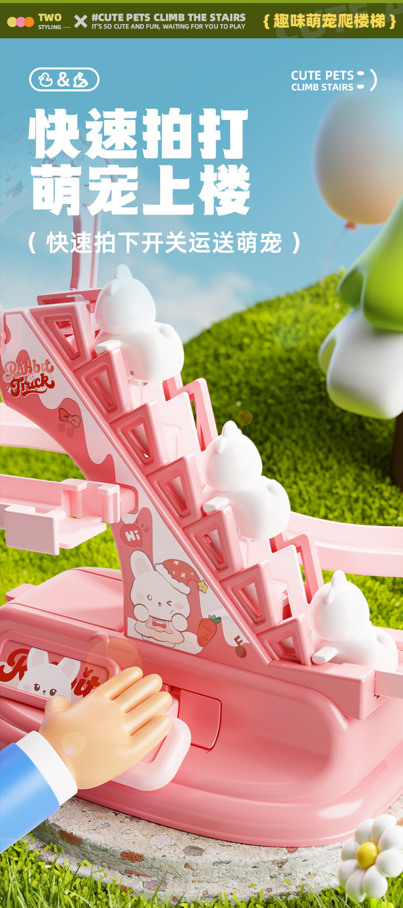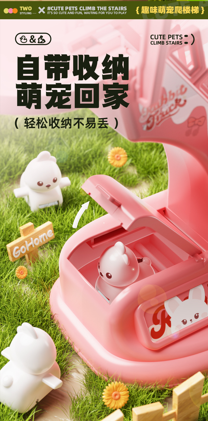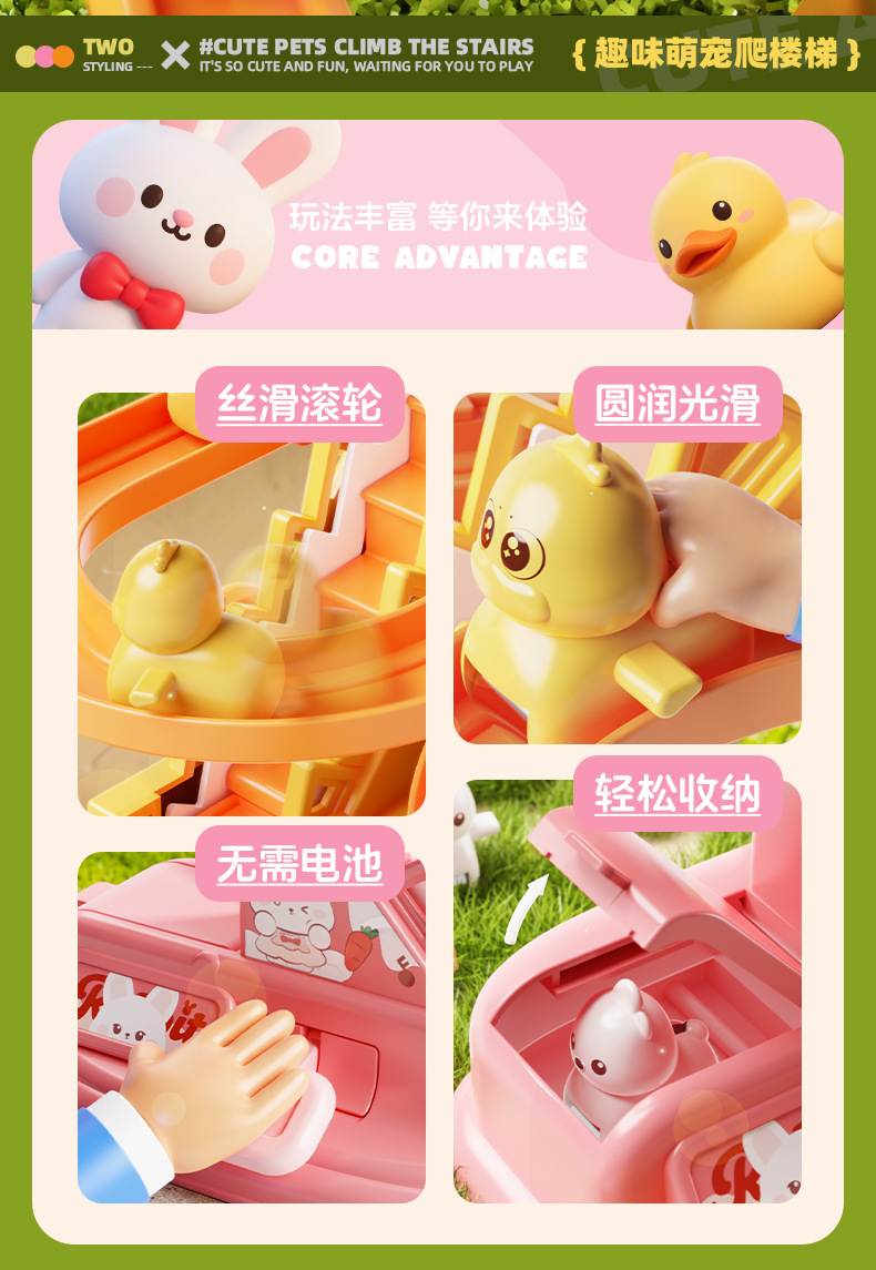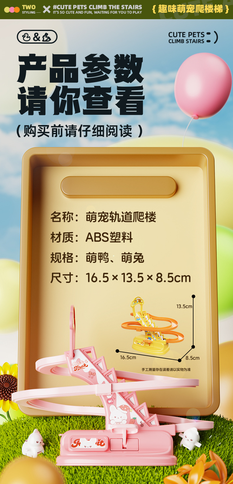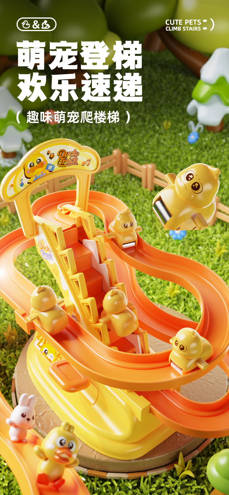 小黄鸭子爬楼梯滑行轨道玩具上滑梯抬头训练儿童玩具男女孩跨境
