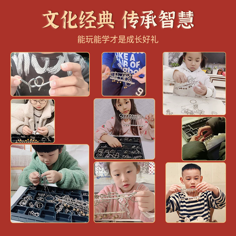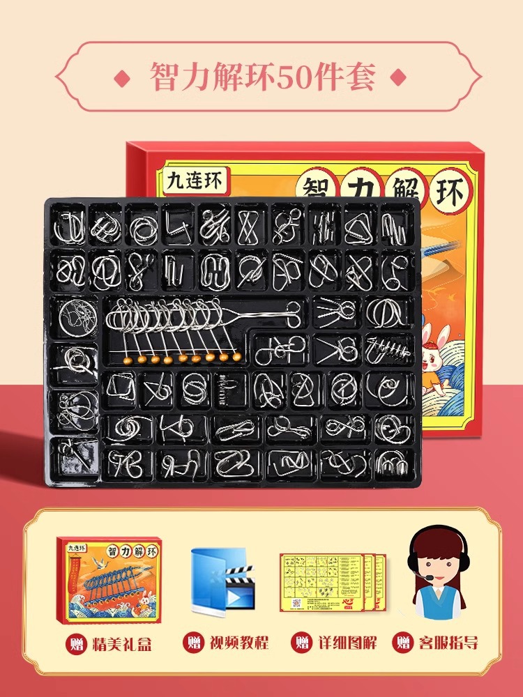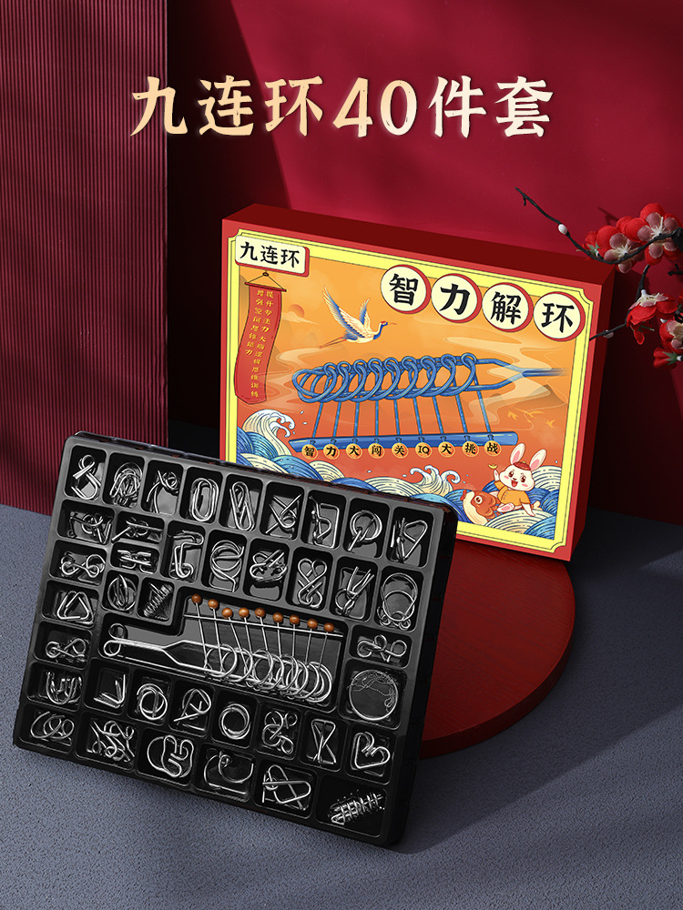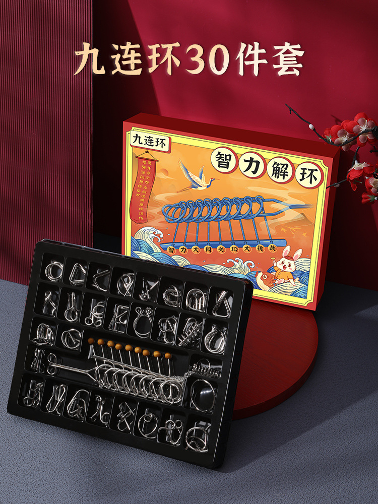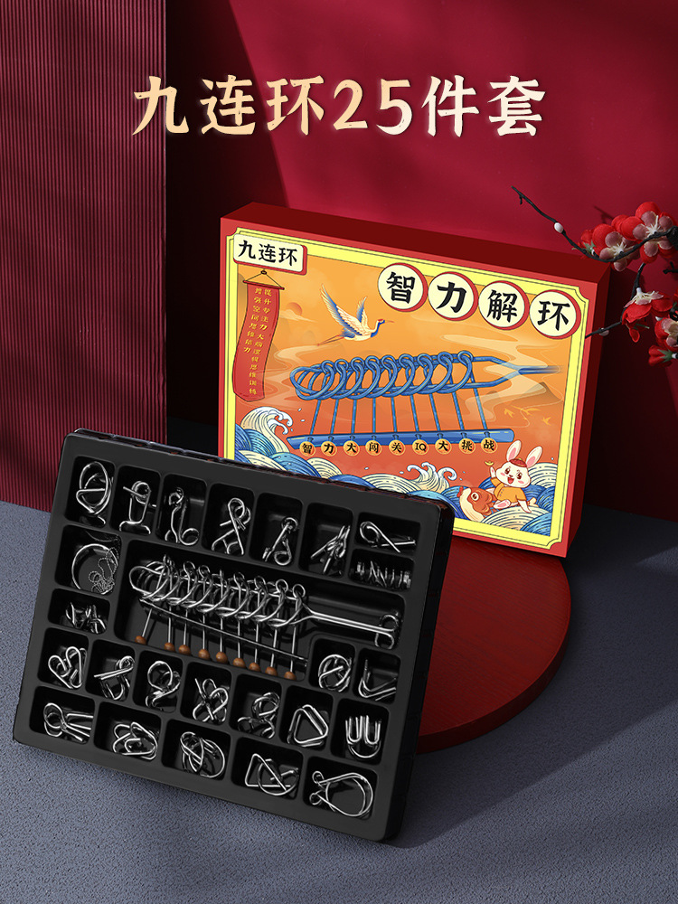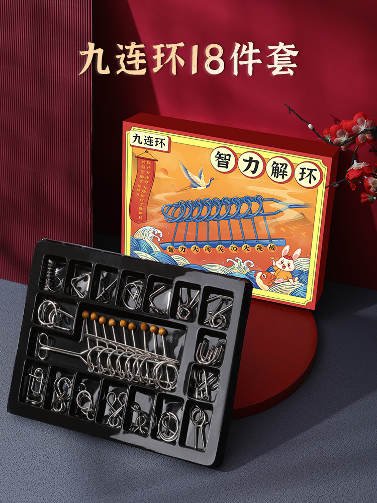九连环智力解锁环解扣益智玩具鲁班锁孔明锁套装儿童小学生24件套
