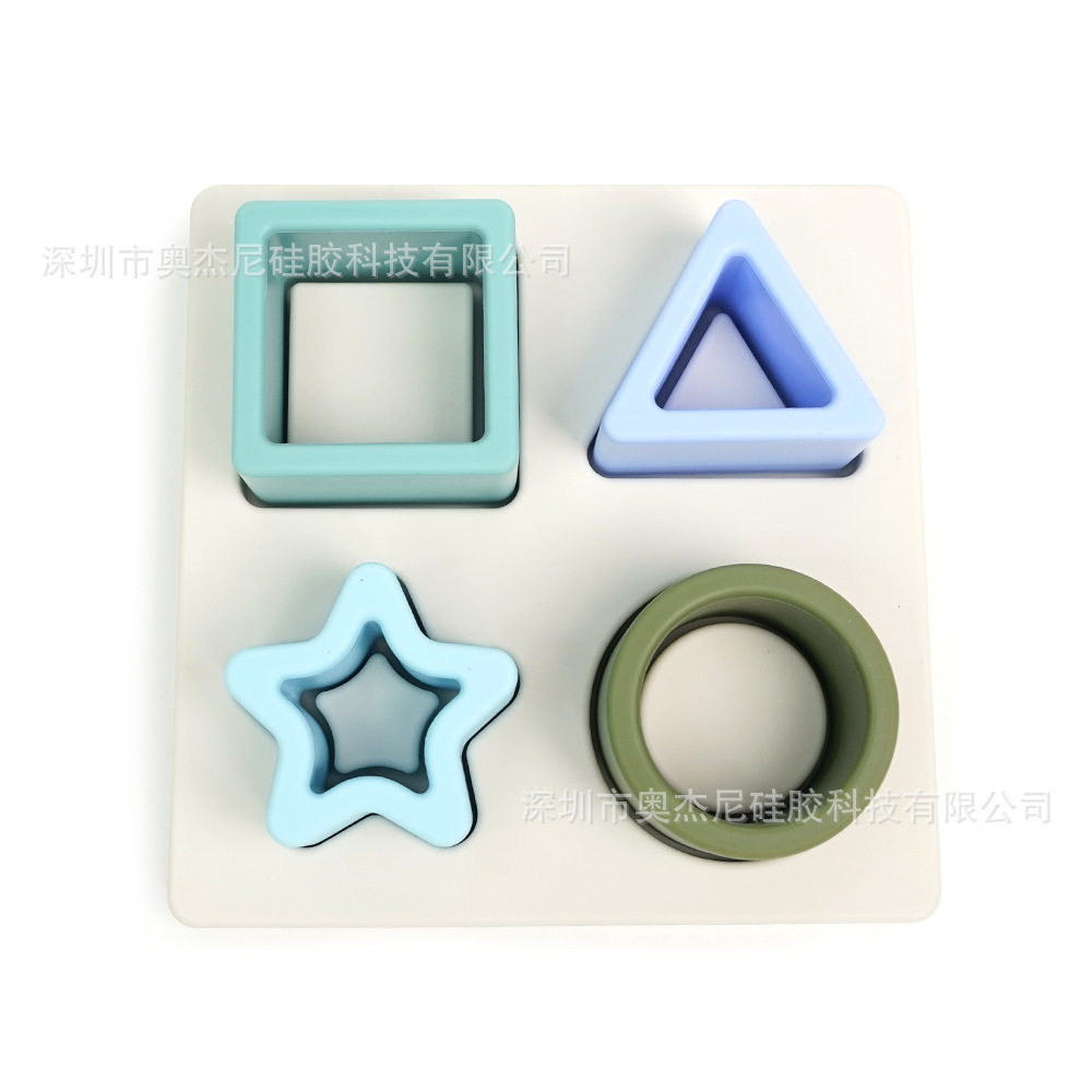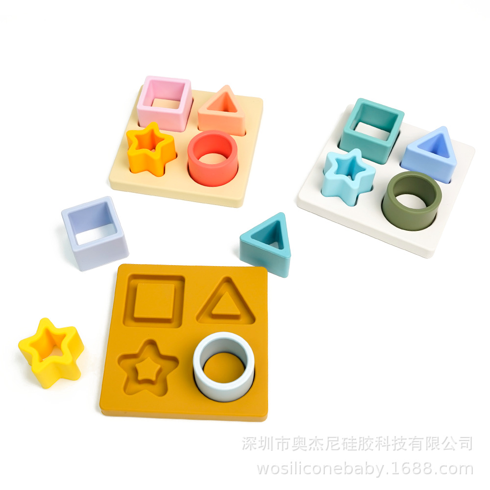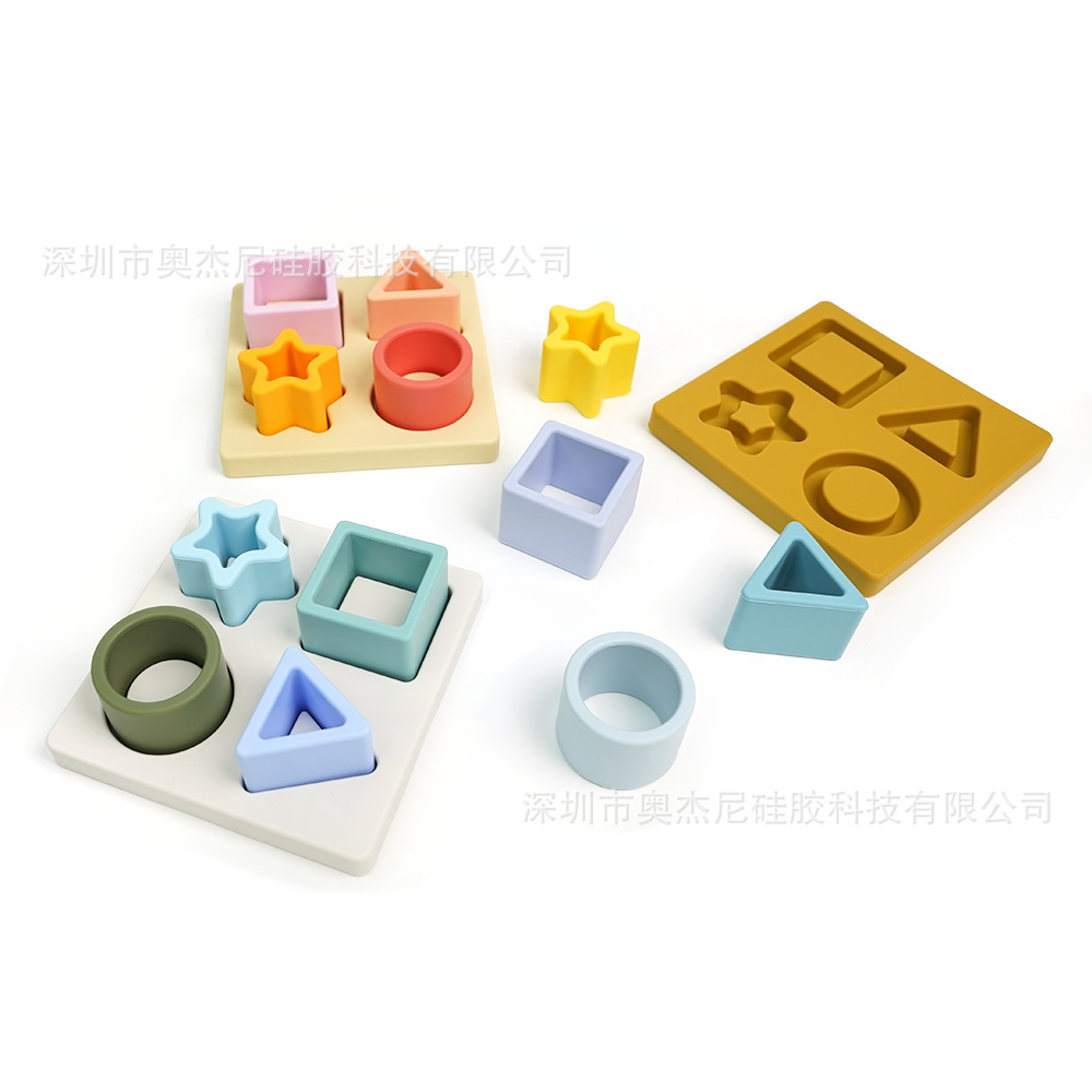 跨境爆款批发婴儿玩具几何立体拼图儿童益智硅胶拼版蒙氏积木玩具