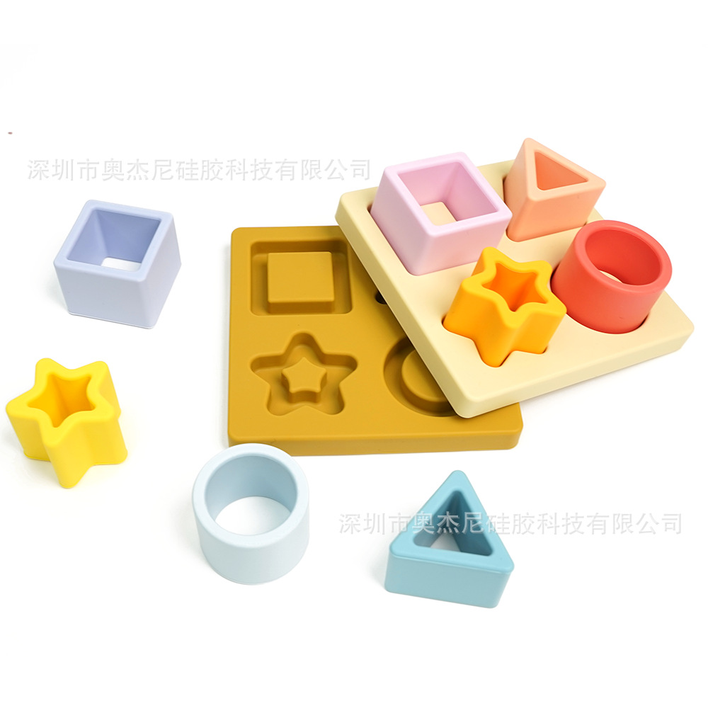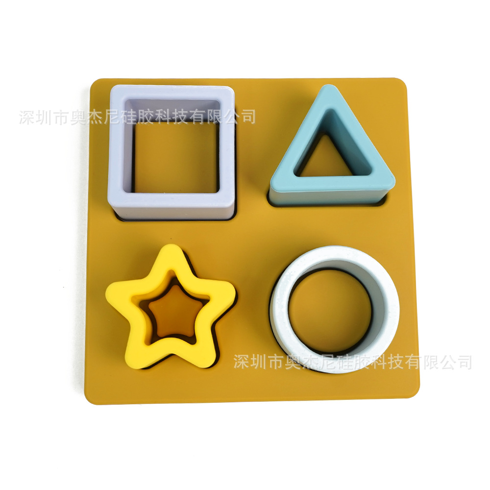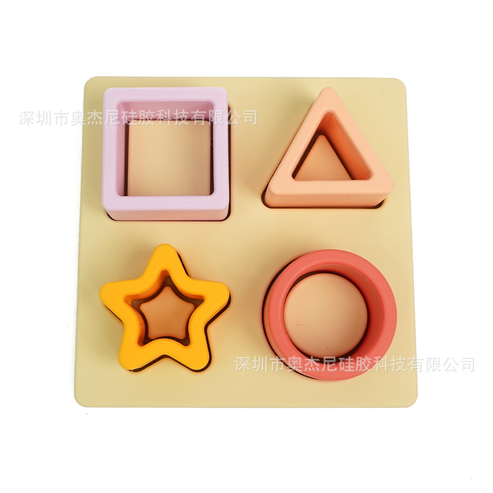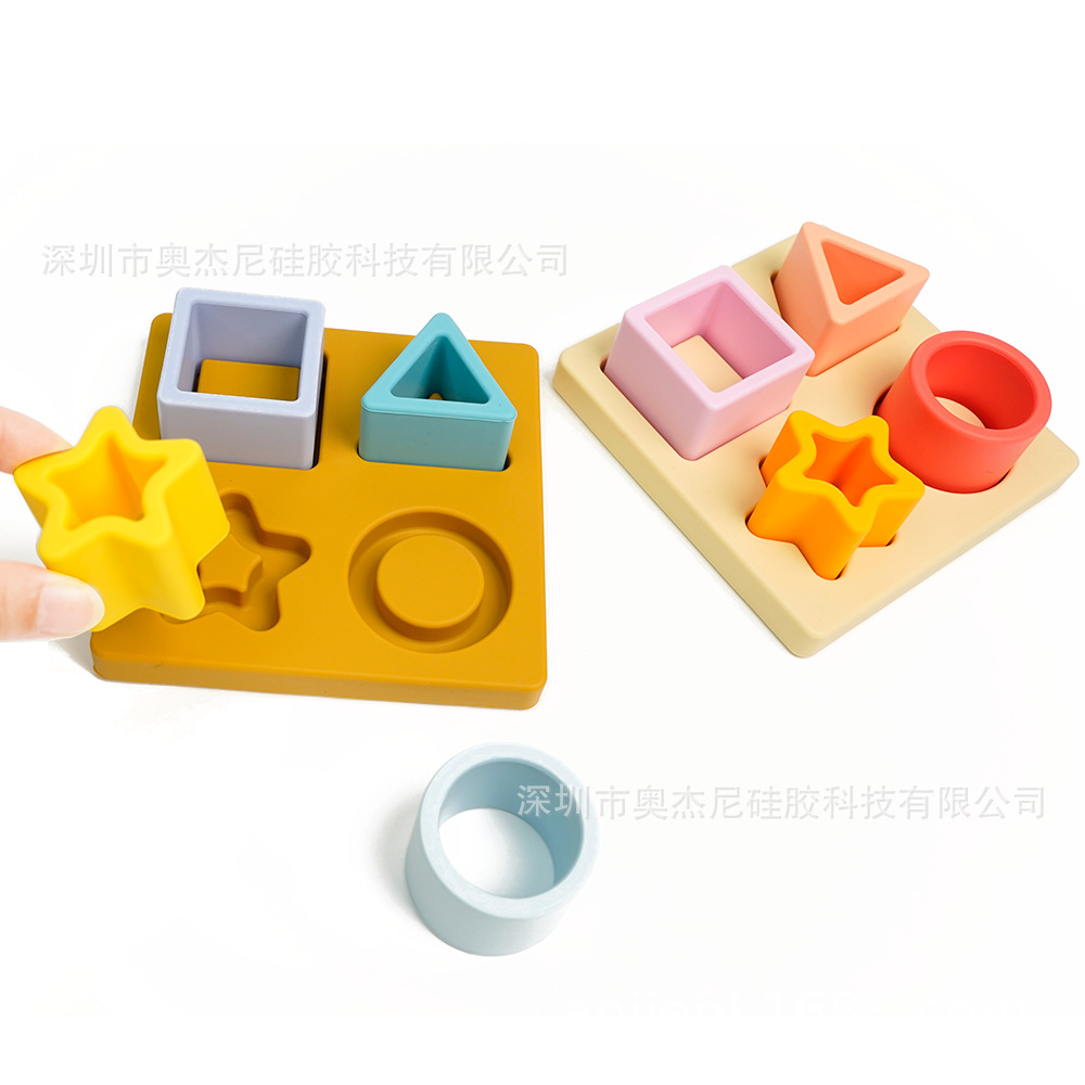 跨境爆款批发婴儿玩具几何立体拼图儿童益智硅胶拼版蒙氏积木玩具