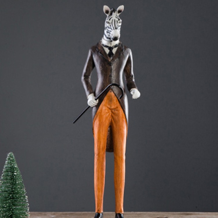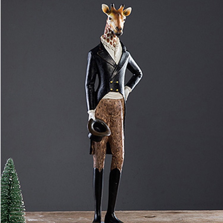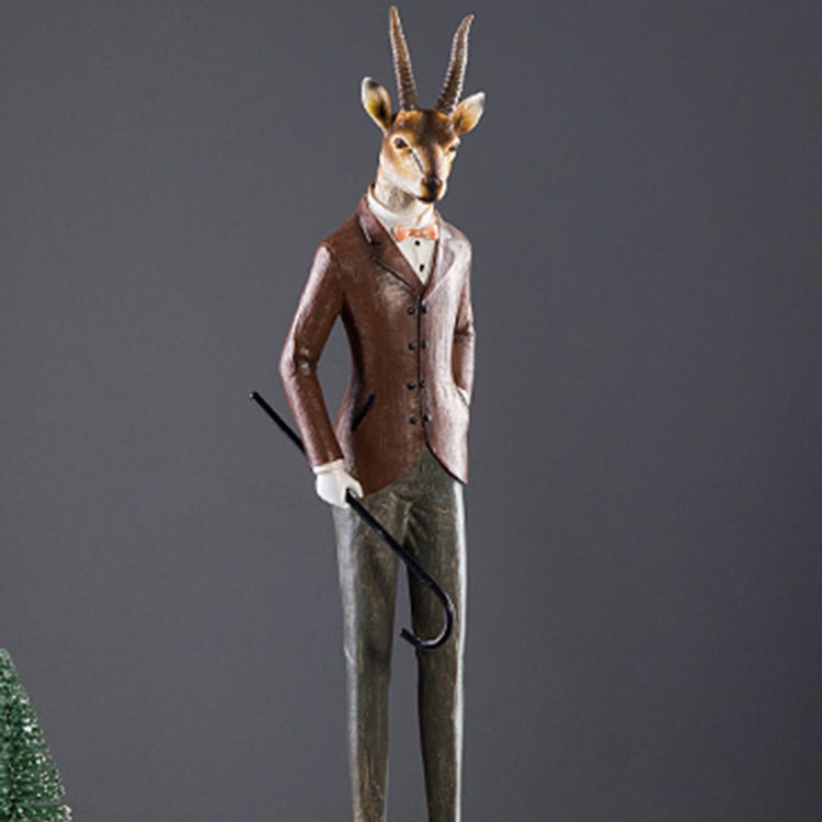 创意北欧风英伦绅士动物办公桌摆件定制酒柜桌面装饰品树脂工艺品