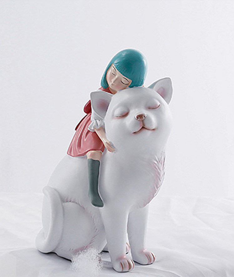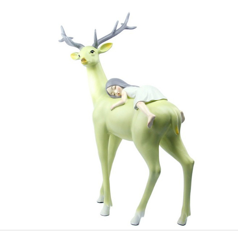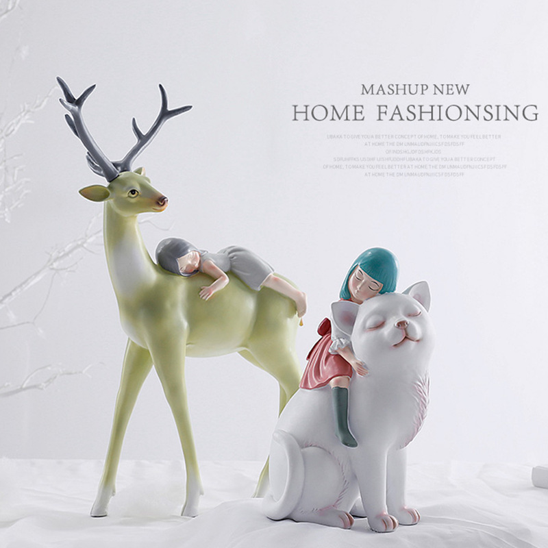 可爱创意树脂工艺品猫背少女桌面摆件家居客厅玄关装饰鹿背少女梦