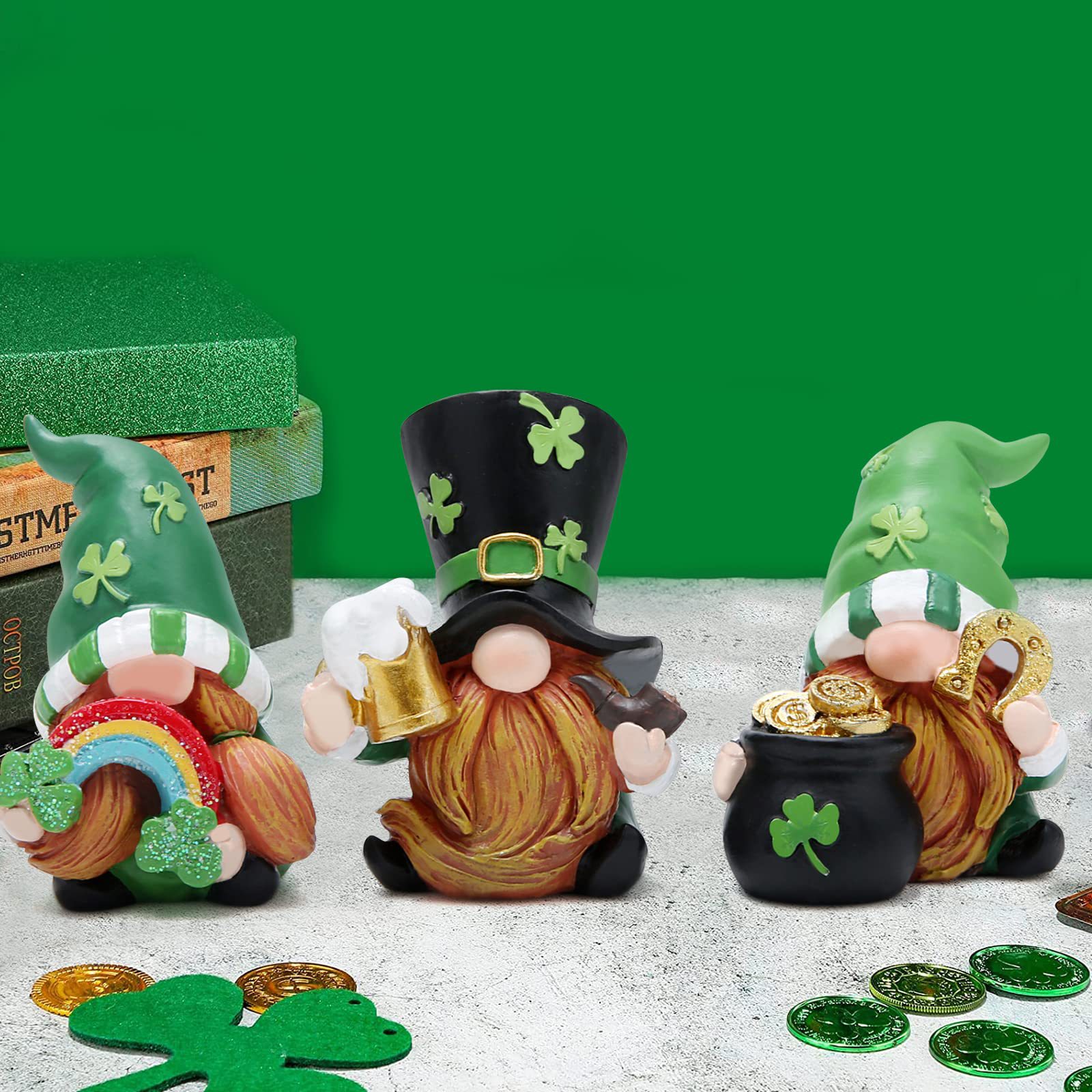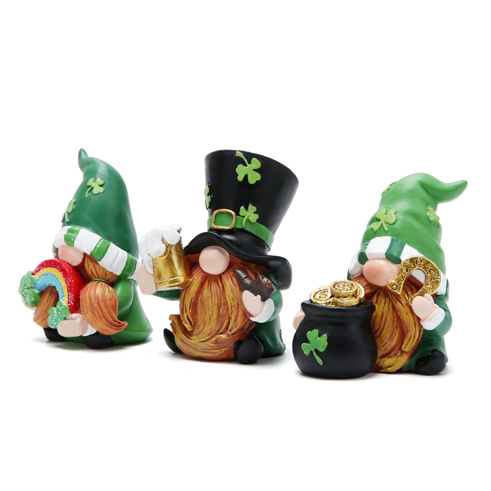 爱尔兰节花园小矮人装饰品树脂工艺品三件套彩虹侏儒老人装饰摆件