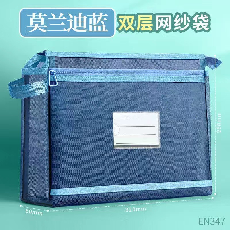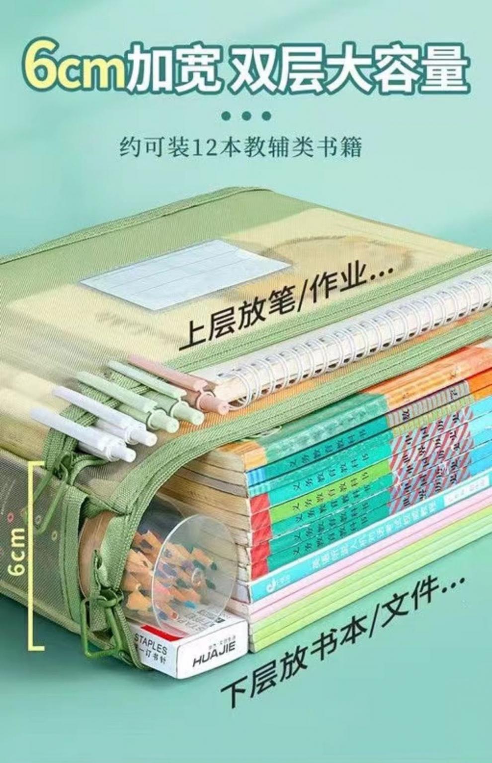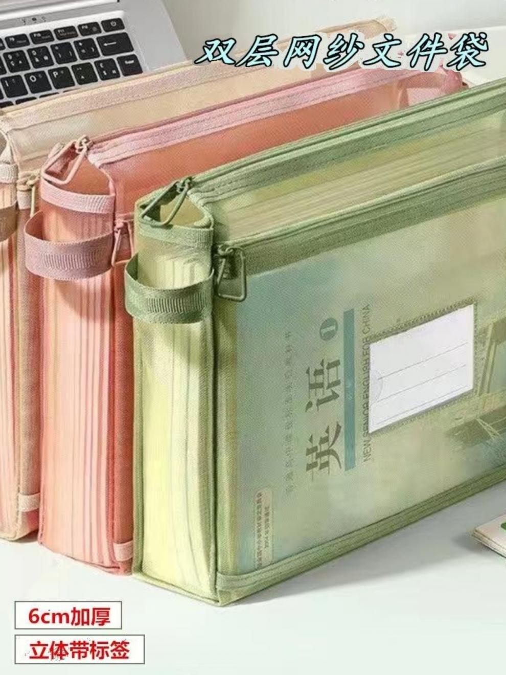 双层科目补习袋大容量书袋分类文件袋学生考试试卷透明手提收纳袋