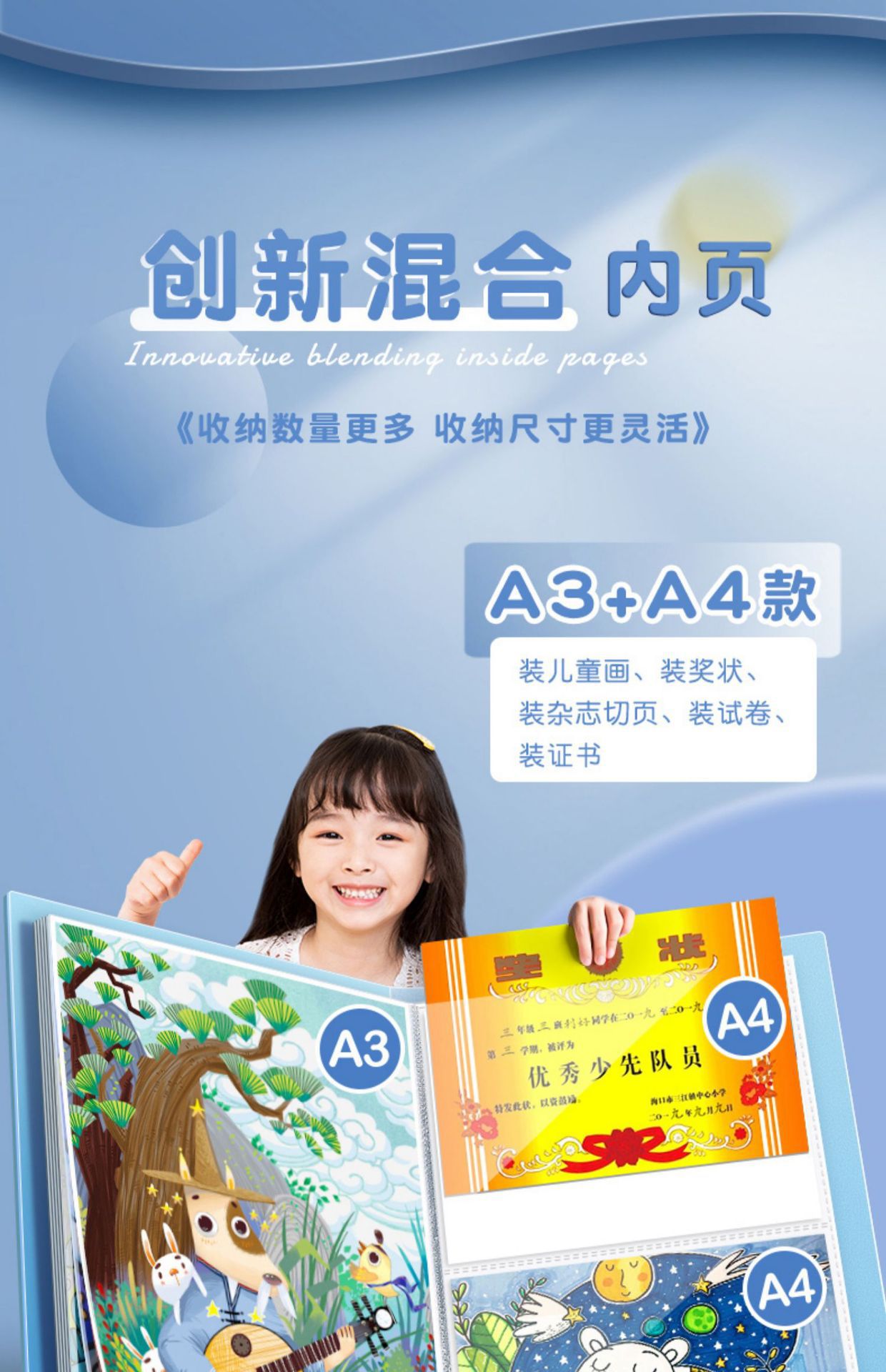 a3儿童画册收纳8k画夹奖状收集册绘画美术作品收纳袋画纸收纳册A4