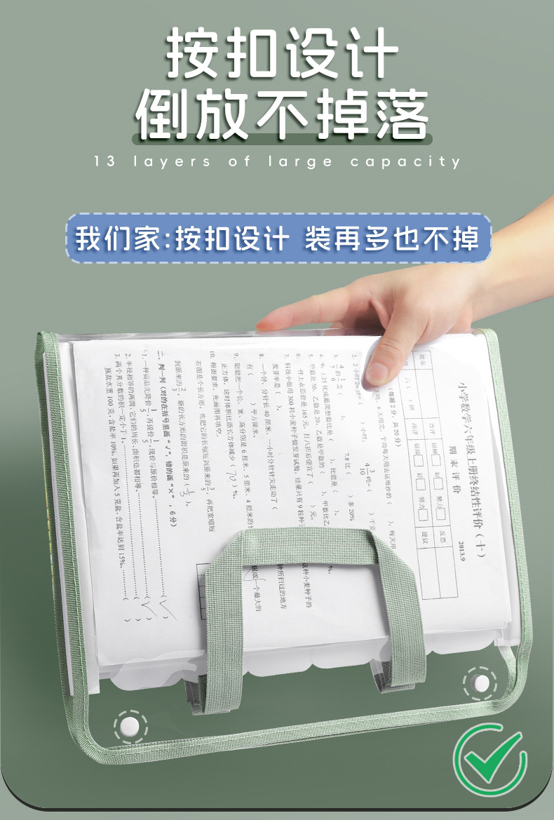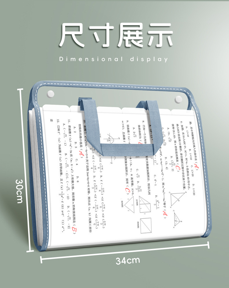 A4文件夹PVC手提风琴包试卷收纳册学生大容量办公用品多层资料袋