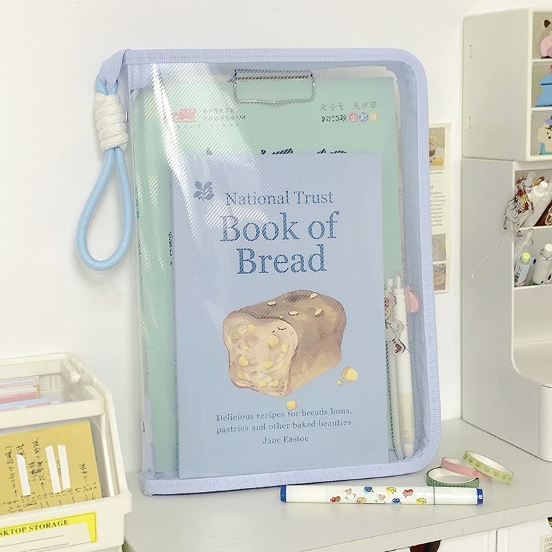 马卡龙透明A4文件袋大容量可装课本拉链式学生手提加厚防水收纳袋