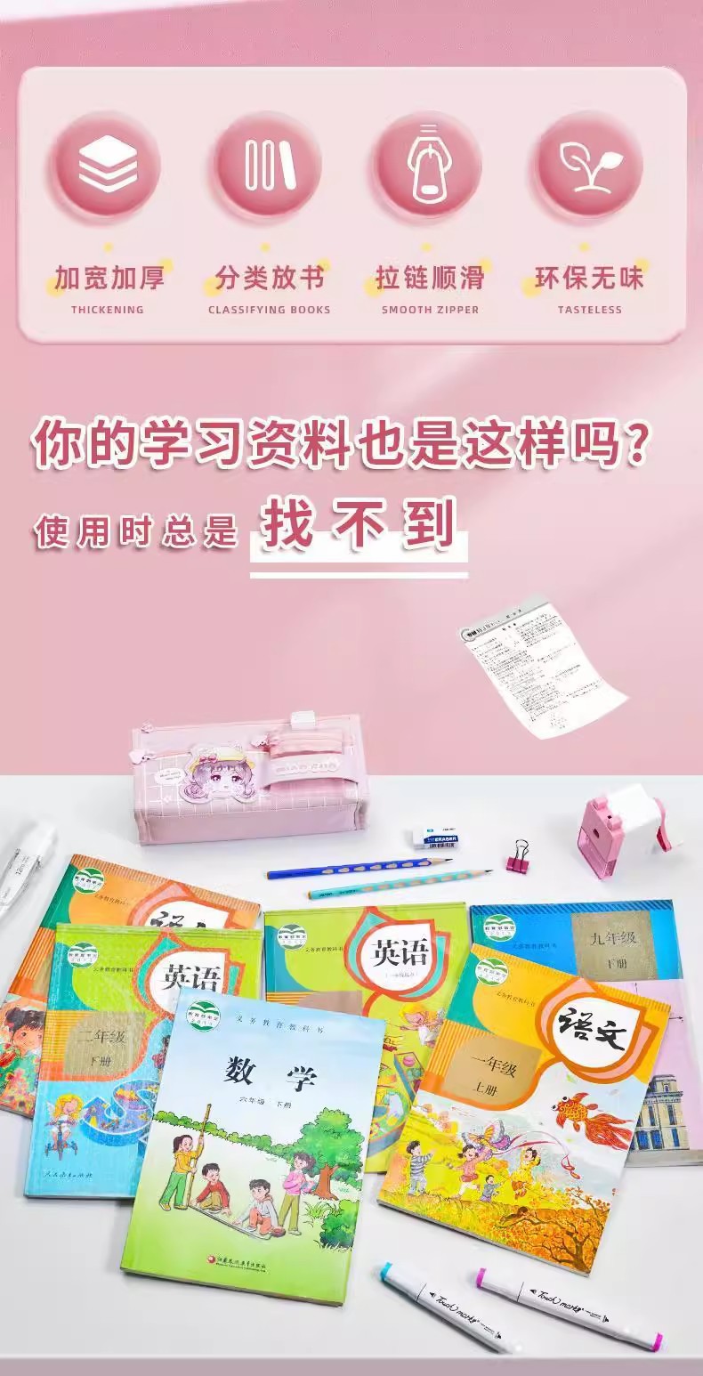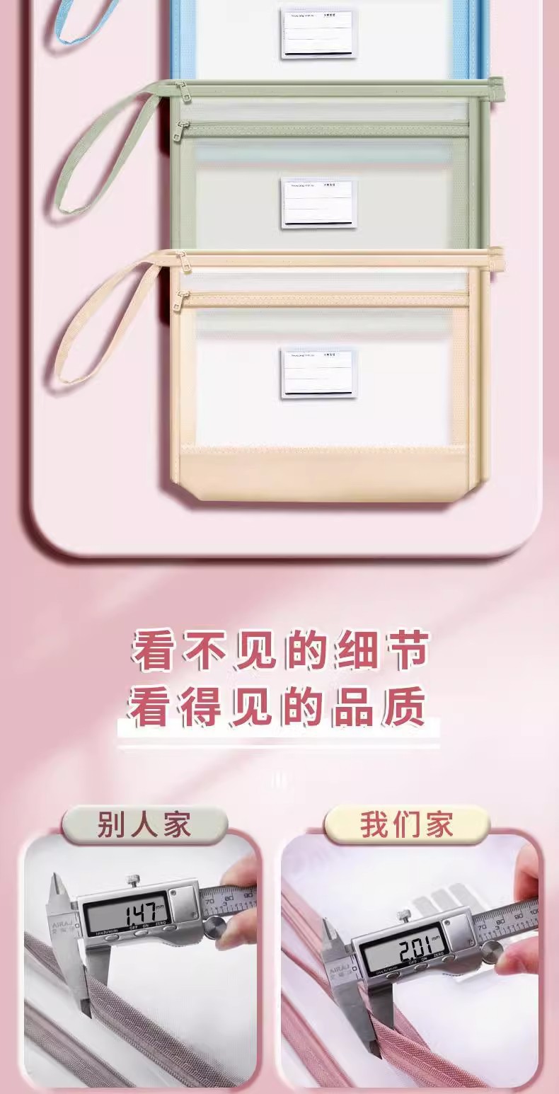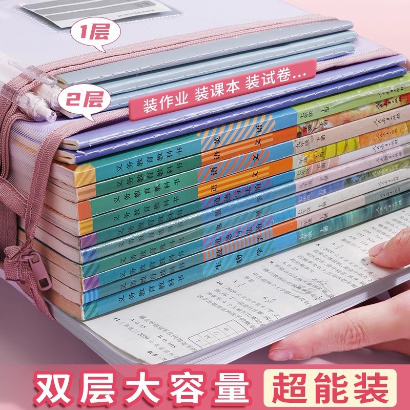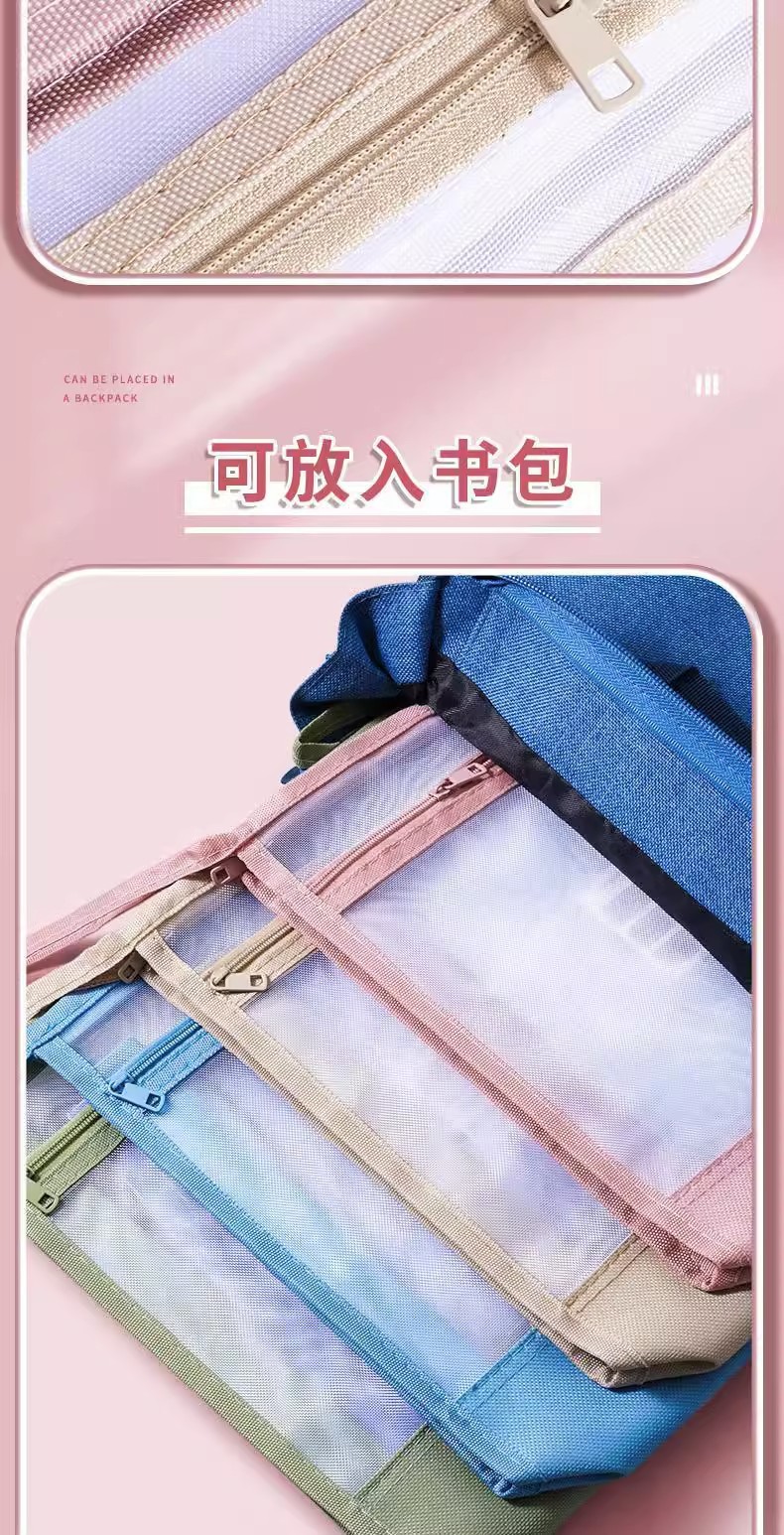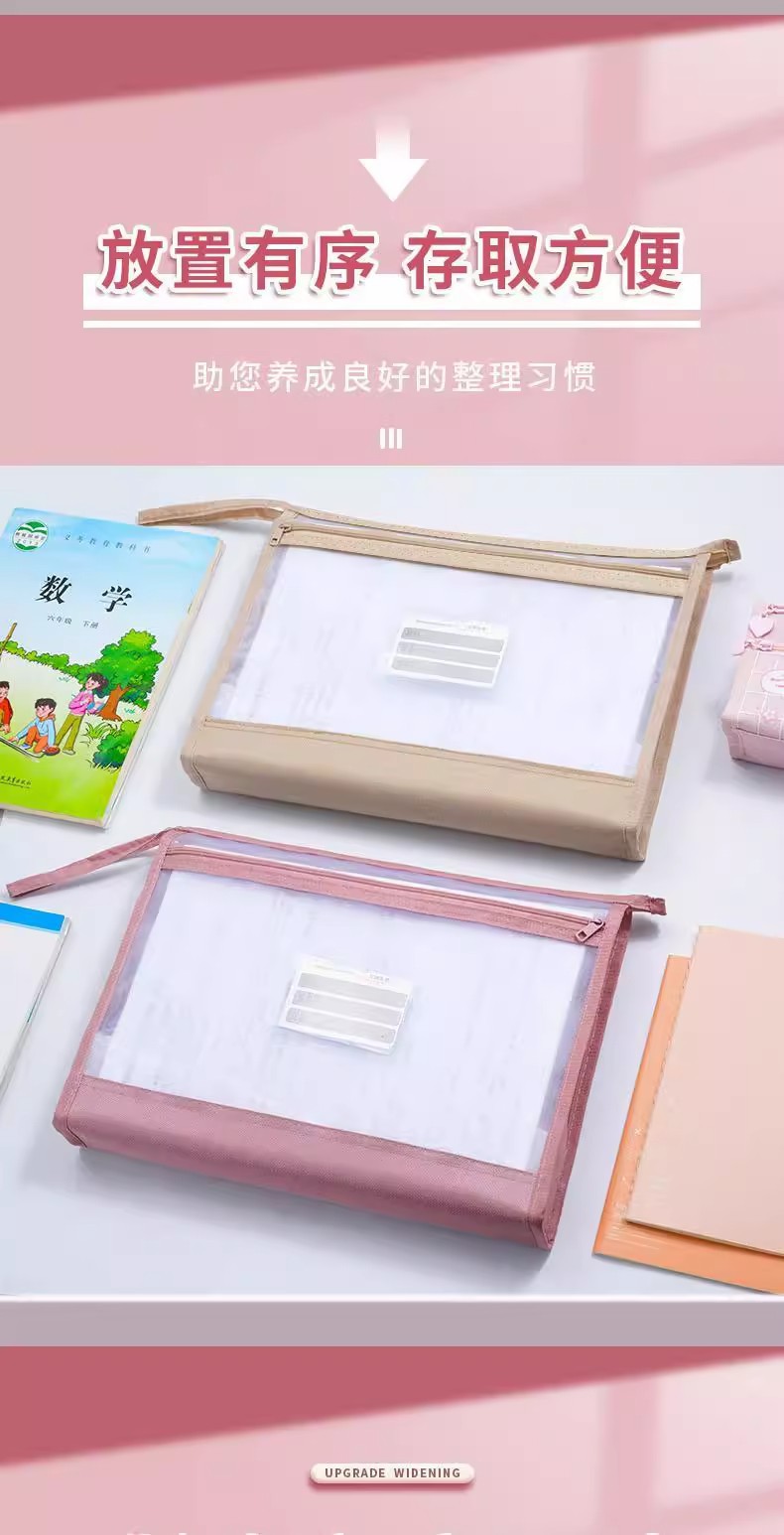 厂家批发加厚双层网纱科目袋A4 分类文件袋 立体式大容量收纳袋