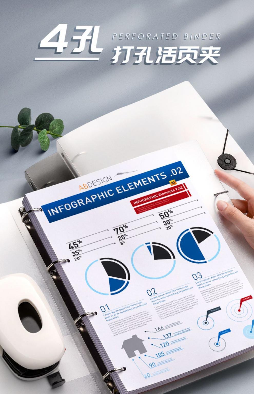 四孔a4打孔活页夹4孔文件夹资料册收纳书夹子外壳插页袋装订纸夹