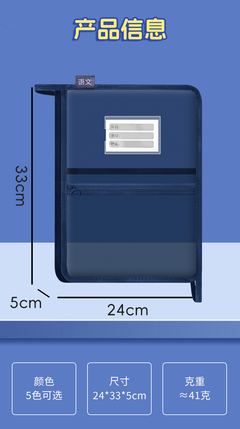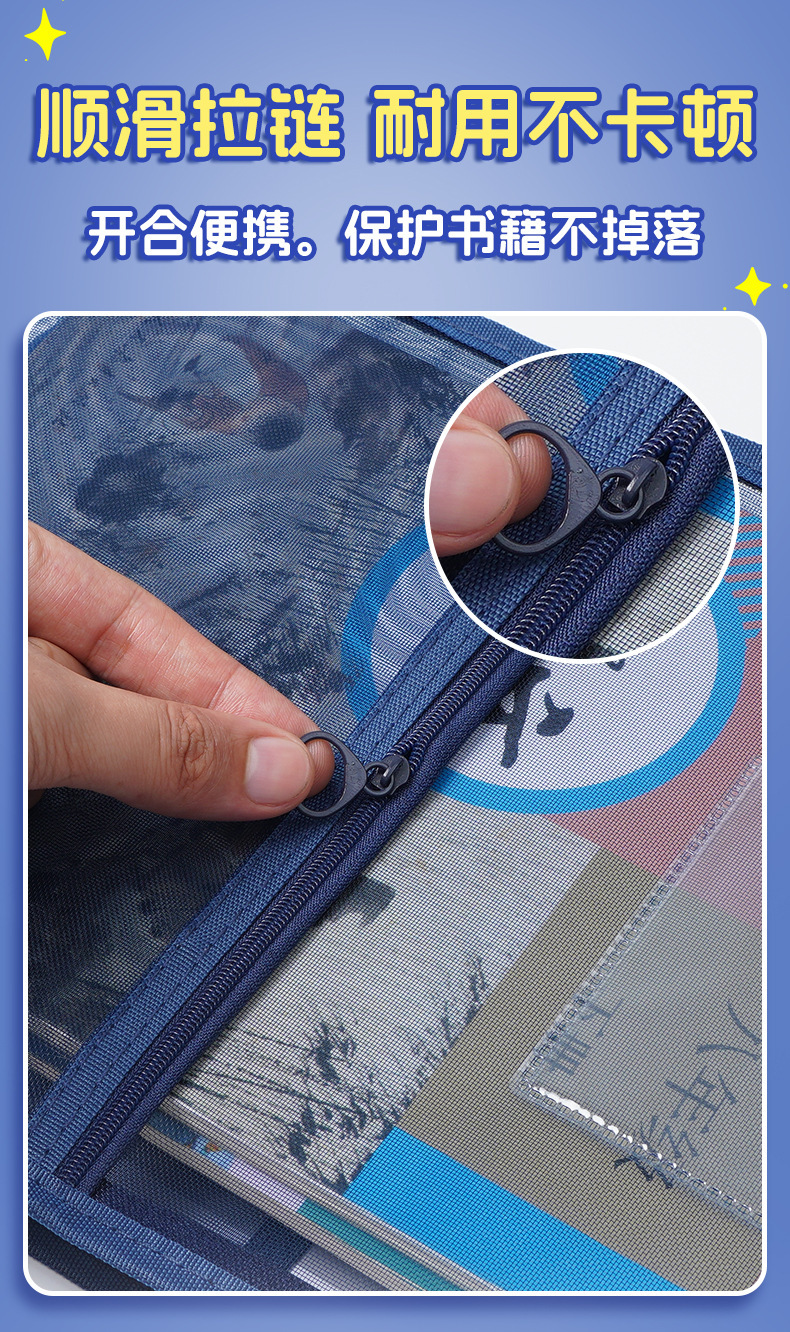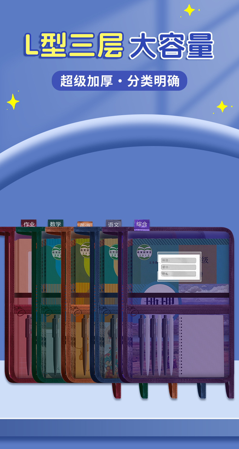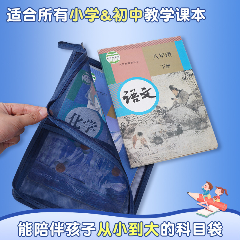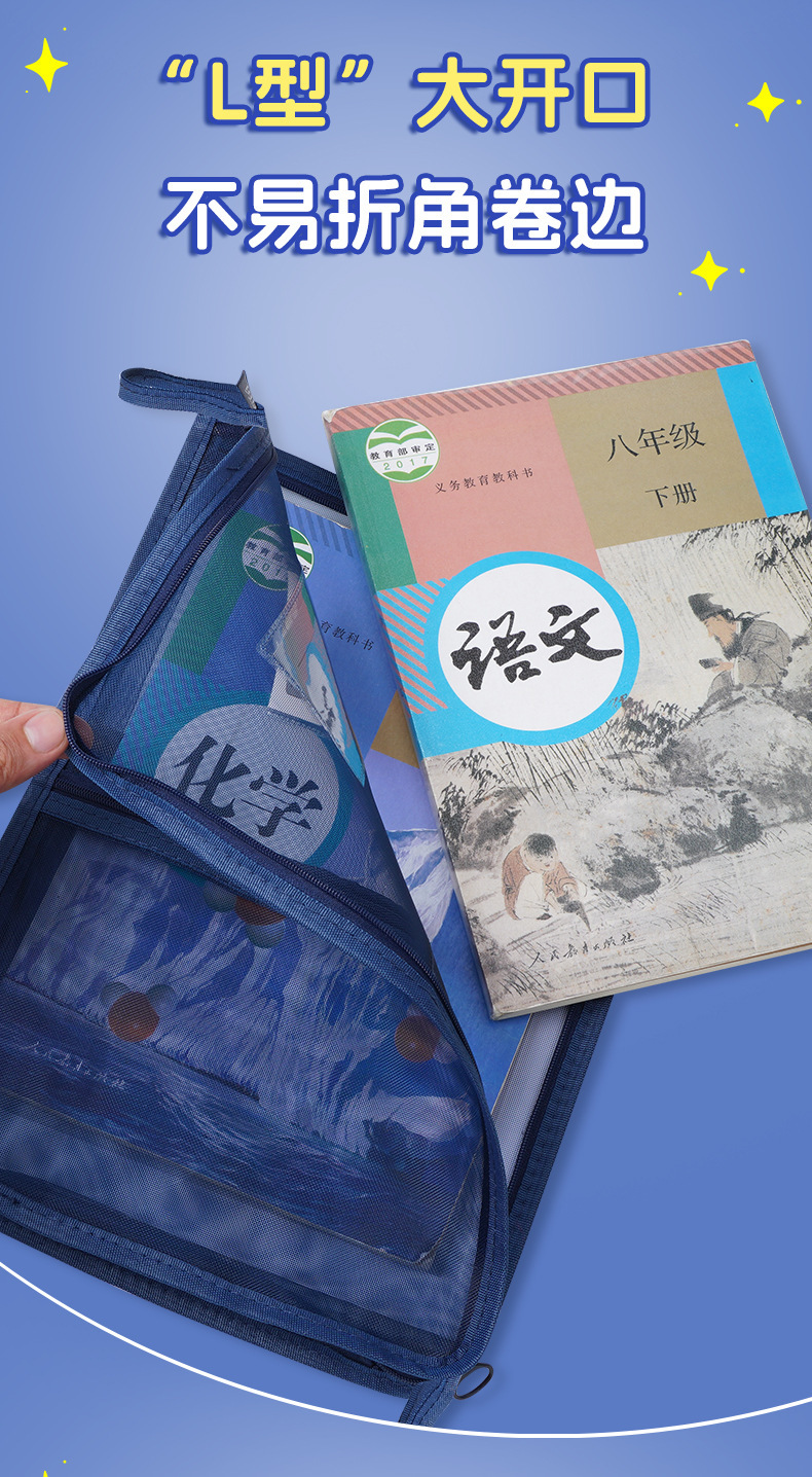 L型科目多层大容量文件袋学生科目分类课本试卷收纳袋A4透明网纱