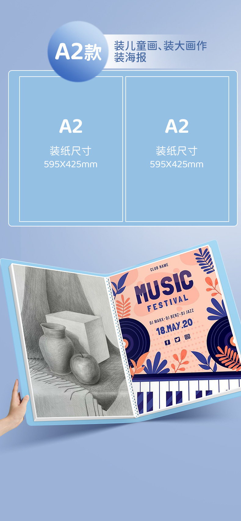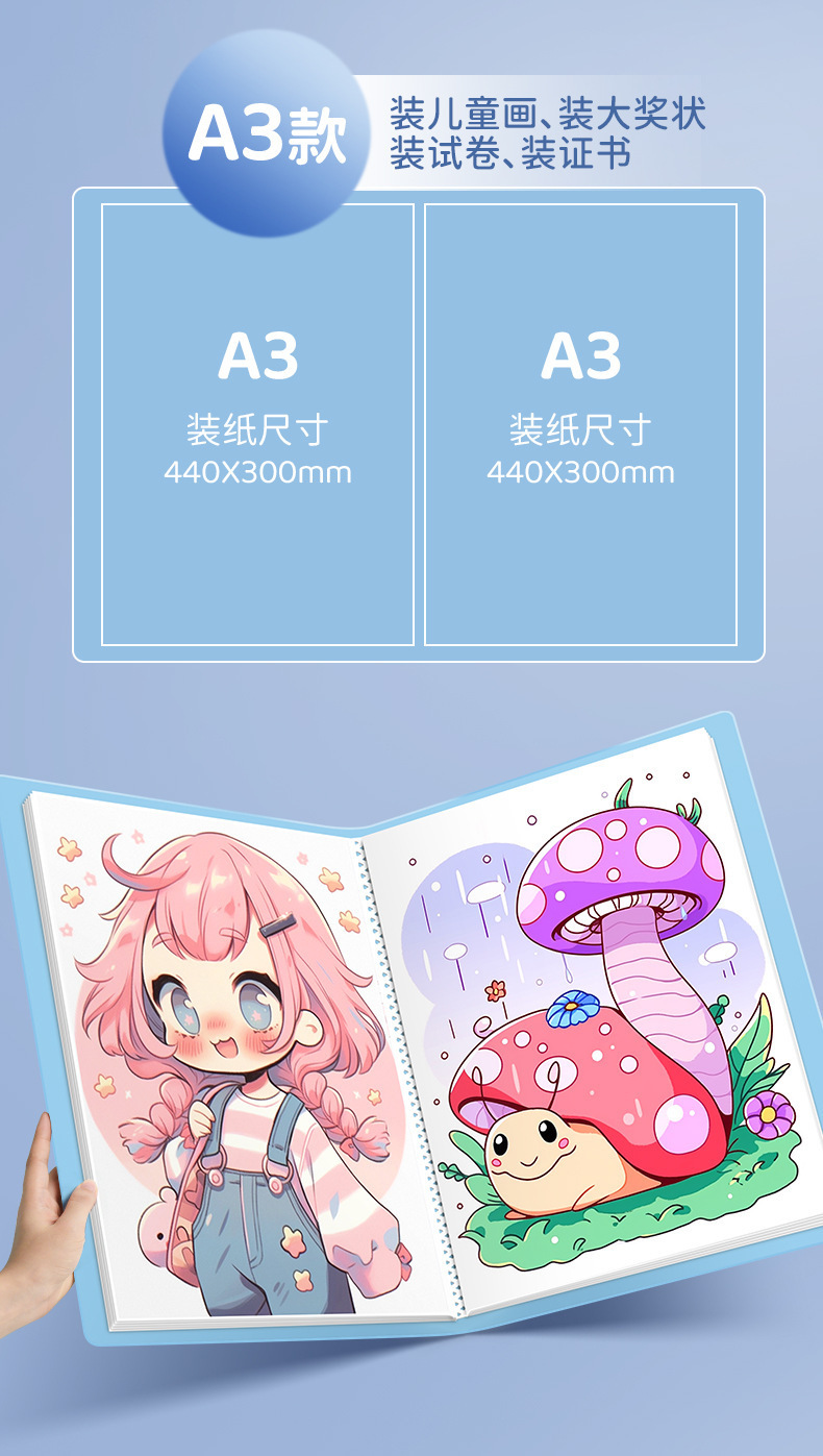 a3/a2/8k/4k儿童画册收纳册作品收集册绘画美术资料文件奖状素描