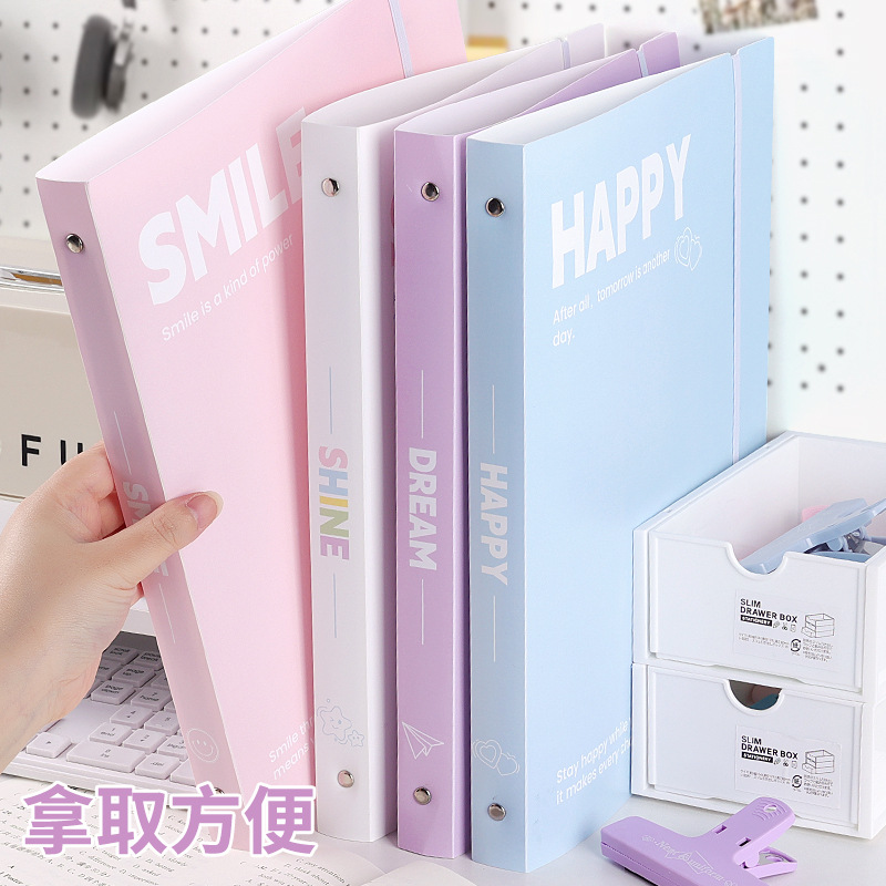 A4活页文件夹多孔资料册学生用试卷夹收纳袋透明简约ins风收纳册
