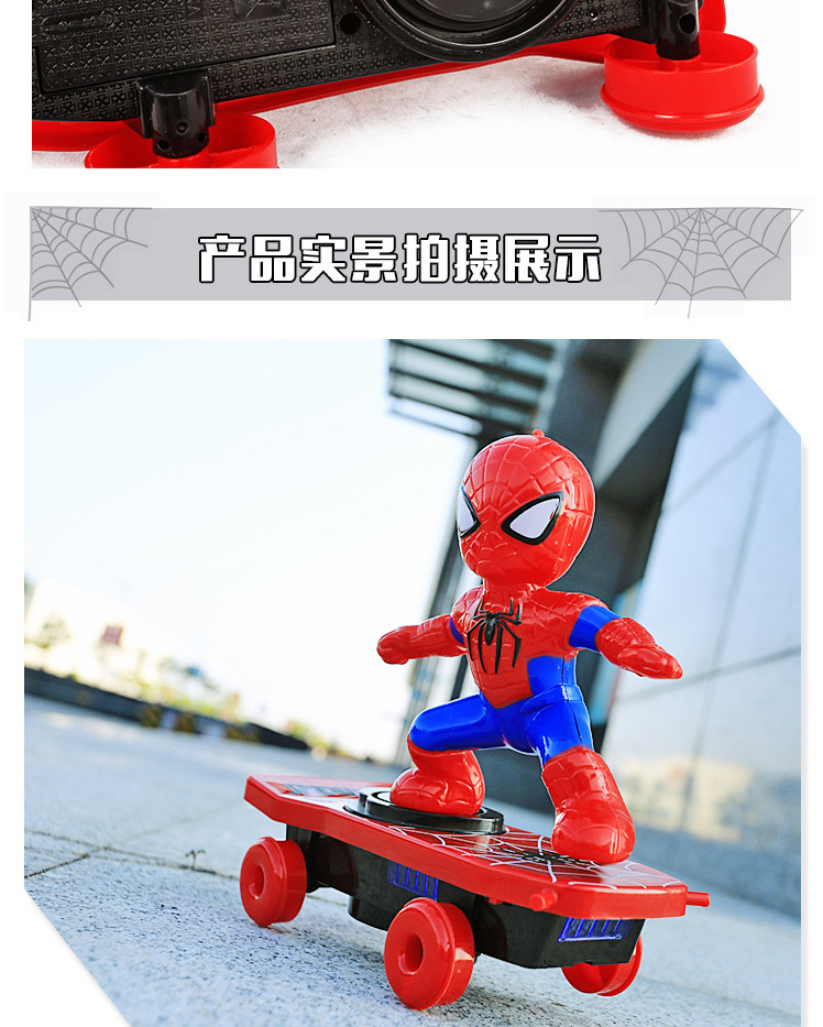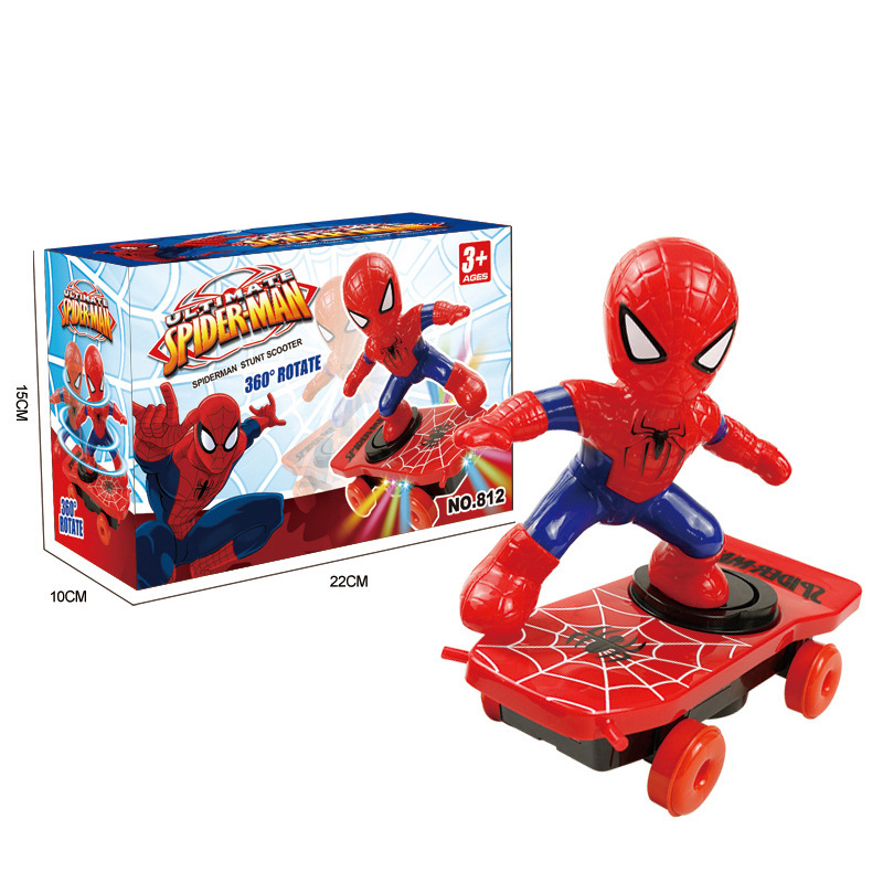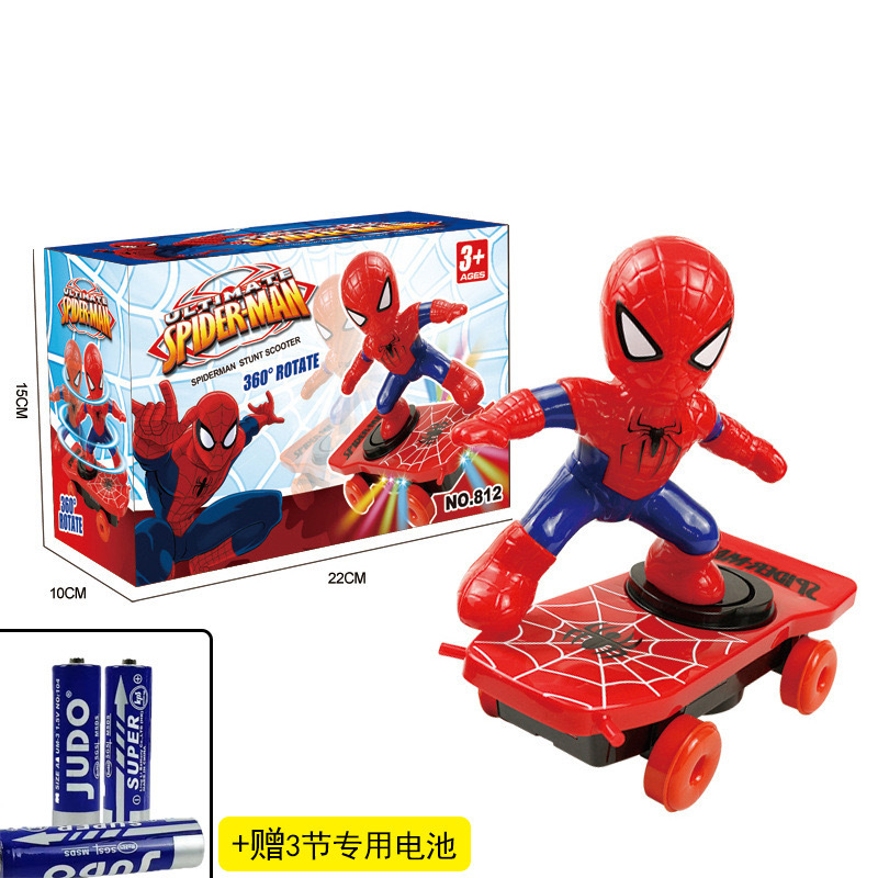 抖音爆款大号蜘蛛侠旋转翻滚起身声光滑板车特技奥特曼儿童玩具