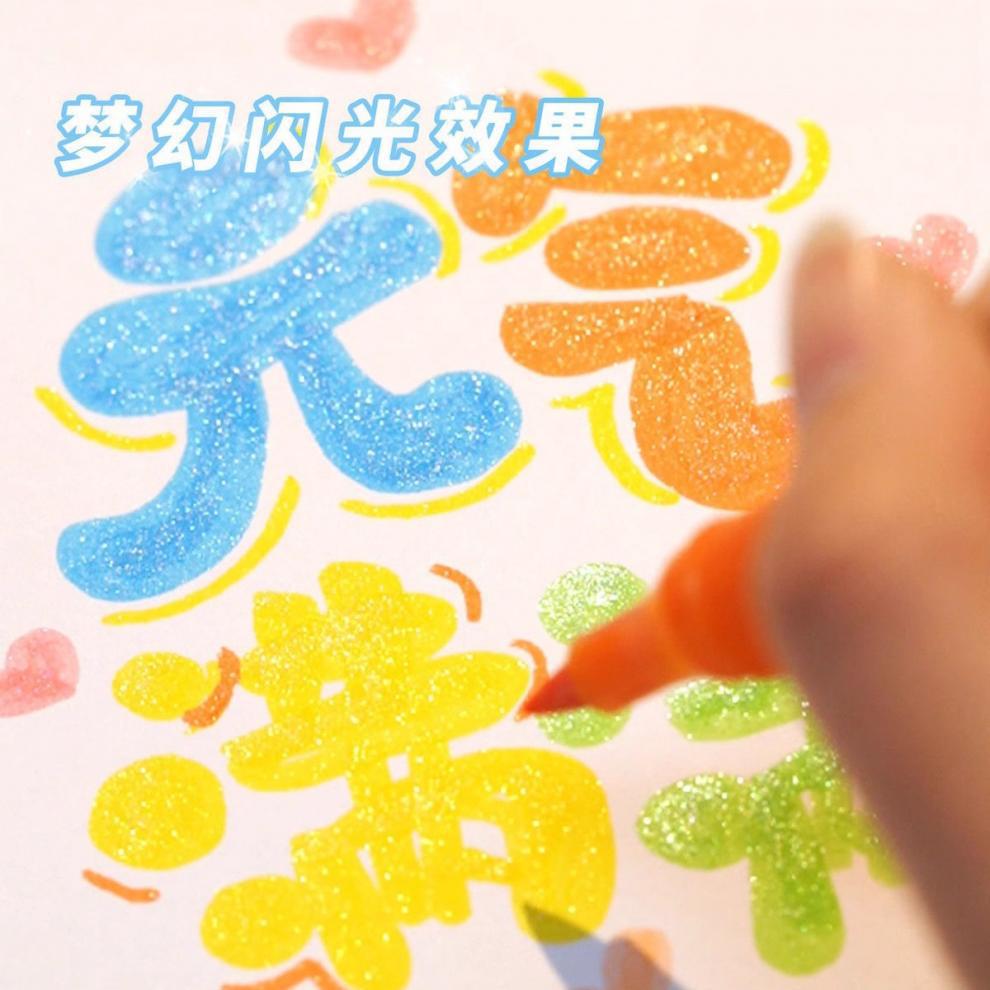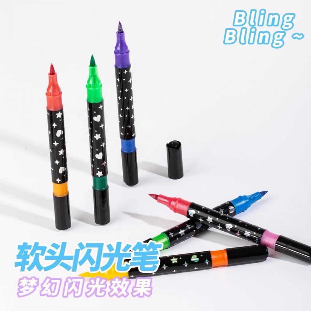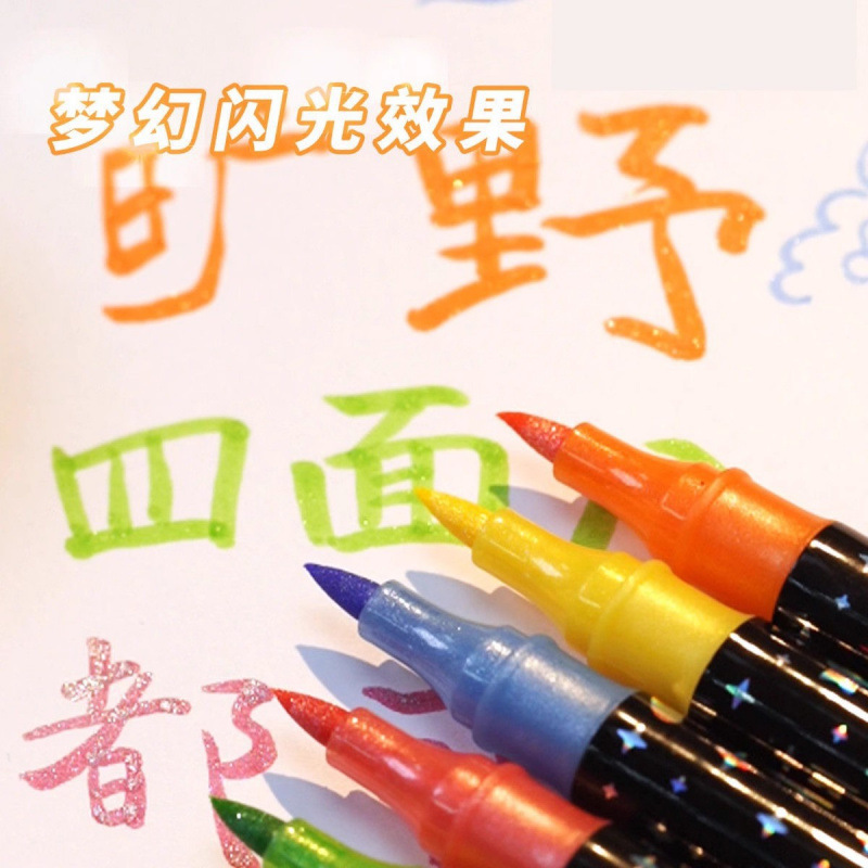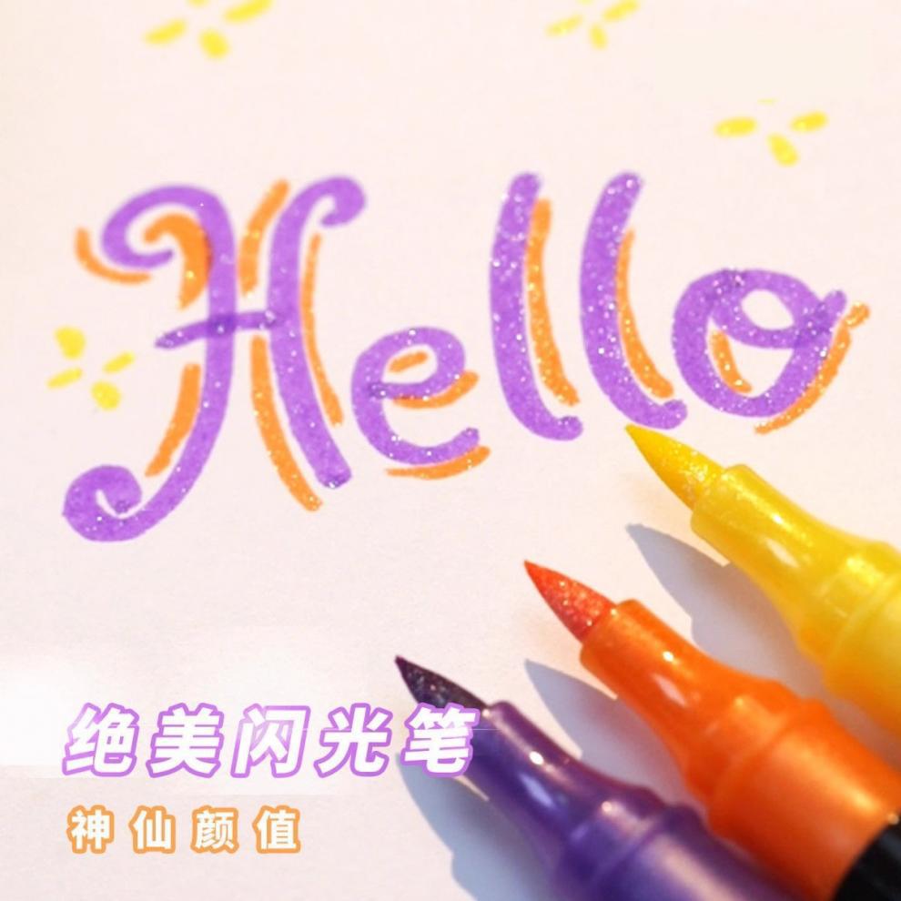 高亮双色闪光马克笔 加粗珠光闪粉笔 学生手账彩绘荧光记号笔