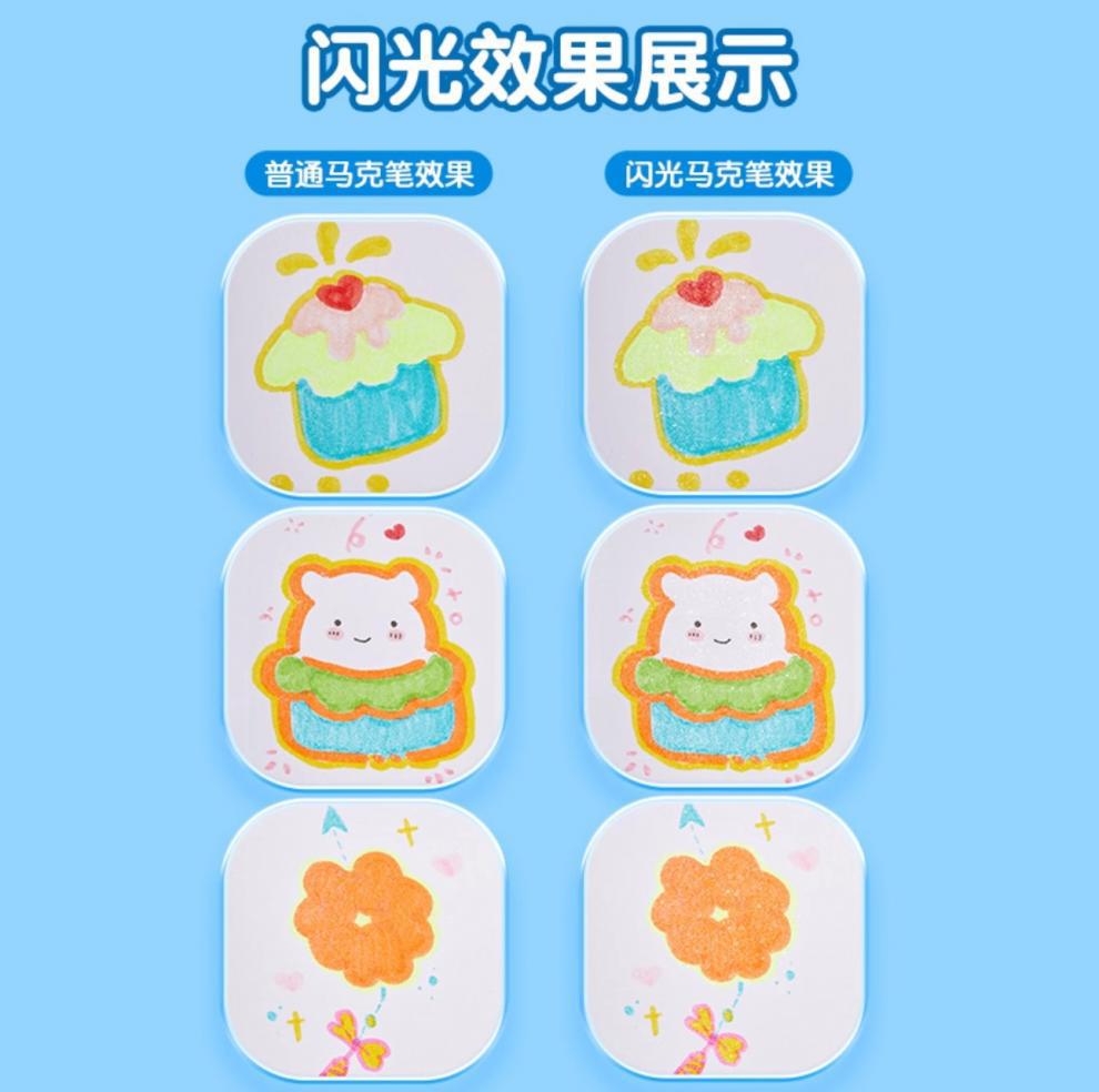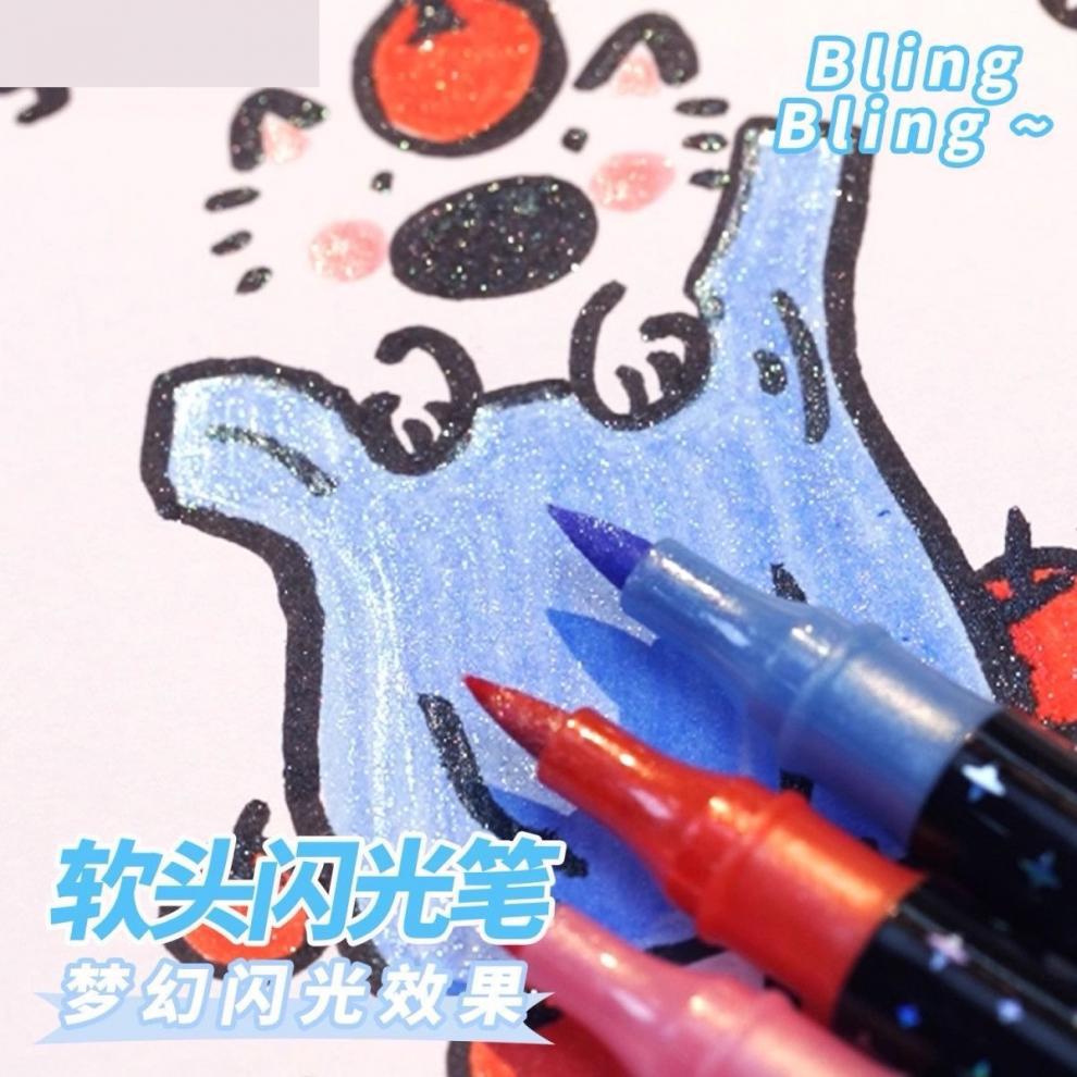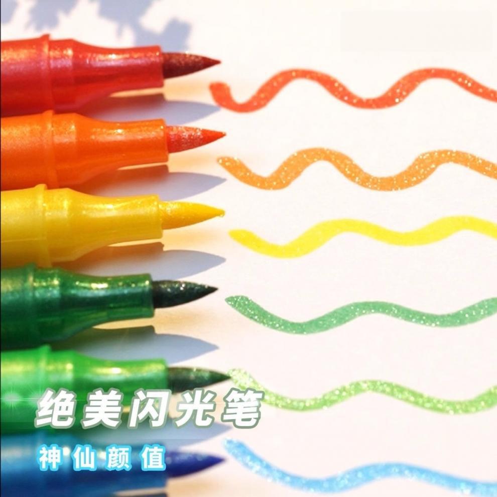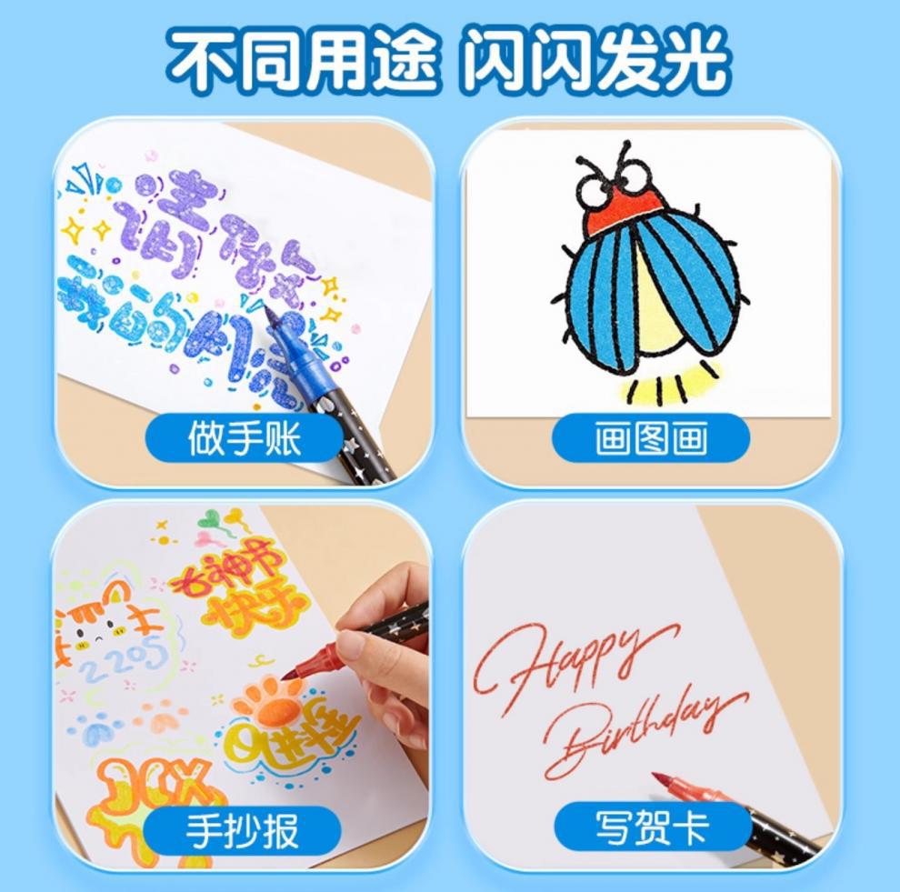高亮双色闪光马克笔 加粗珠光闪粉笔 学生手账彩绘荧光记号笔