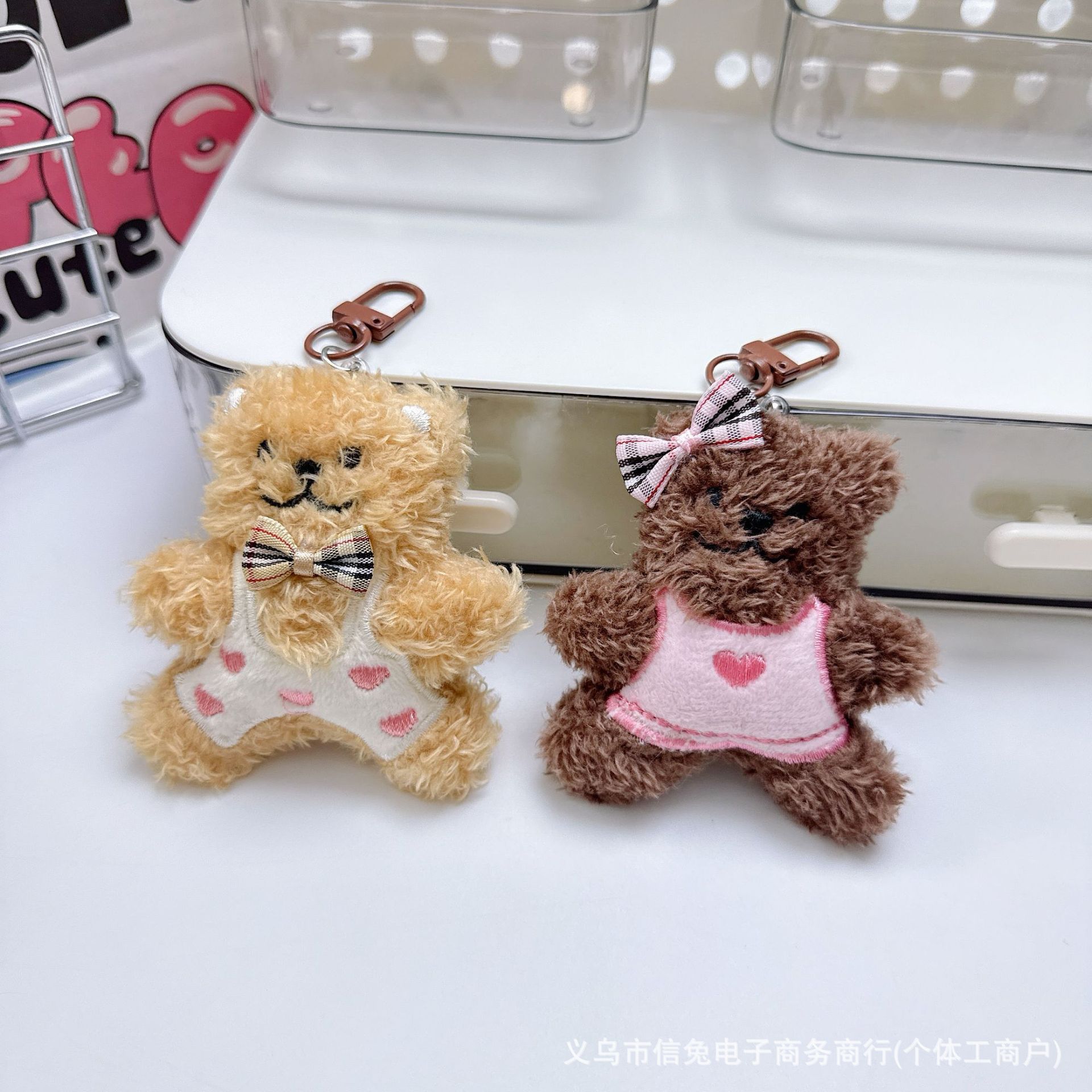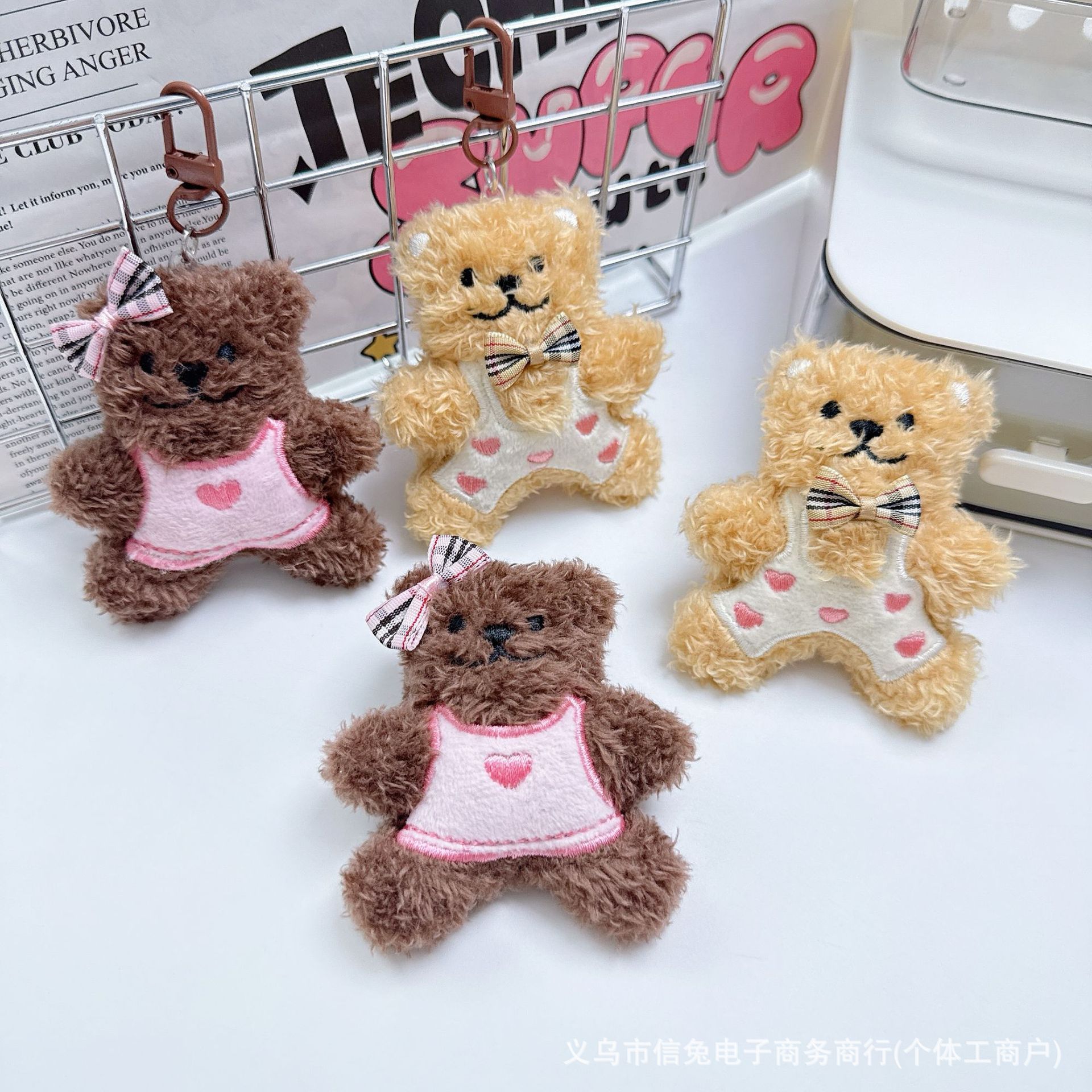 可爱爱心领结小熊毛绒挂件创意穿衣小熊钥匙扣包包小挂饰玩偶礼品