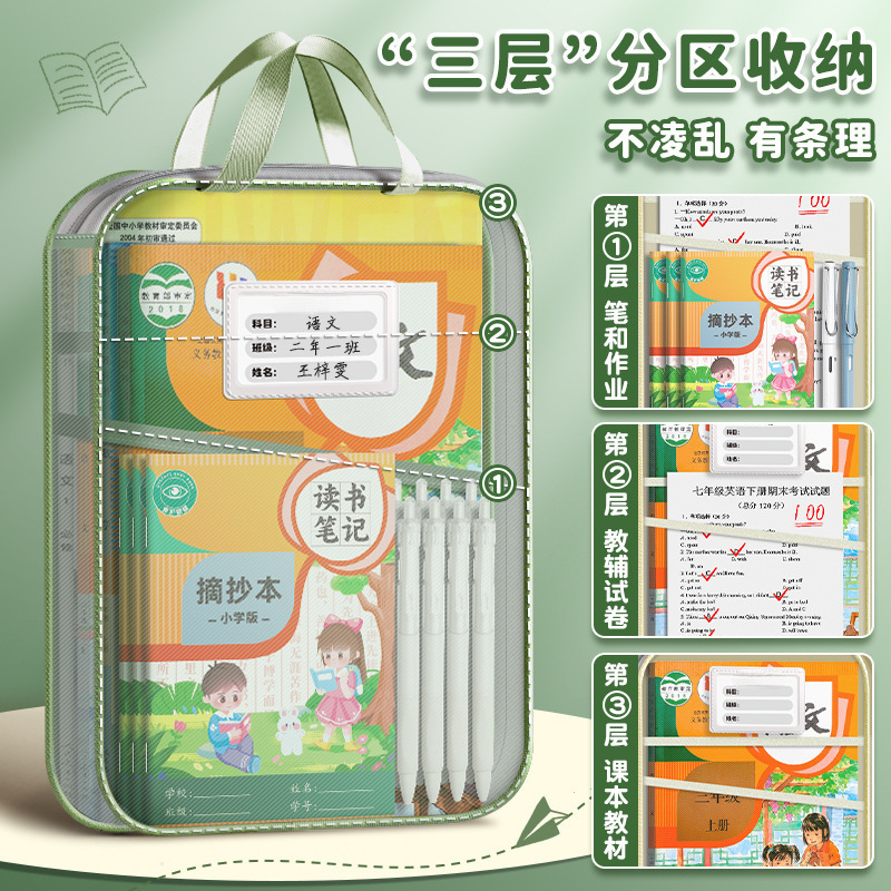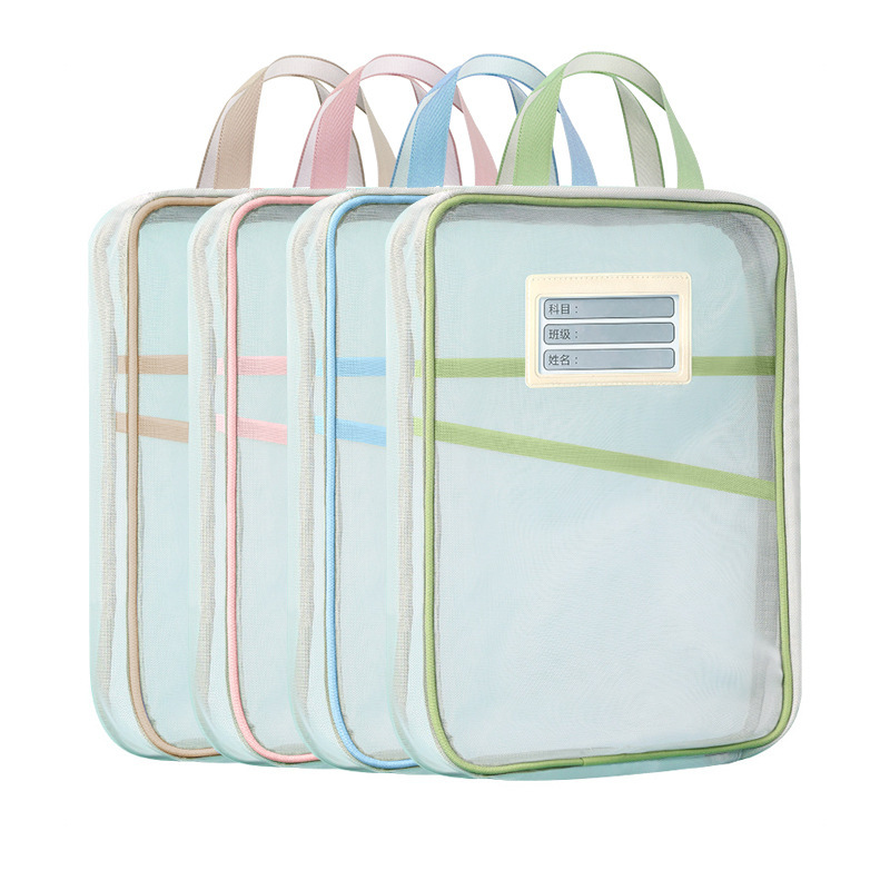 L型科目分类袋透明文件袋拉链式网纱考试用补习袋档案试卷收纳袋