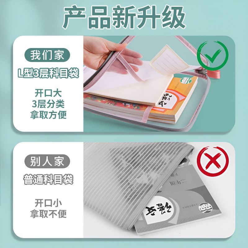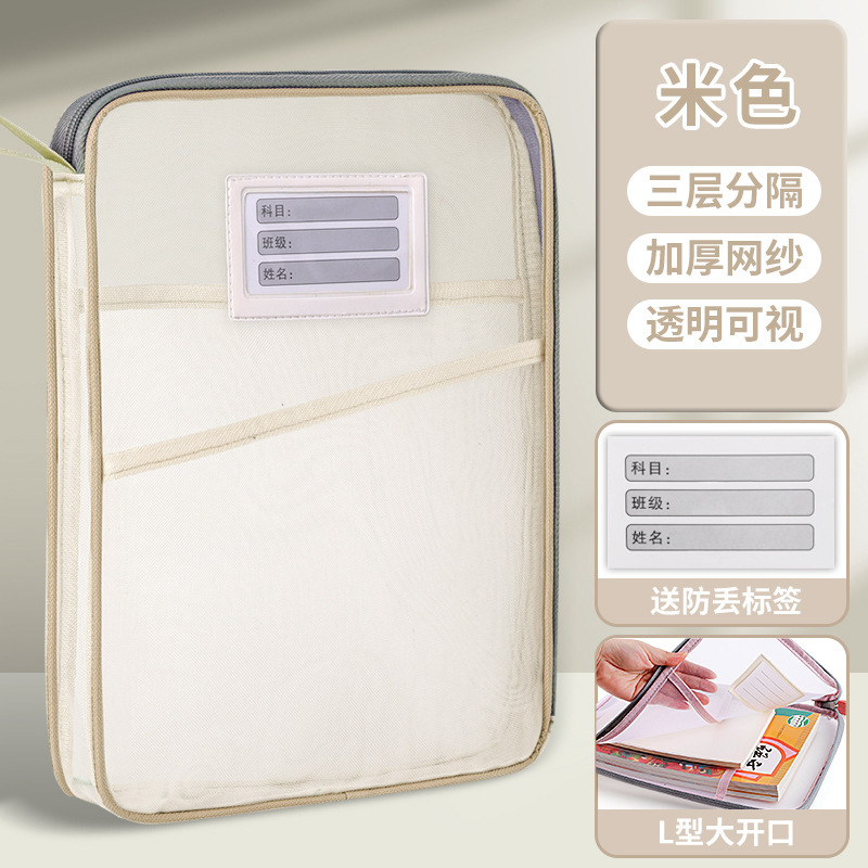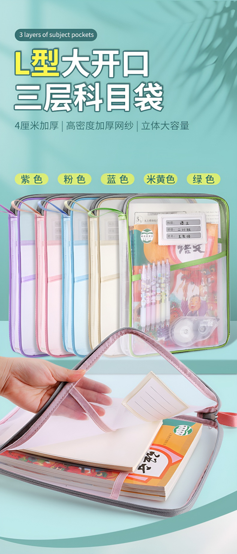 加厚L型文件袋拉链大容量学生手提试卷分类袋 网纱三层科目袋现货