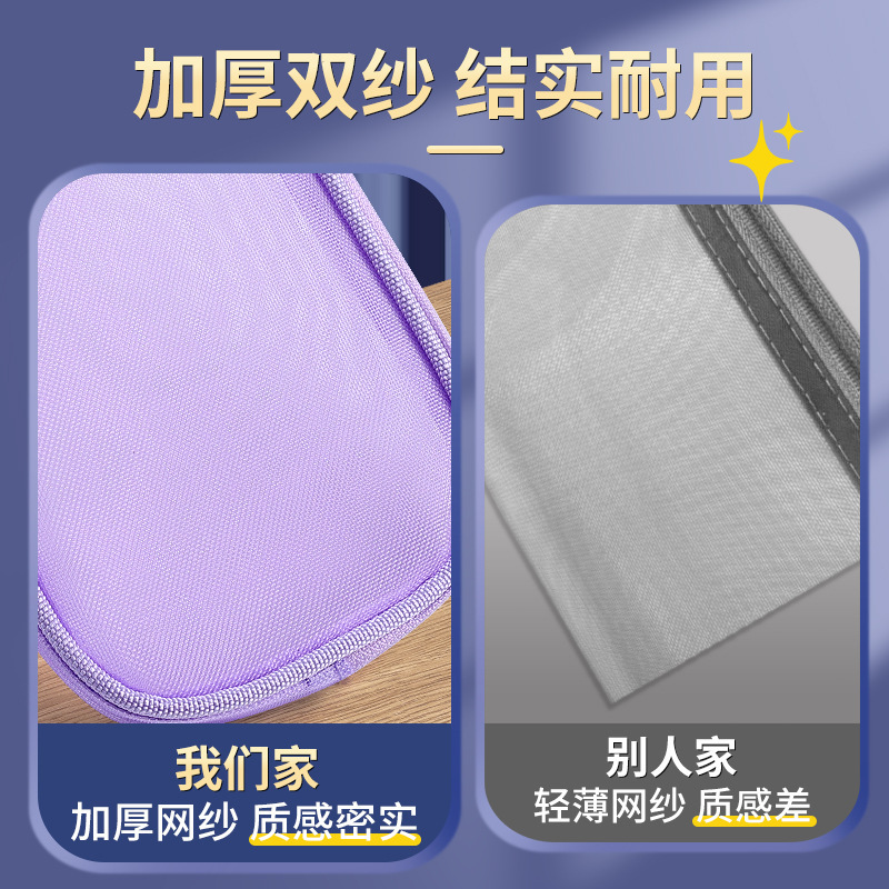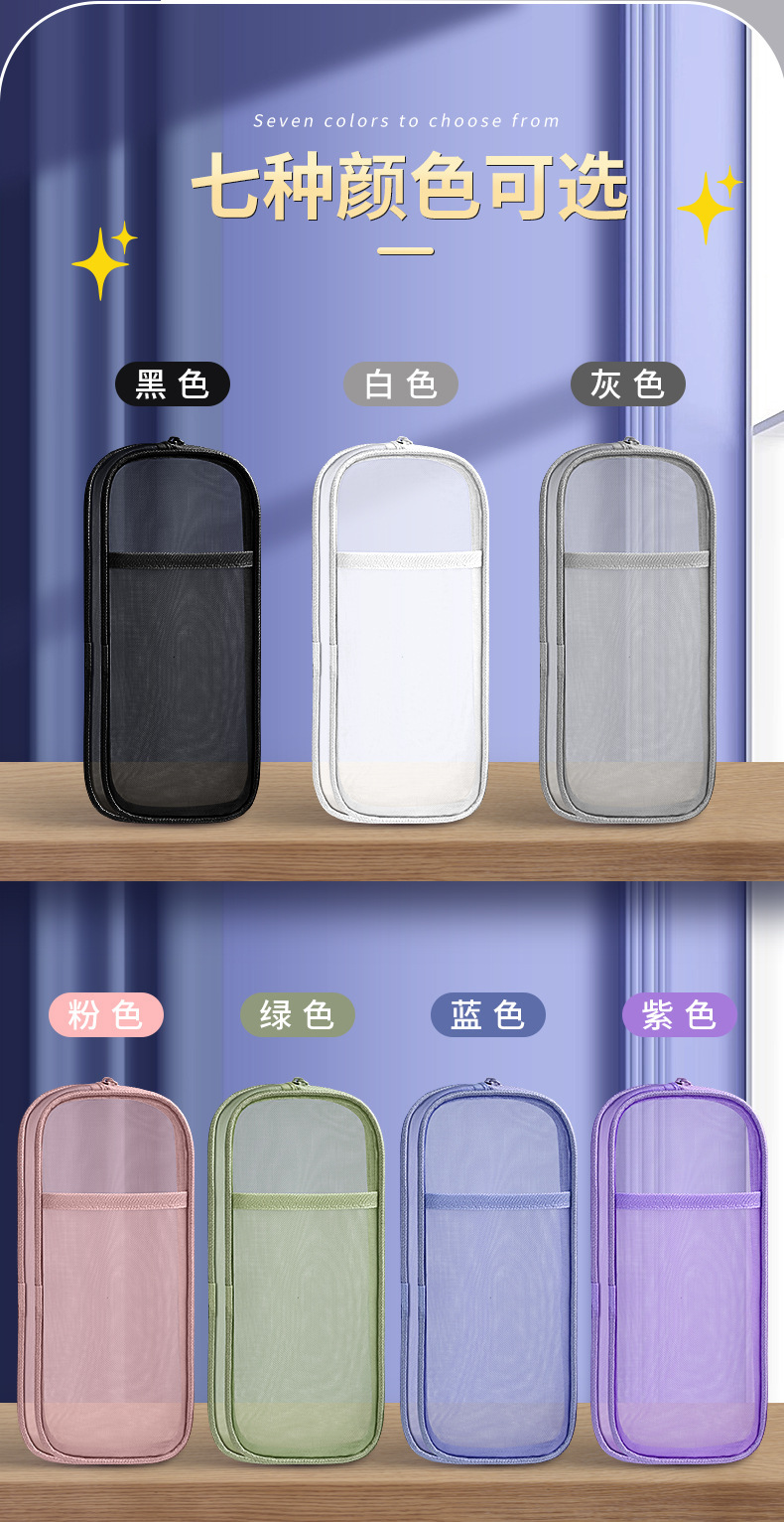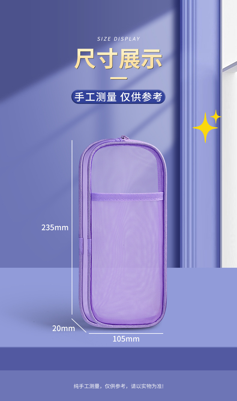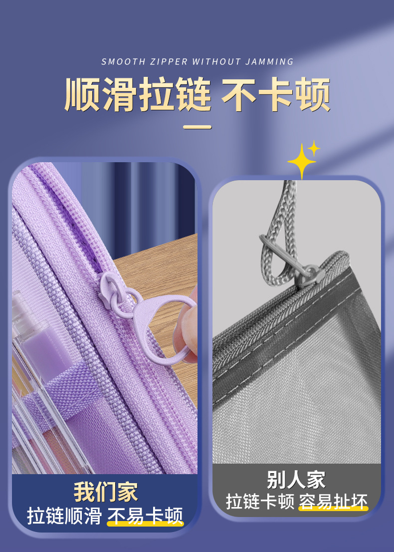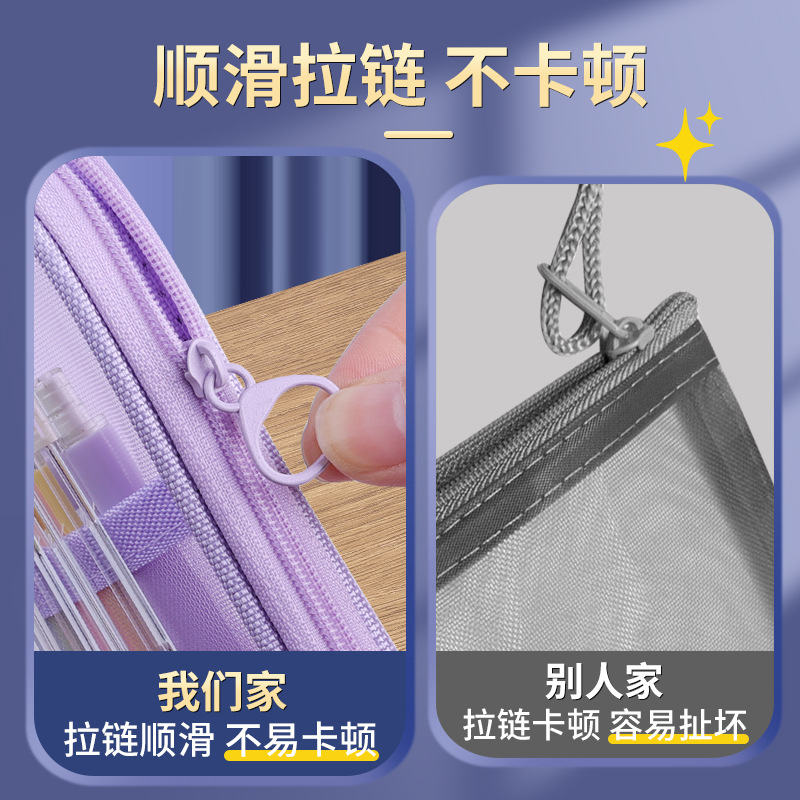 简约双层网纱笔袋学生大容量文具袋透明铅笔袋便携式手提收纳袋