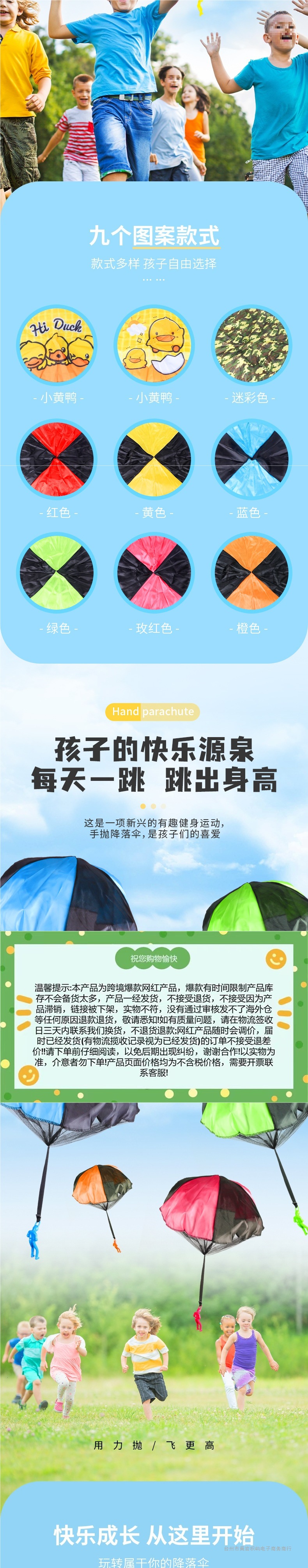 黄小鸭儿童降落伞户外运动手抛降落伞公园玩具空投户外游戏小道具