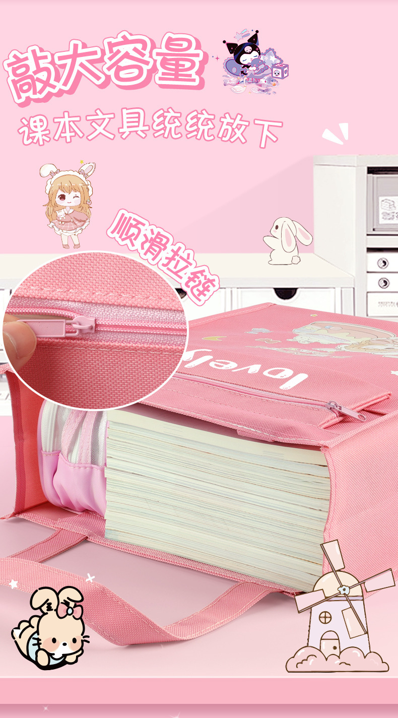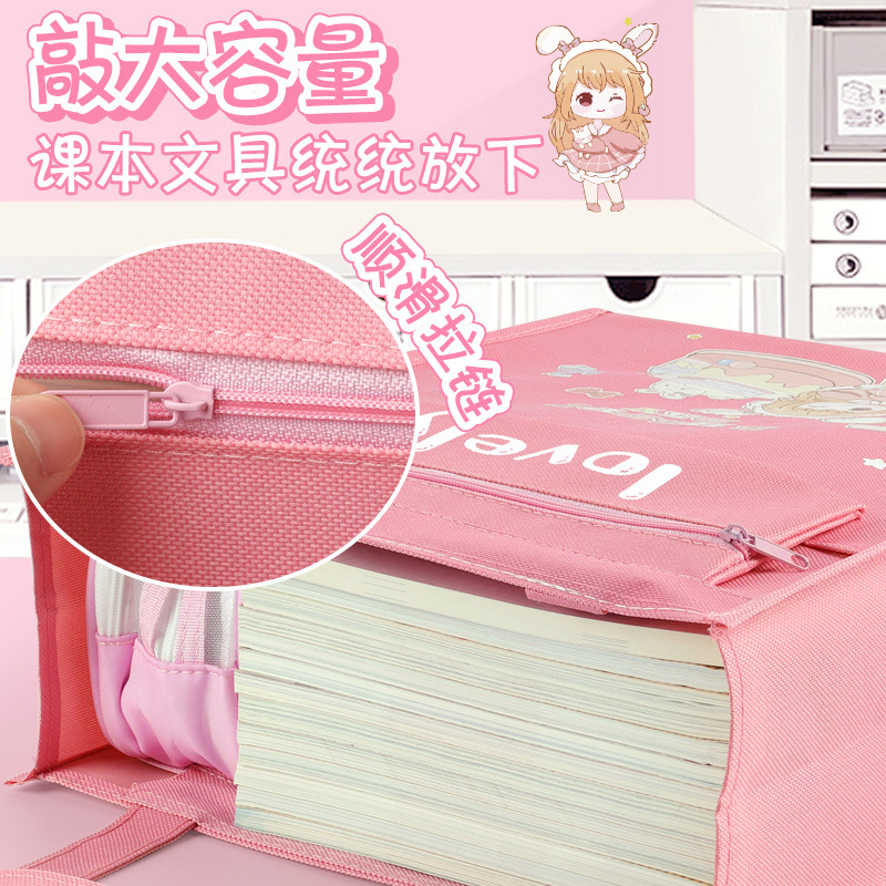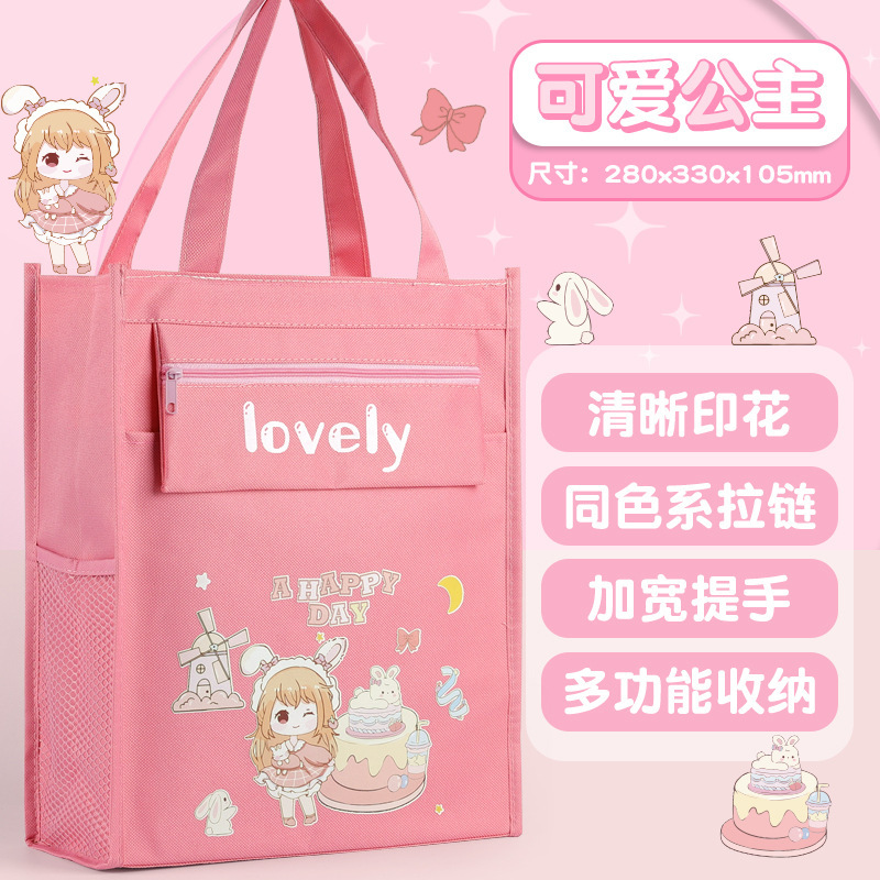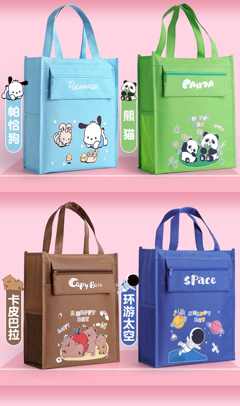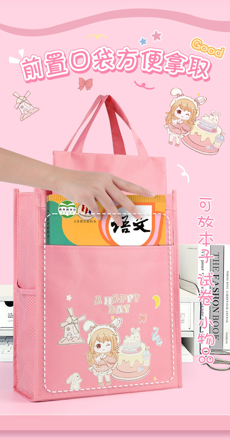 多功能大容量学生补习袋辅导班拎书袋可爱卡通学习资料收纳手提袋