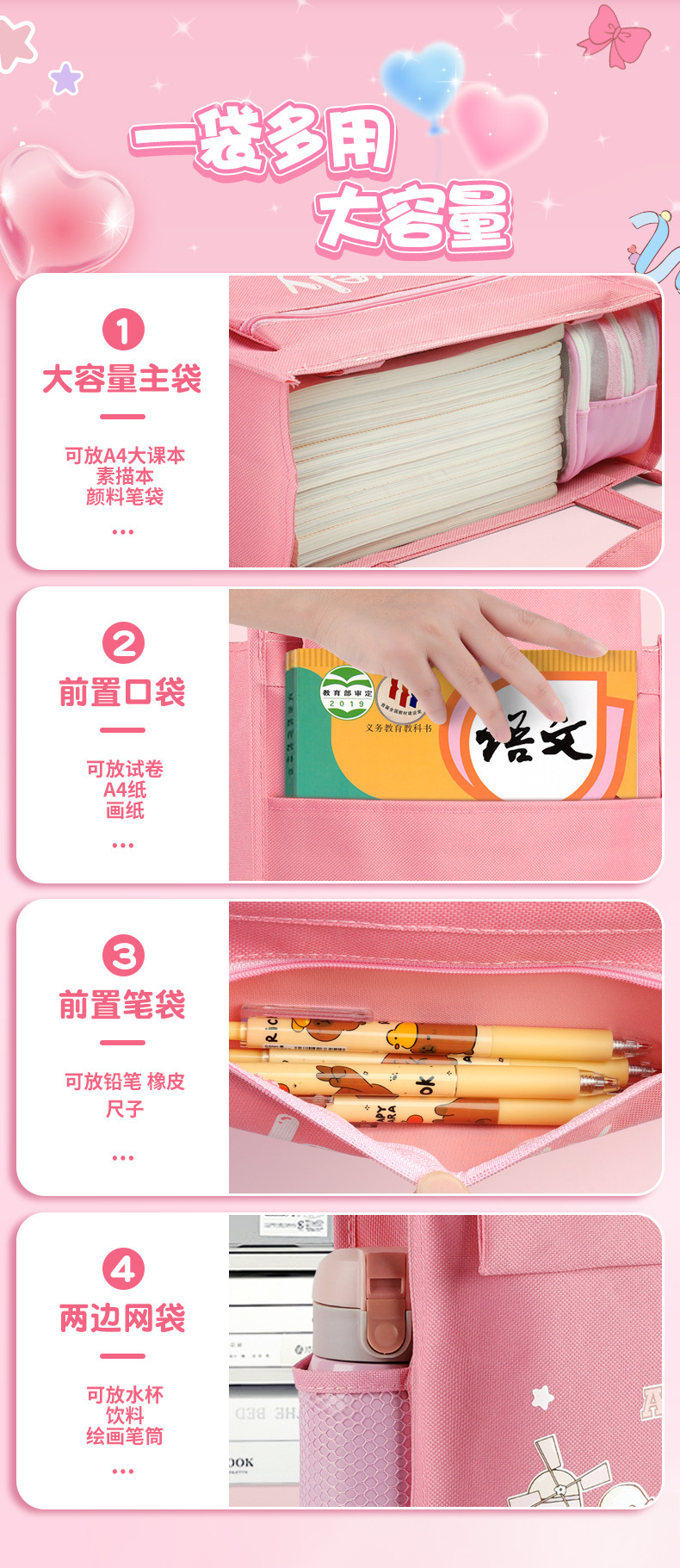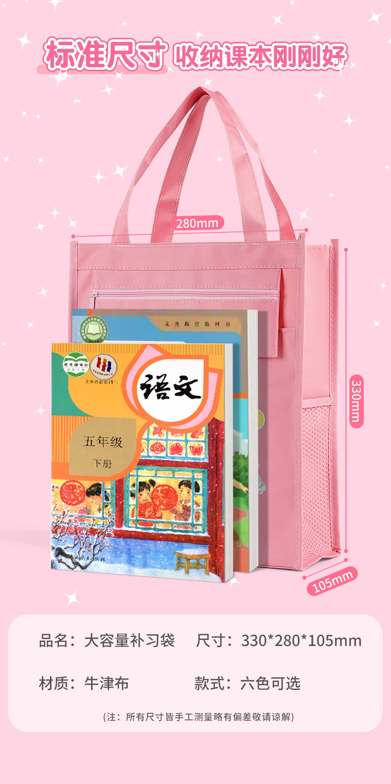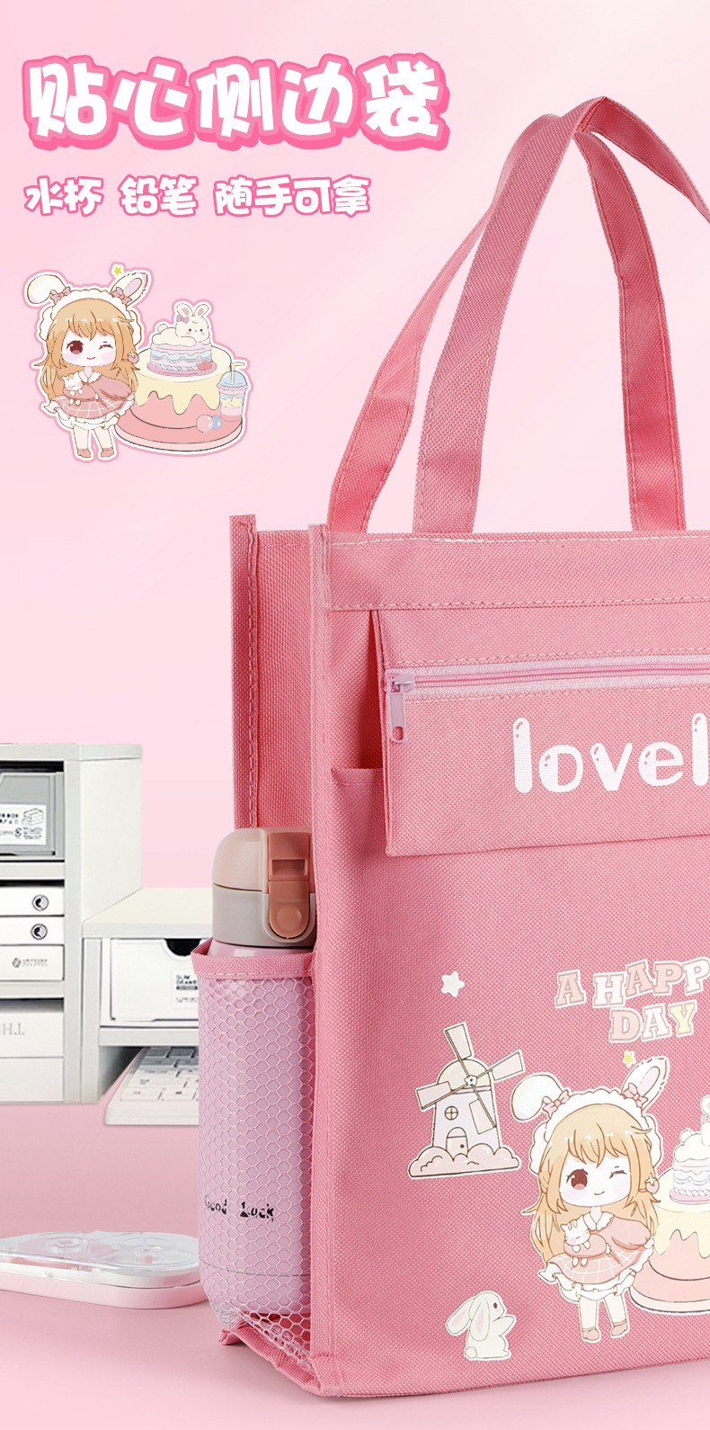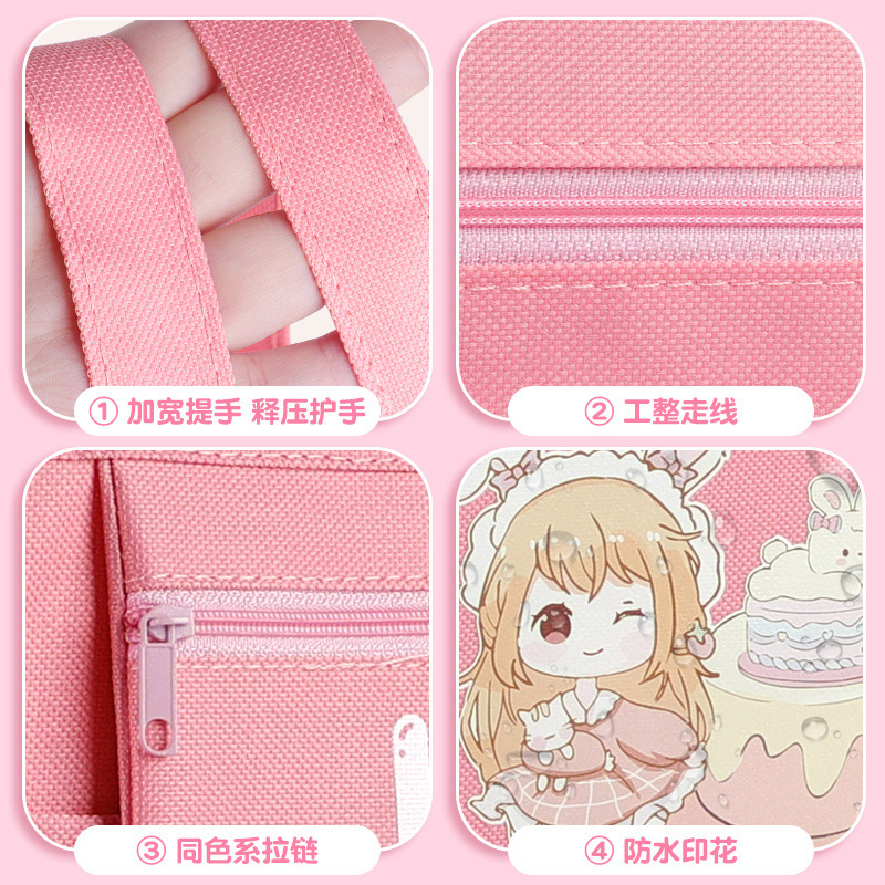 多功能大容量学生补习袋辅导班拎书袋可爱卡通学习资料收纳手提袋