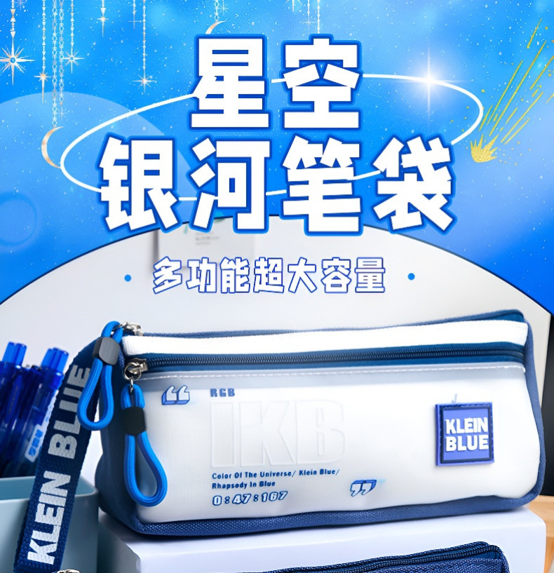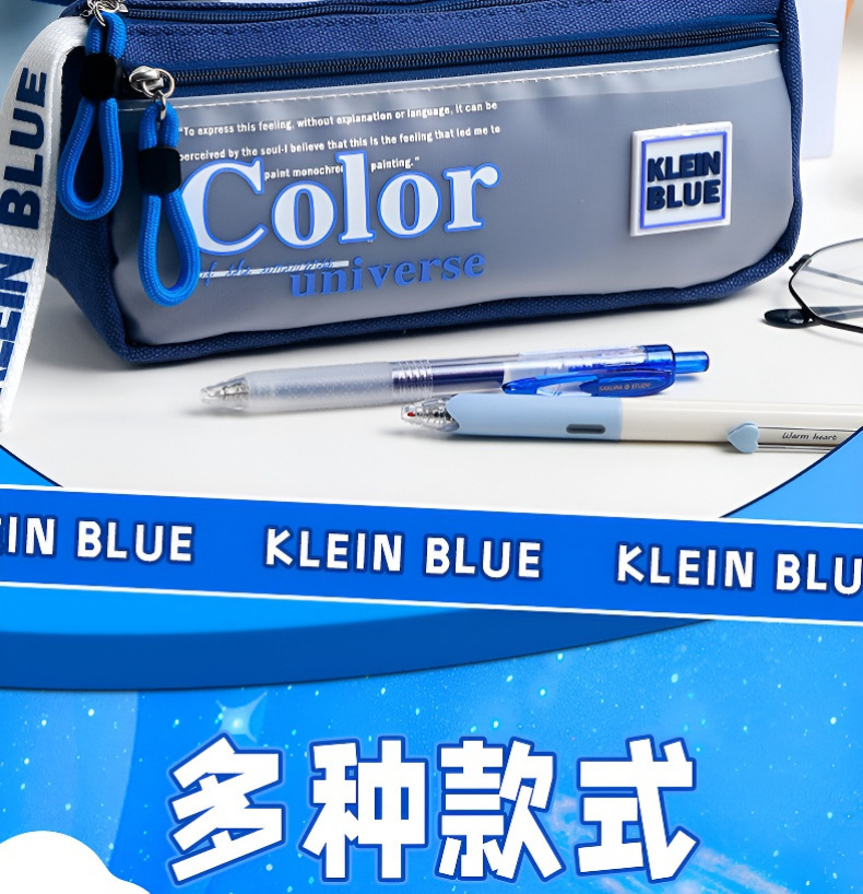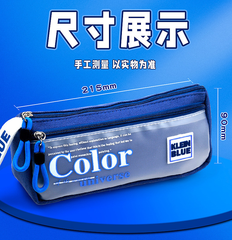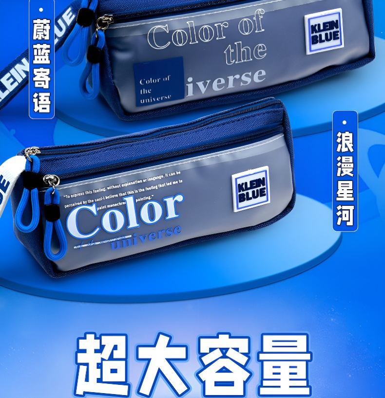 克莱因蓝笔袋透明大容量耐脏文具袋ins高颜值文具盒小学生简约风