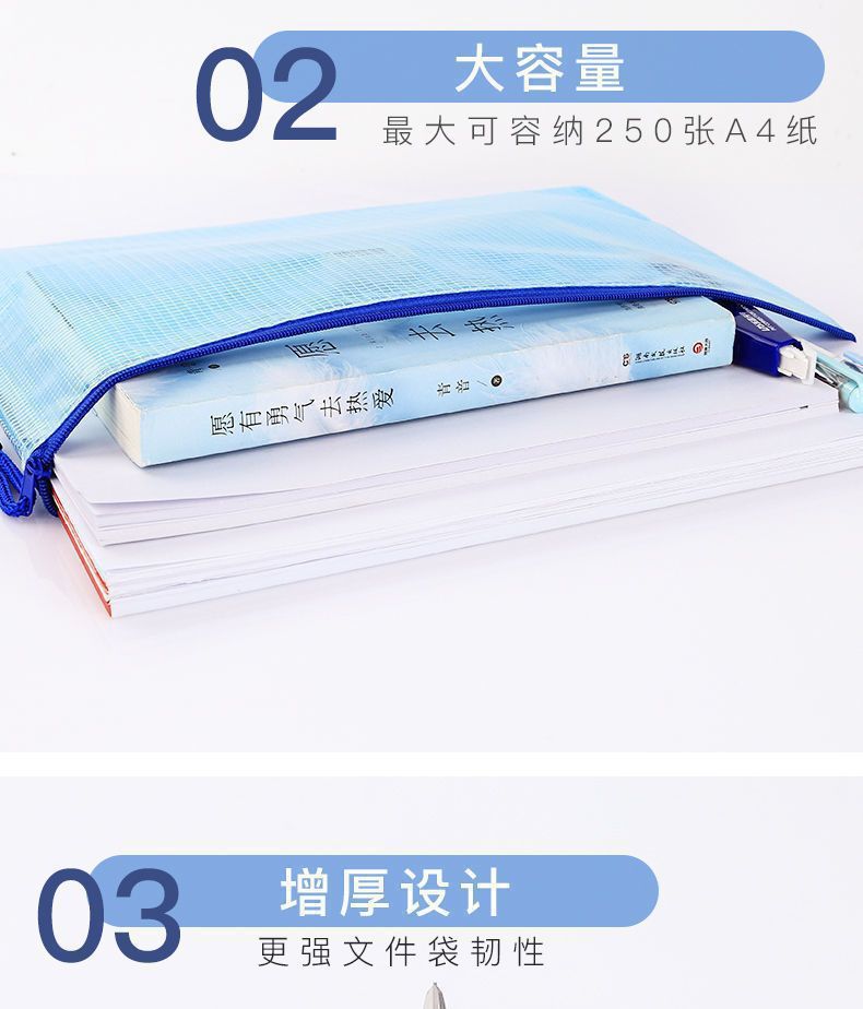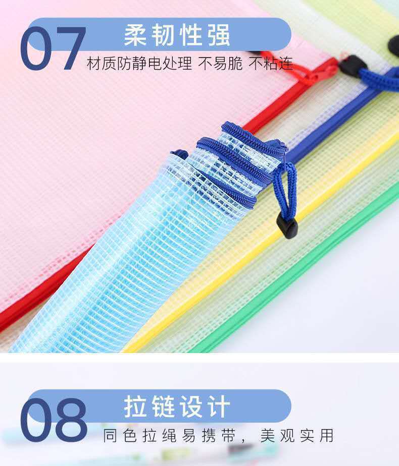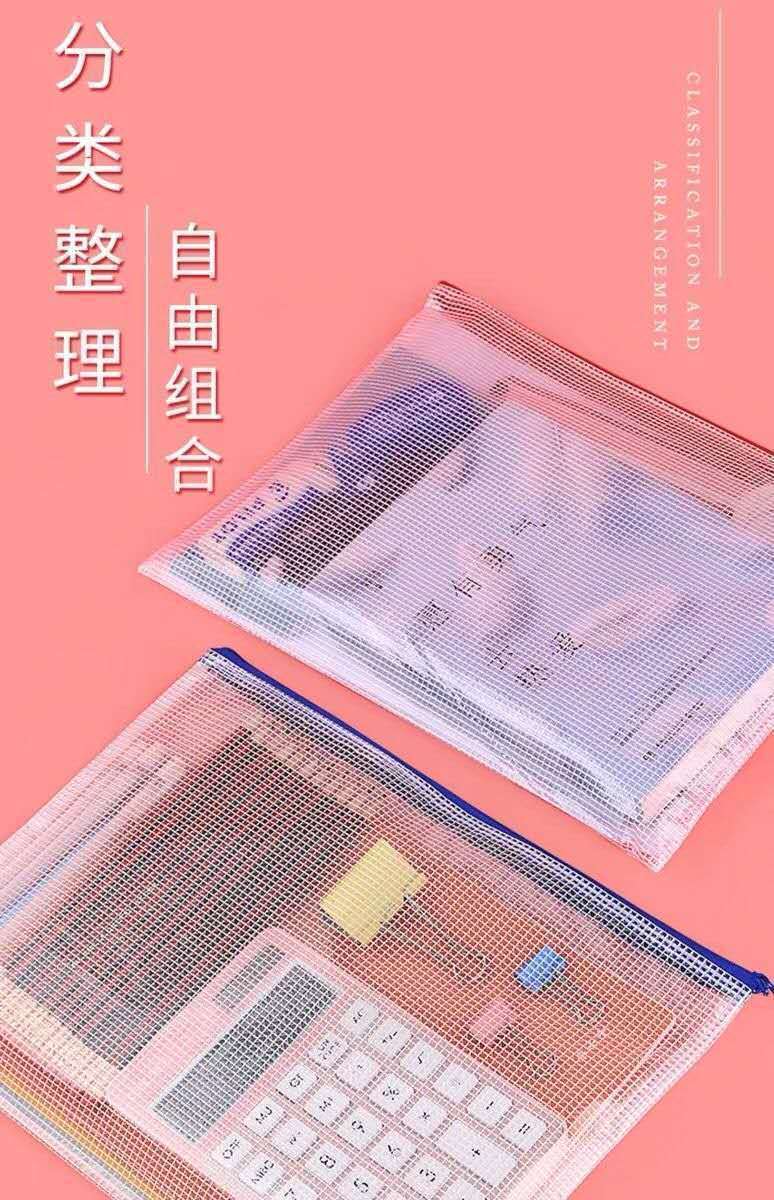 办公用品批发A4文件袋网格透明加厚 拉链式资料袋学生文具防水手