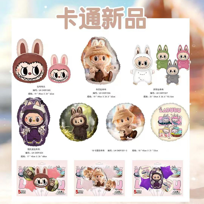 跨境拉布布铝膜气球labubu泡泡玛特18寸铝箔气球夜市摆摊玩具气球