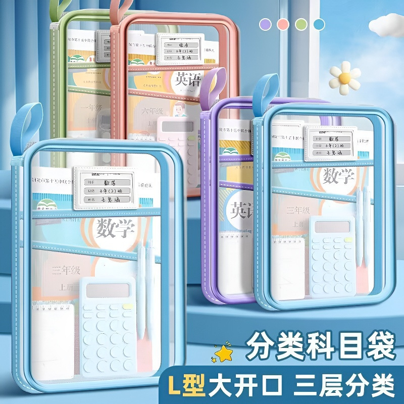 科目袋A4双层尼龙网纱分科袋透明学生试卷袋文件袋书本作业收纳袋