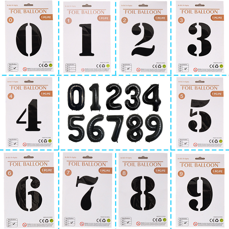 32寸数字铝膜气球纸卡精装独立包装瘦体数字生日派对装饰飘空气球