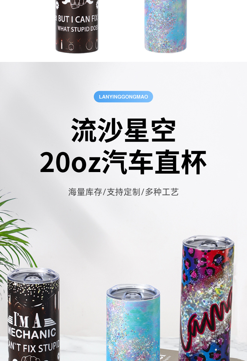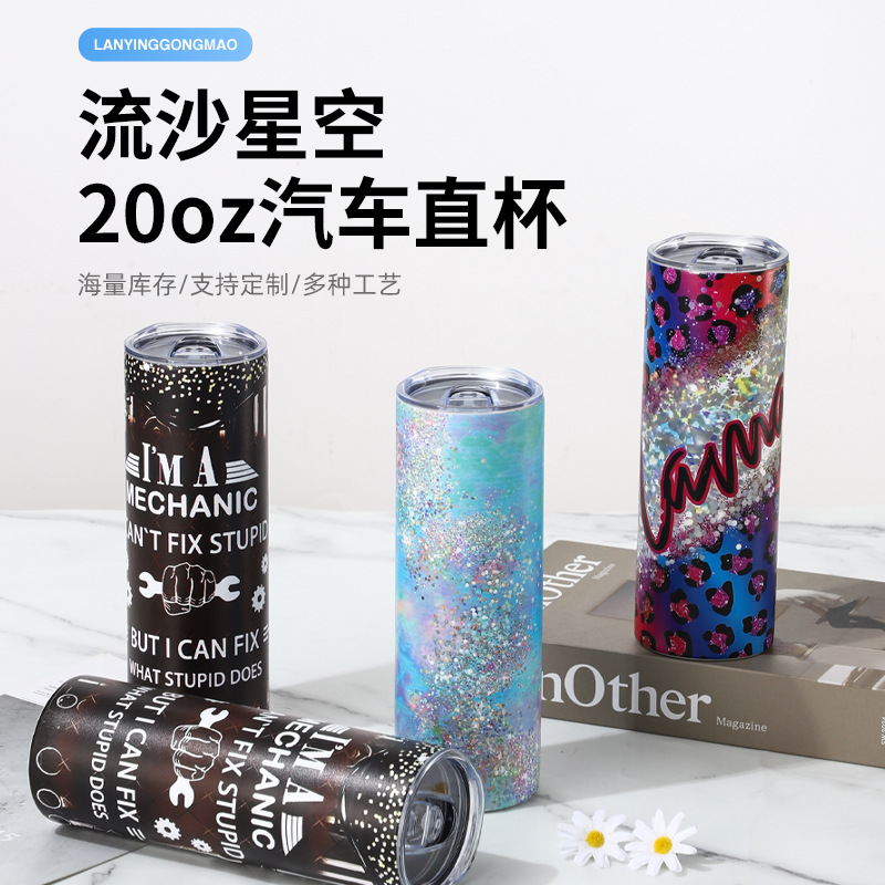 跨境现货20oz直筒汽车杯DIY来图304不锈钢保温杯热升华荧光漆水杯