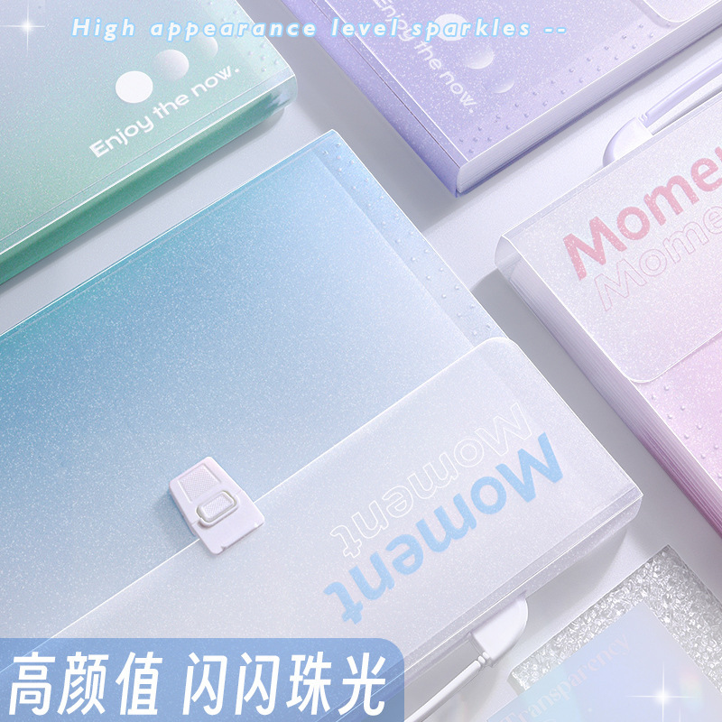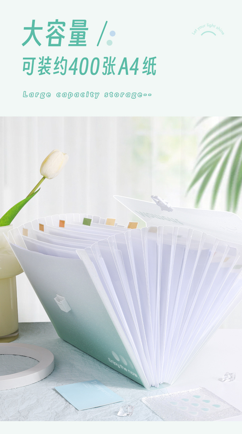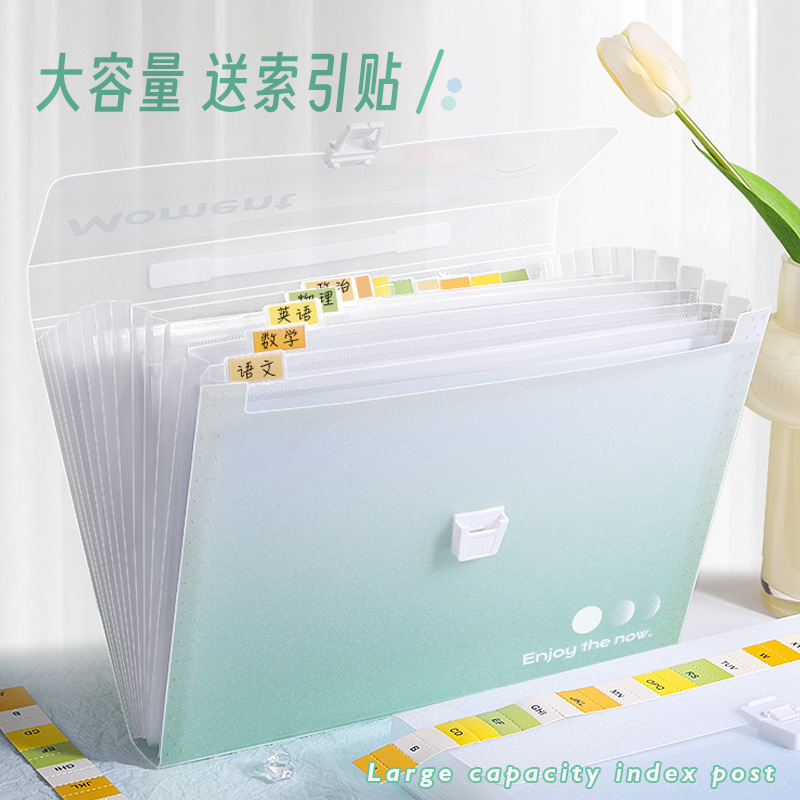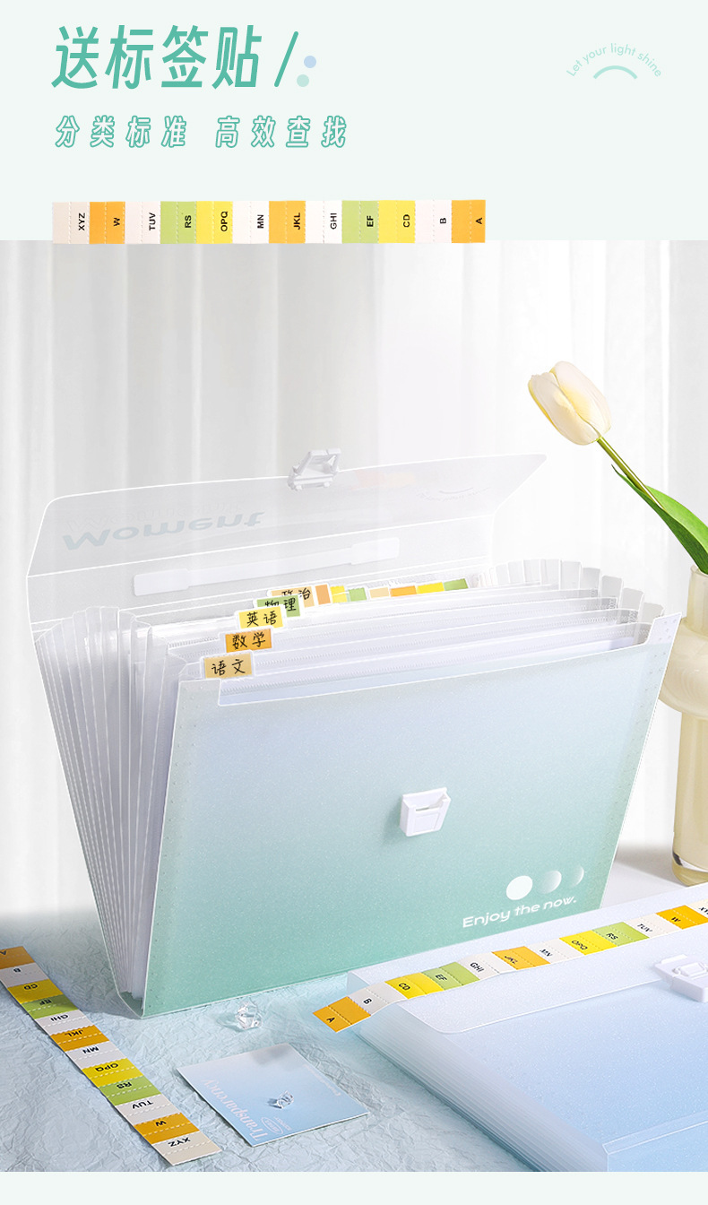 渐变色手提风琴包13入a4学生高颜值大容量多层试卷袋收纳袋文件夹