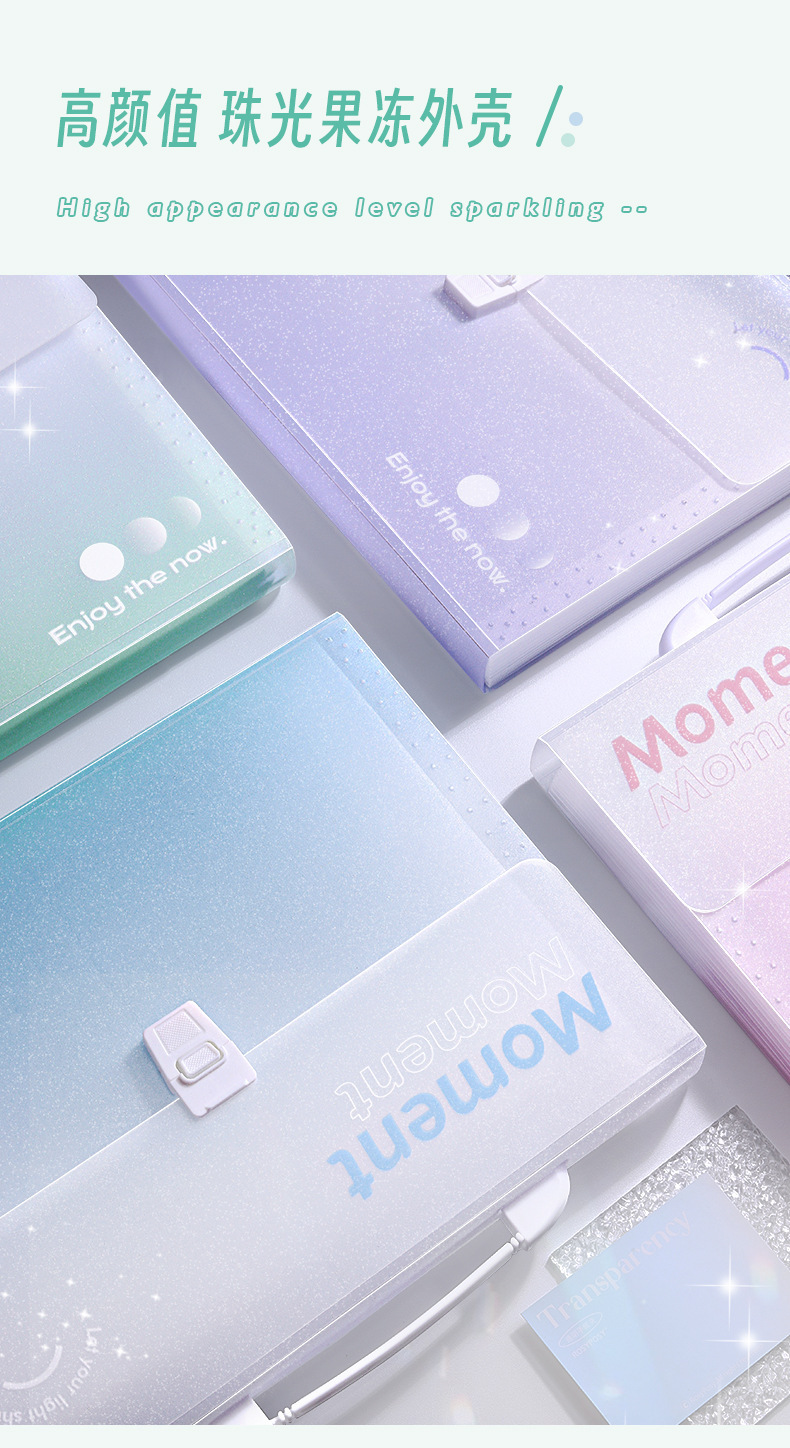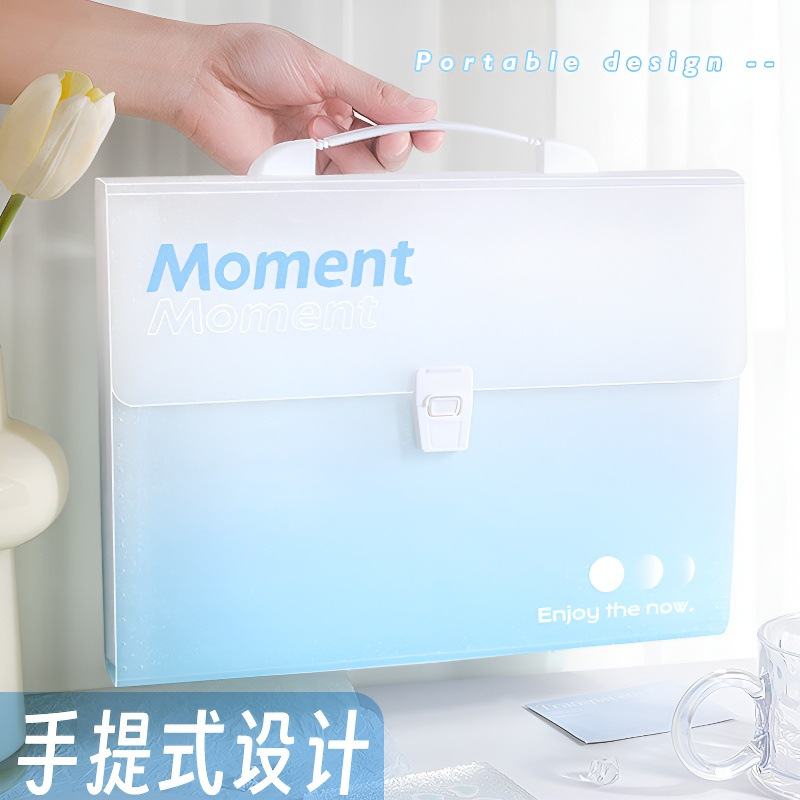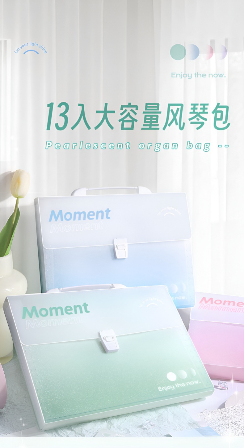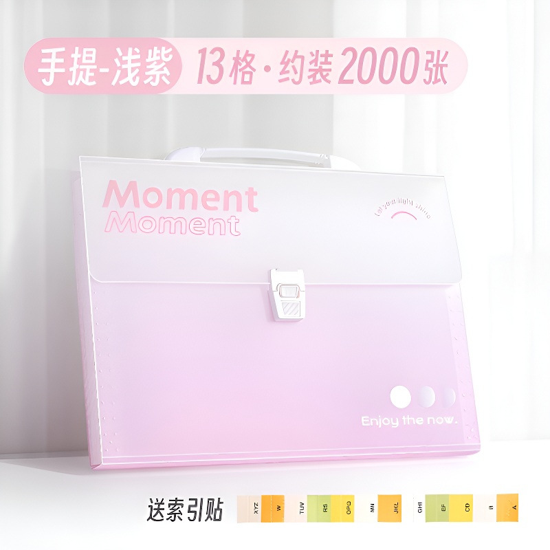 渐变色手提风琴包13入a4学生高颜值大容量多层试卷袋收纳袋文件夹
