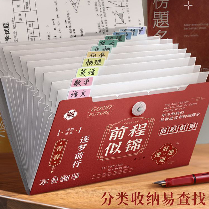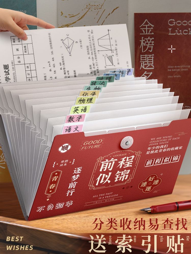 a4 励志风琴包大容量多层试卷夹收纳袋资料册分类整理插页文件夹