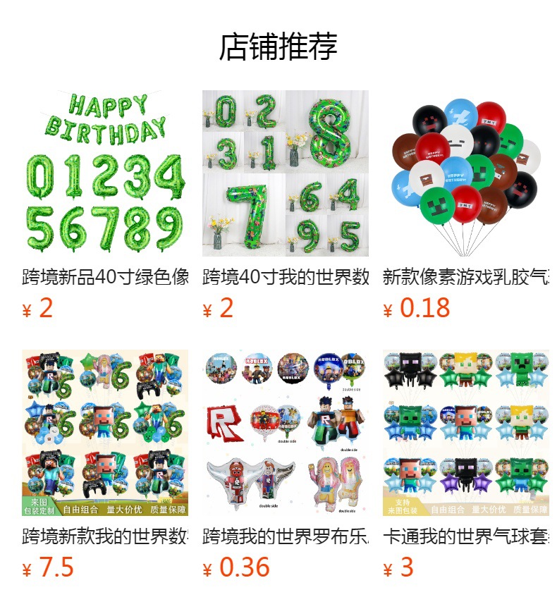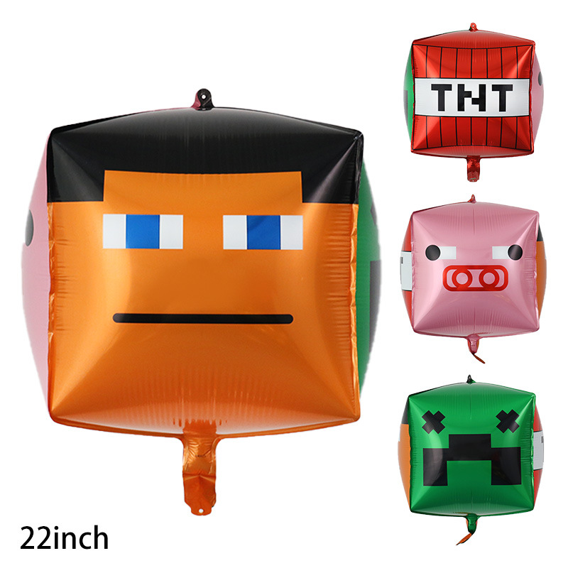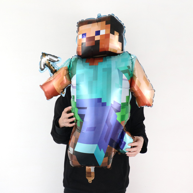 新款卡通我的世界铝膜气球造型像素人儿童生日派对场景装饰用品