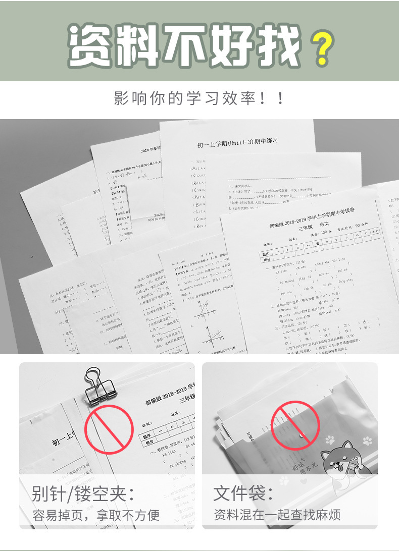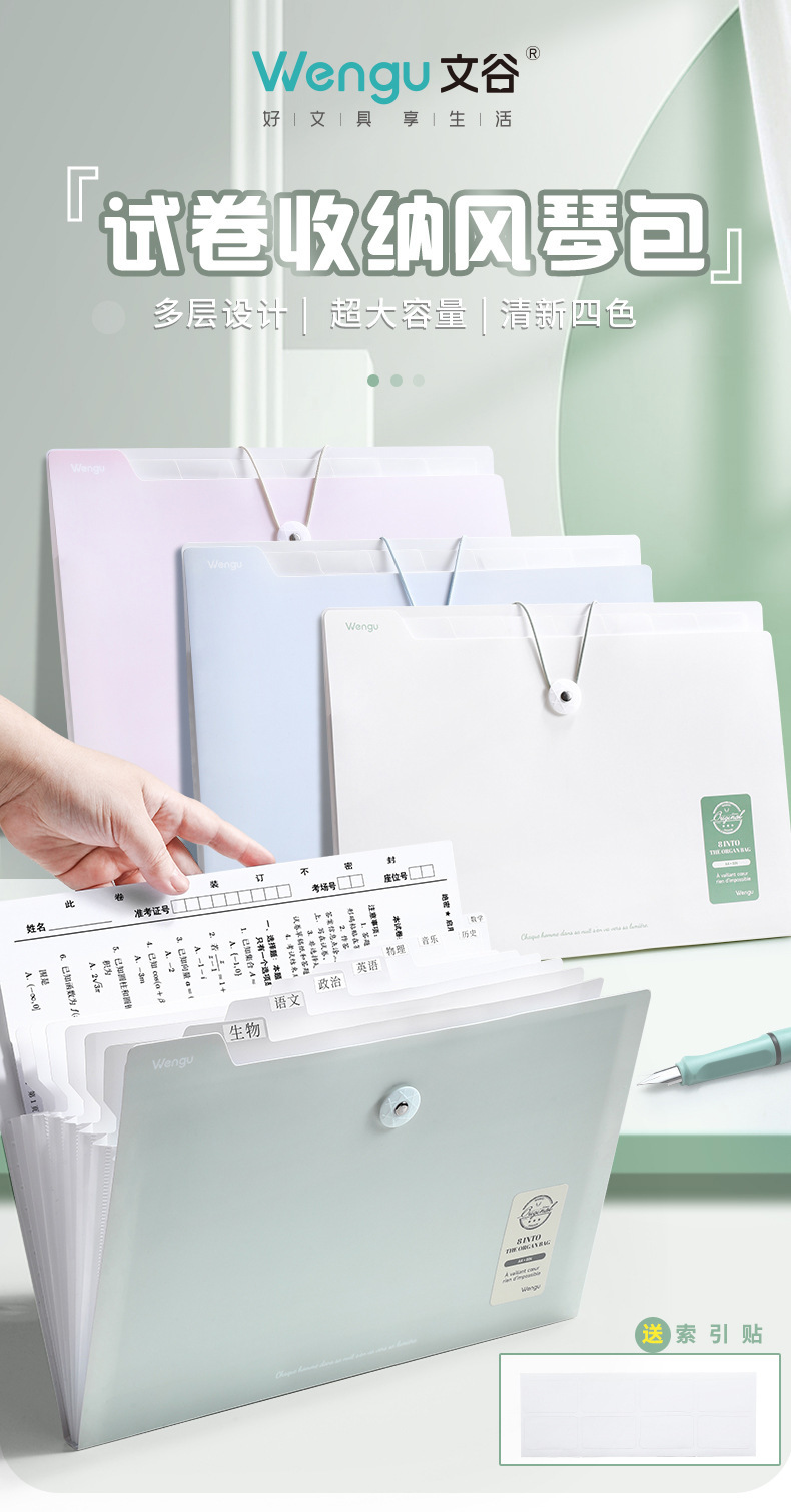文谷试卷收纳袋a4文件夹试卷夹学生科目分学科专用小清新风琴包