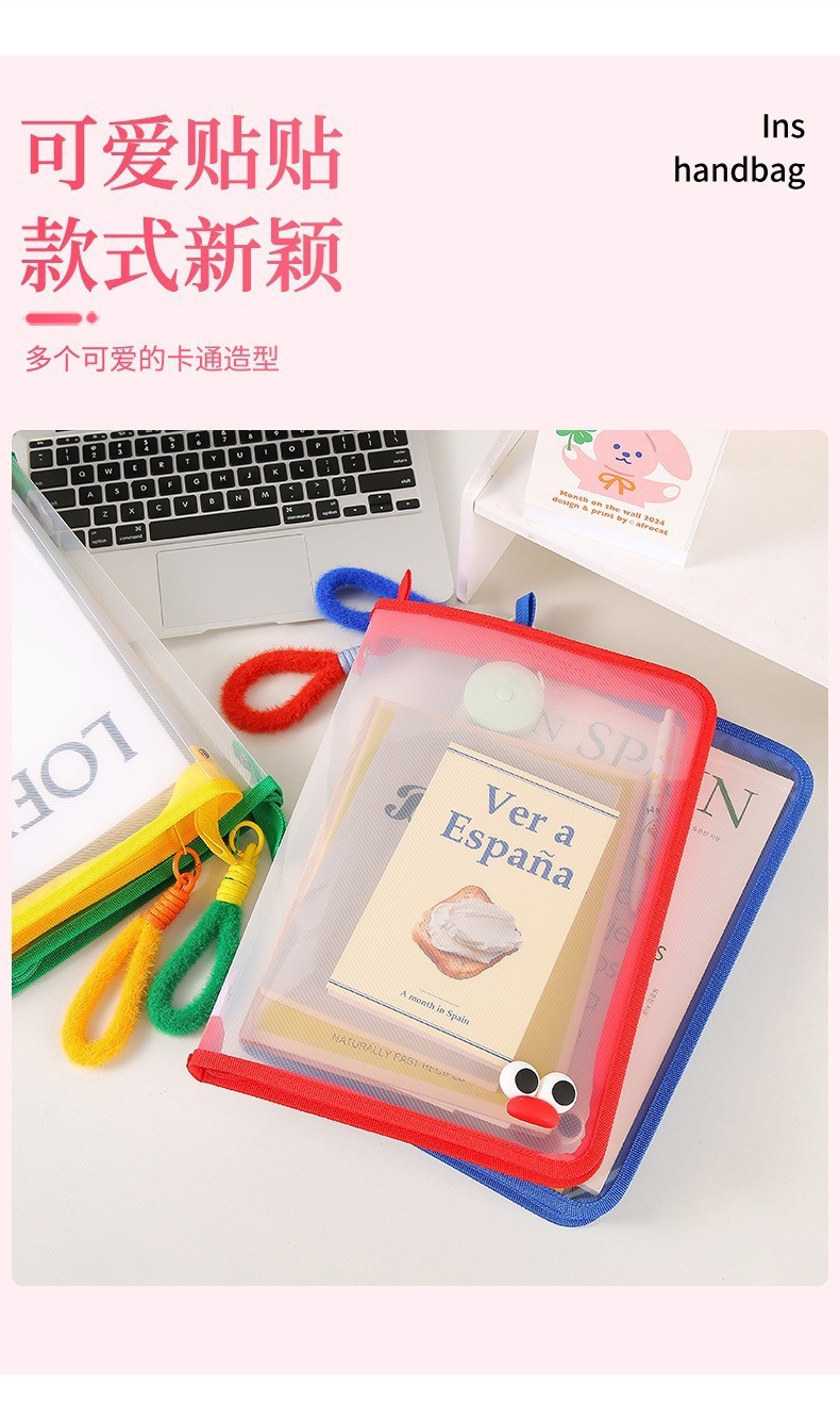 彩色A4透明拉链文件袋大容量透明试卷课ins大学生试卷课本收纳袋1