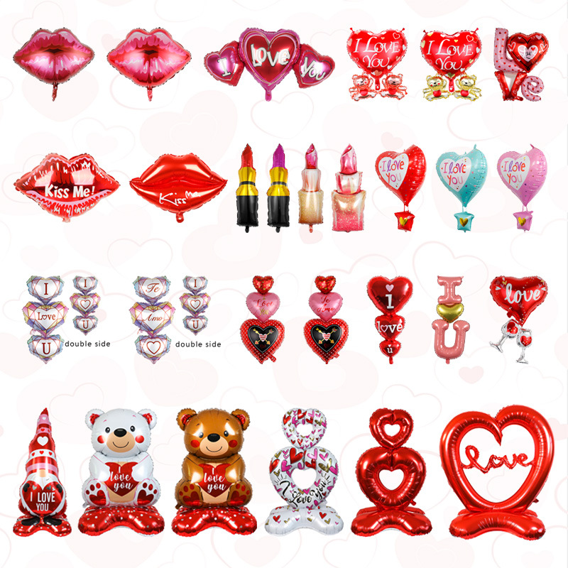 跨境情人节铝膜气球大号嘴唇口红love三连心气球婚房装饰圆球批发