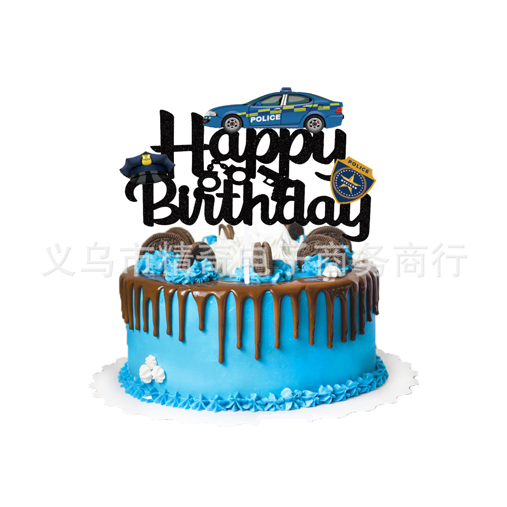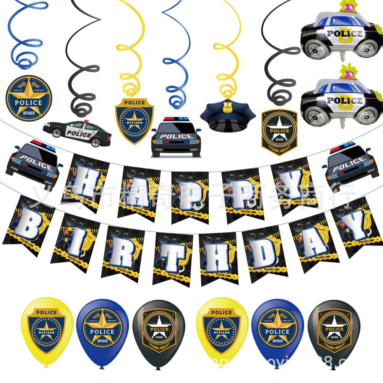 新款蓝色警察主题生日派对装饰警车警徽拉旗螺旋police气球用品