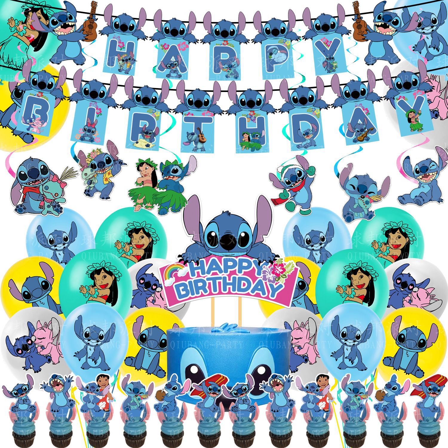 史迪仔派对装饰星际宝贝史迪奇拉旗蛋糕插牌 Stitch 儿童气球套装
