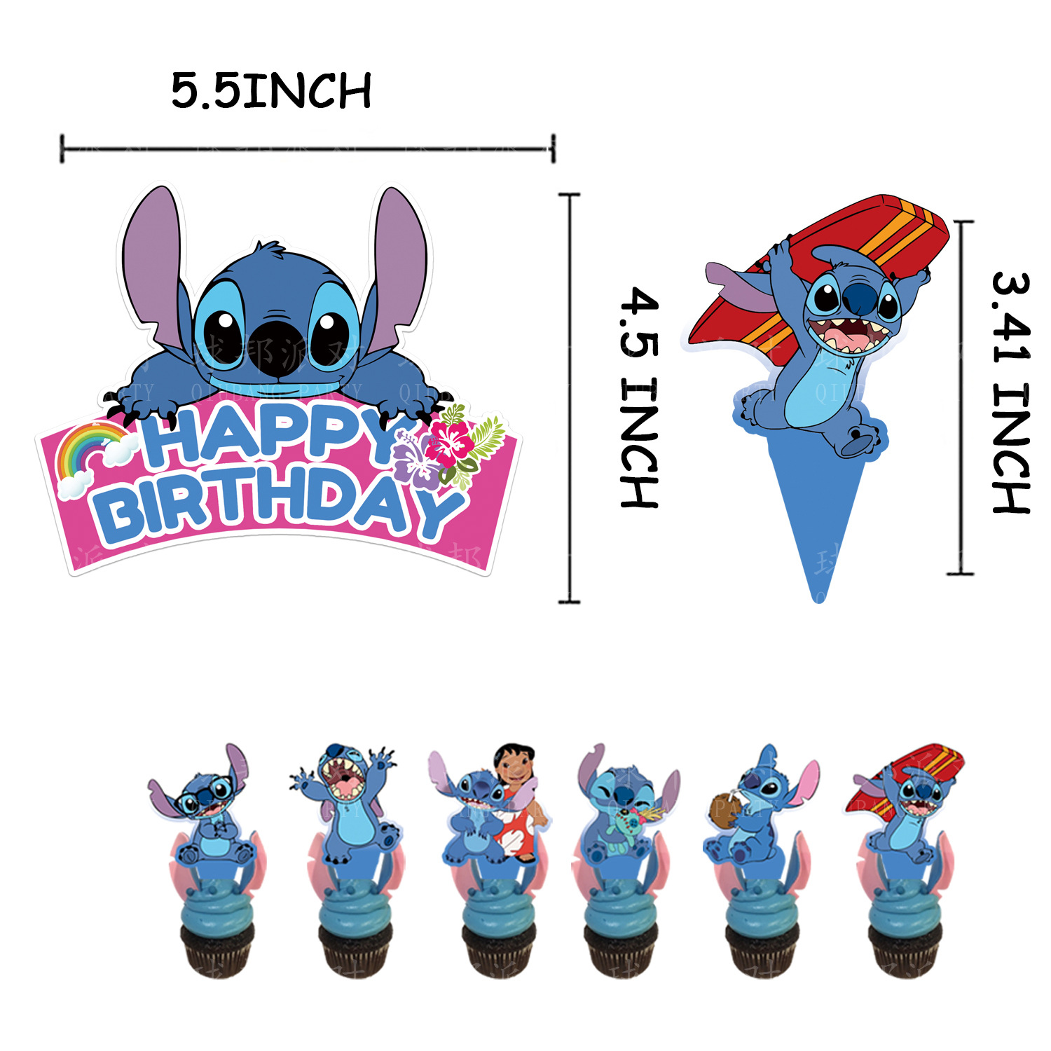 12个史迪仔纸杯蛋糕插牌