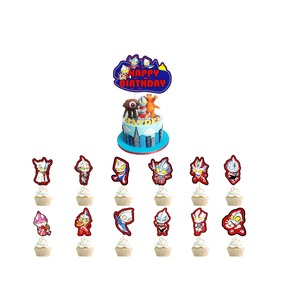 新款奥特曼主题儿童生日派对装饰用品 气球拉旗横幅蛋糕插牌套装