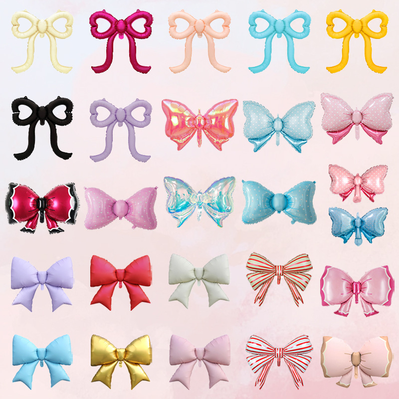 跨境新品哑光蝴蝶结铝膜气球儿童生日派对节日户外活动布置气球