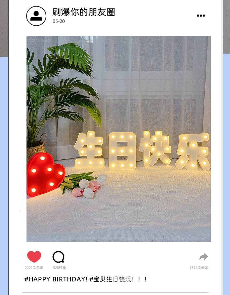 生日快乐灯蛋糕装饰灯派对场景布置氛围灯发光led灯牌ktv字母灯