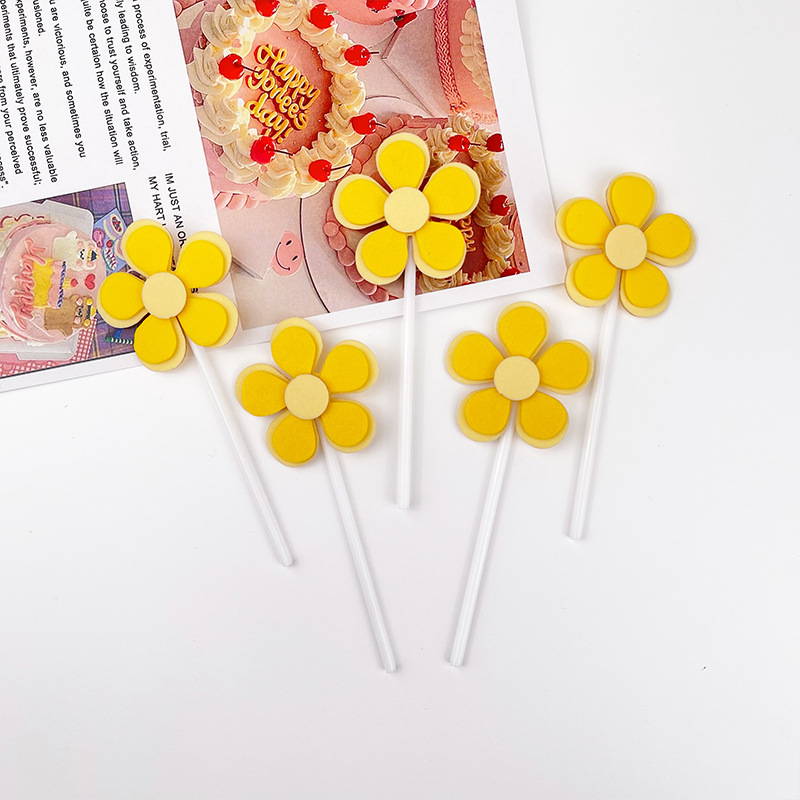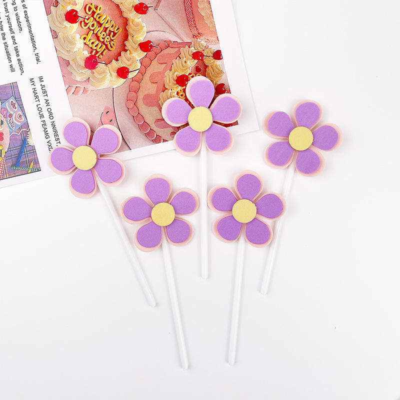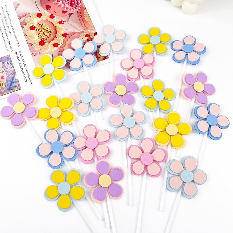 蛋糕插件小清新花朵蛋糕装饰仿翻糖双层彩色泡沫插牌生日甜品装扮